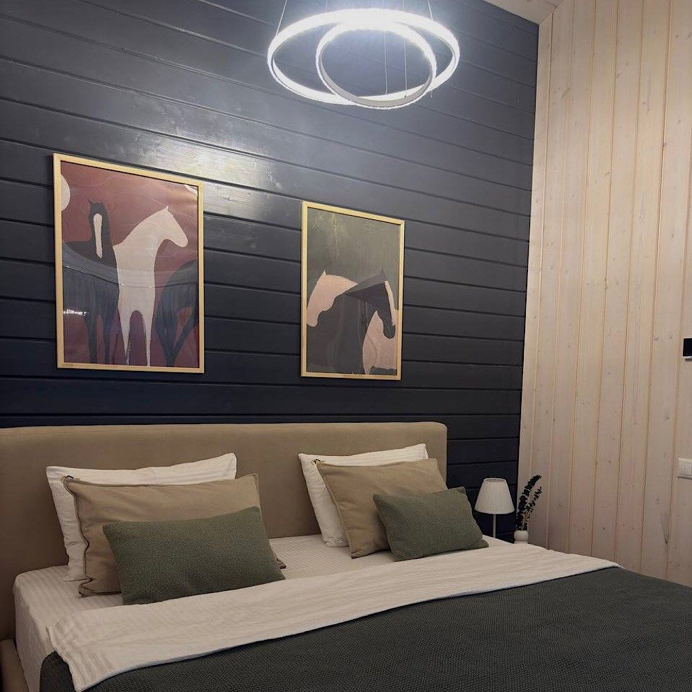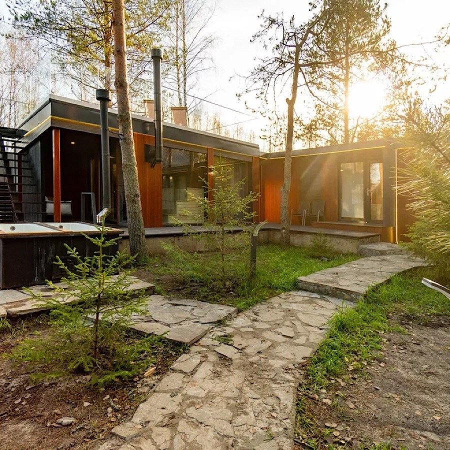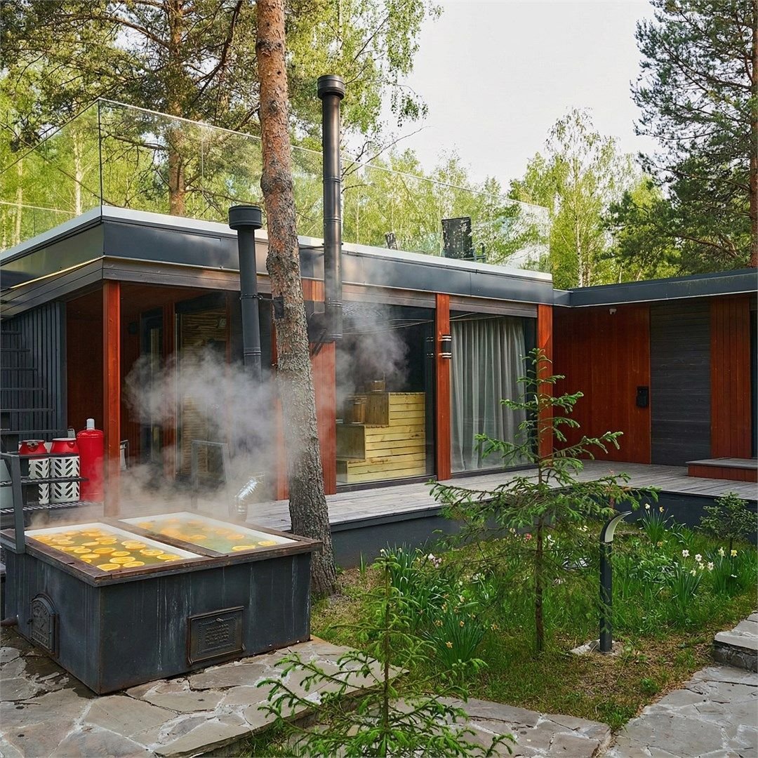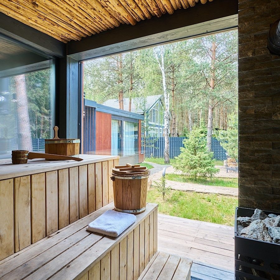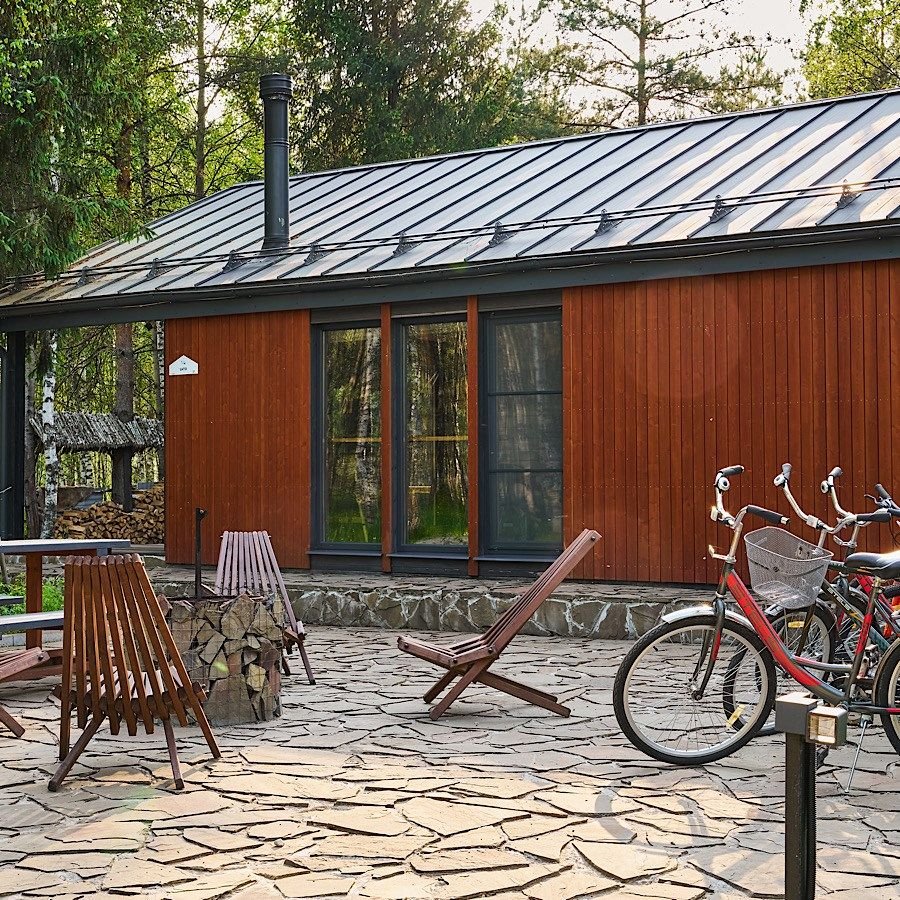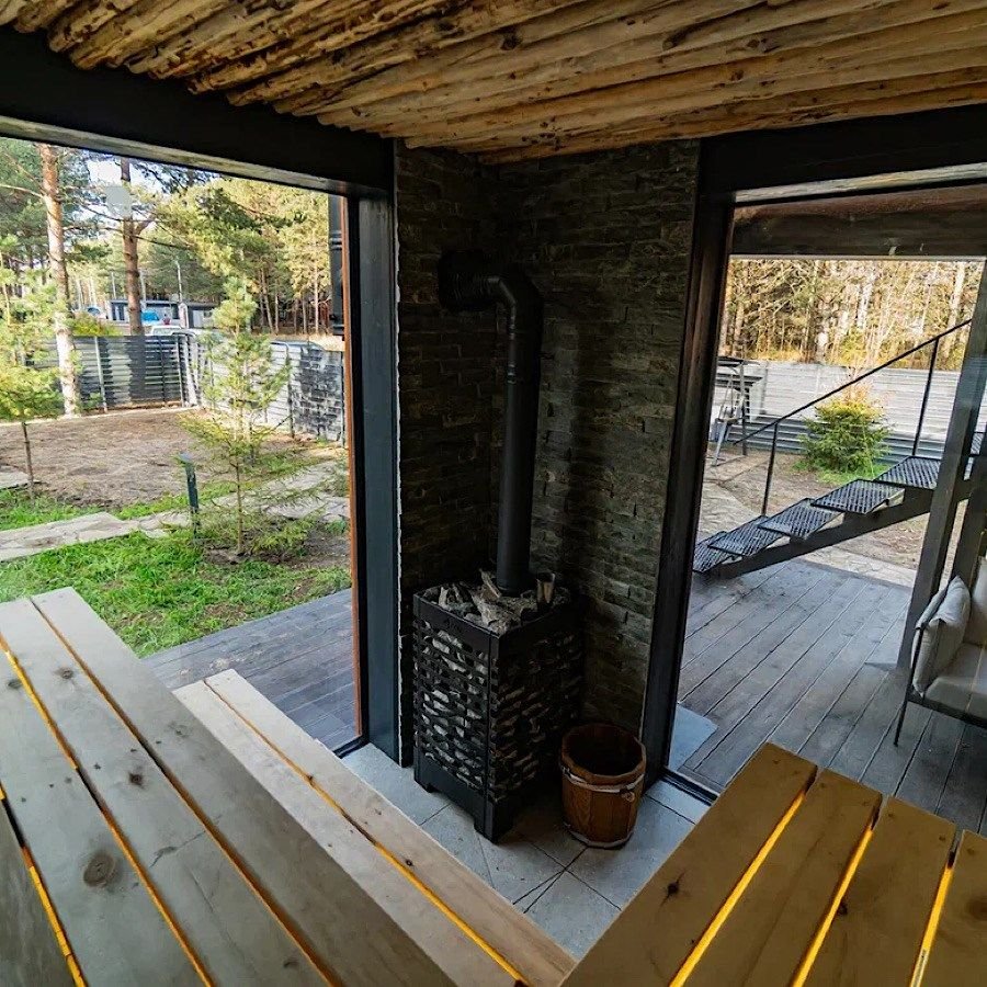 Сауна с панорамой на лес + уютный камин в гостиной Банный чан, прогулки по лесу, бесплатные велосипеды Уединение в сосновом лесу, уют барнхауса и своя сауна уже включены в стоимость! Идеальный формат для перезагрузки: с любимым человеком, семьёй или друзьями. Что вас ждёт: — Современный барнхаус с камином, сауной и умным домом — Завораживающая тишина, аромат хвои, чистый воздух — Банный чан, прог...