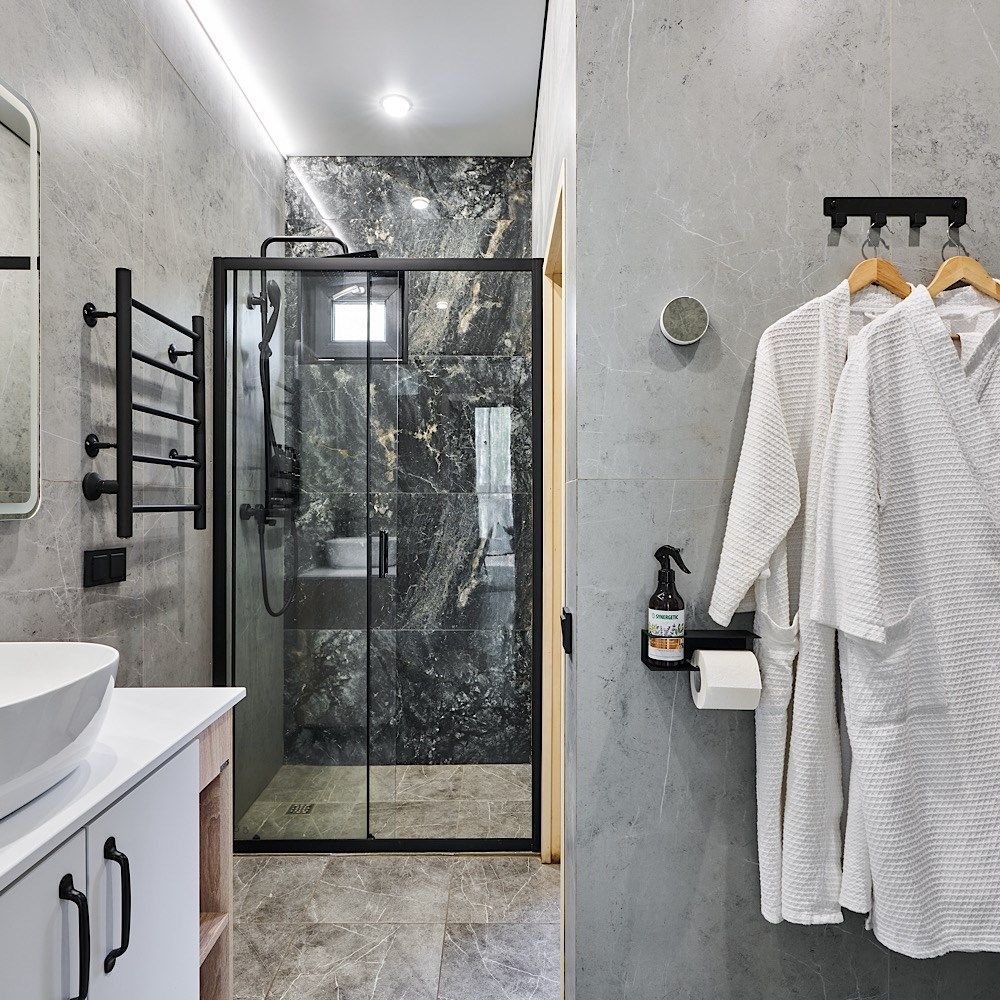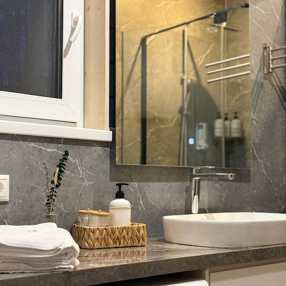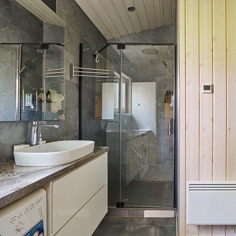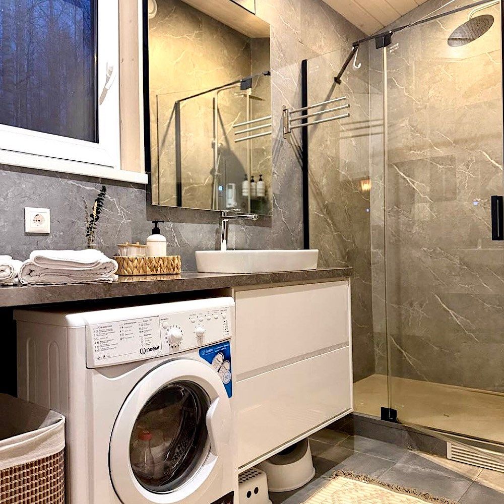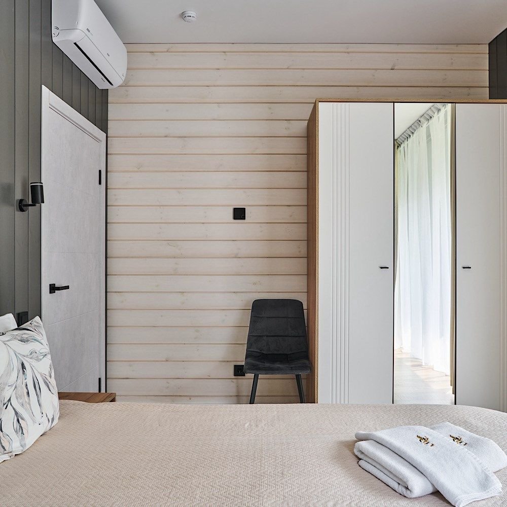 Сауна с панорамой на лес + уютный камин в гостиной Банный чан, прогулки по лесу, бесплатные велосипеды Уединение в сосновом лесу, уют барнхауса и своя сауна уже включены в стоимость! Идеальный формат для перезагрузки: с любимым человеком, семьёй или друзьями. Что вас ждёт: — Современный барнхаус с камином, сауной и умным домом — Завораживающая тишина, аромат хвои, чистый воздух — Банный чан, прог...