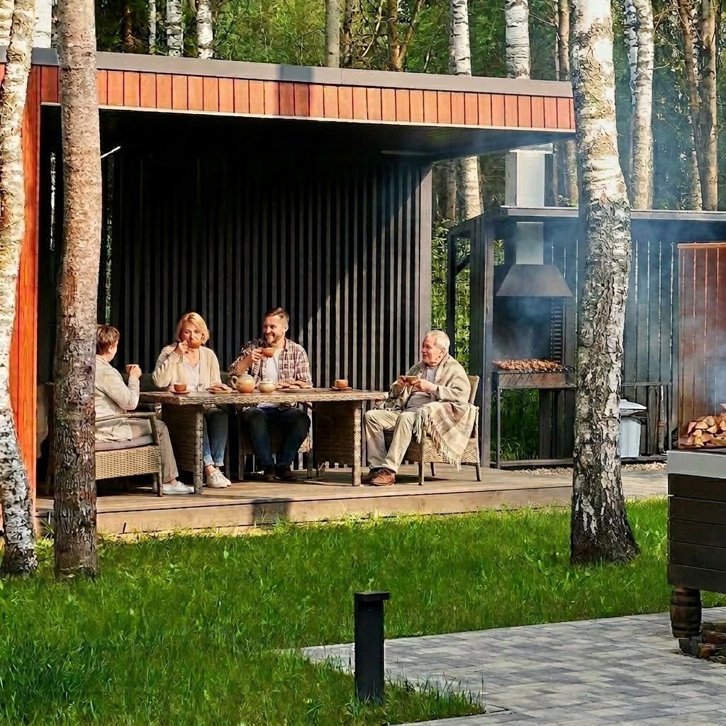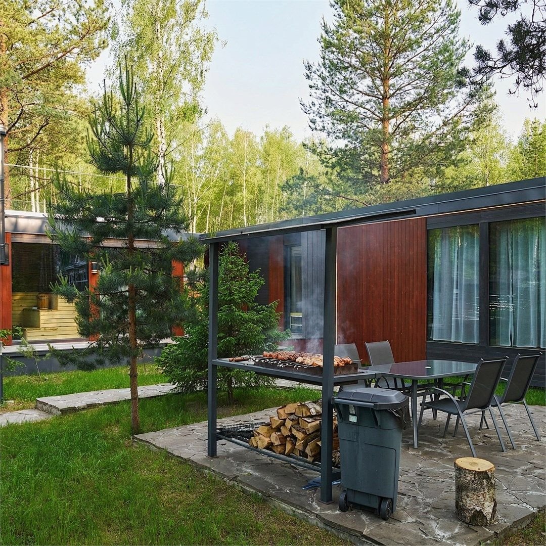 Идеальный уикенд в сосновом лесу — два стильных домика с общей террасой, баней на дровах и горячими купелями ждут вас! Что вы получаете: — 2 уютных домика с полной автономией — настоящая баня на дровах и две горячие купели под открытым небом — завтраки из фермерских продуктов, узбекский плов на костре — крытая терраса и bbq-зона — тепло и уютно даже в дождь — свежий воздух, хвойный лес, тишина...