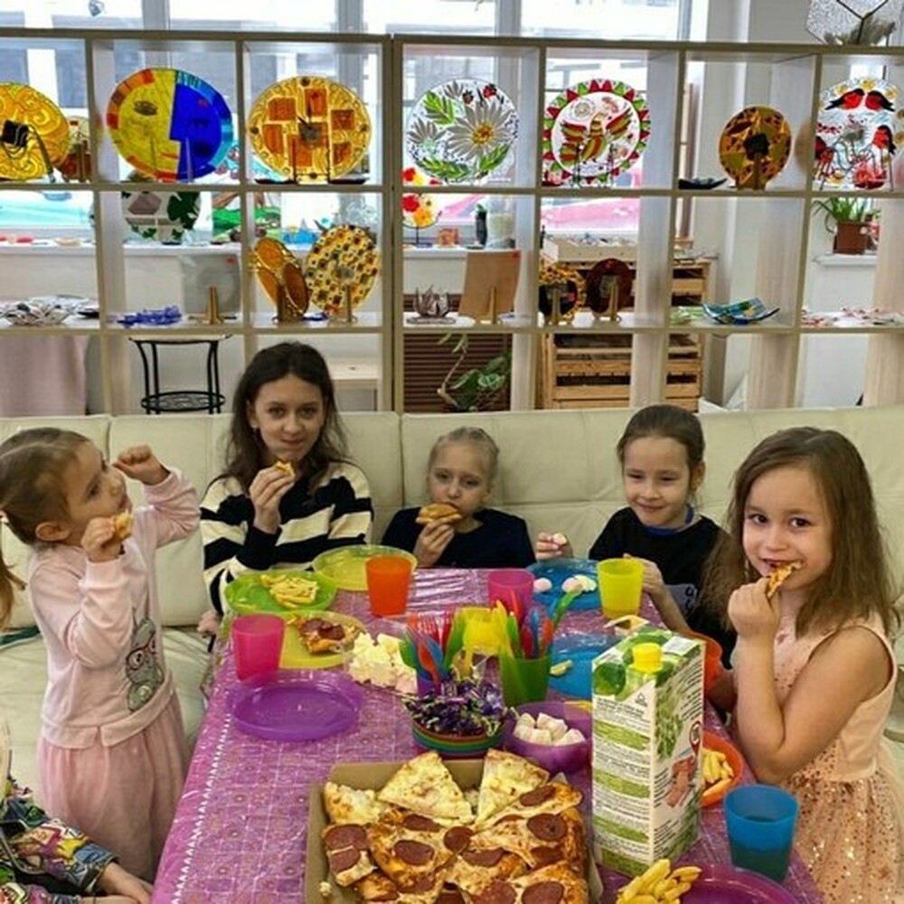 - Творческая - все гости увлеченно творят свой шедевр из художественного стекла в технике фьюзинг.
