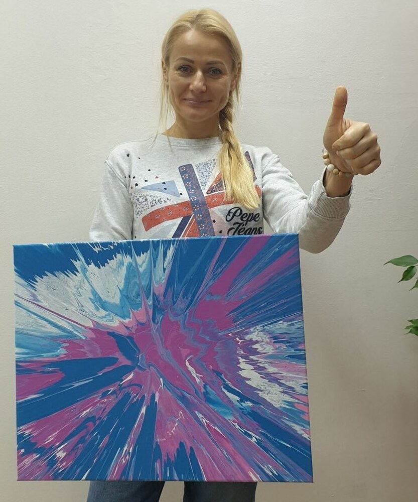- акрилу необходимо время, чтобы хорошо высохнуть; поэтому после мастер-класса картина остается в студии на 2-3 дня, затем покрываем лаком, после чего её можно забрать