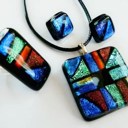Вы сможете самостоятельно изготовить удивительные произведения в технике фьюзинг: два любых украшения на Ваш вкус: кольца, серёг, пусет, клипс, подвески, броши или необычную интерьерную подвеску “Ловец солнца” или двух небольших топперов.
