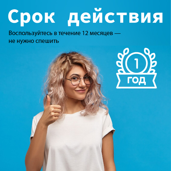 Сертификатом можно воспользоваться в течение 12 месяцев с даты покупки. С момента активации услугой нужно воспользоваться до срока действия сертификата.