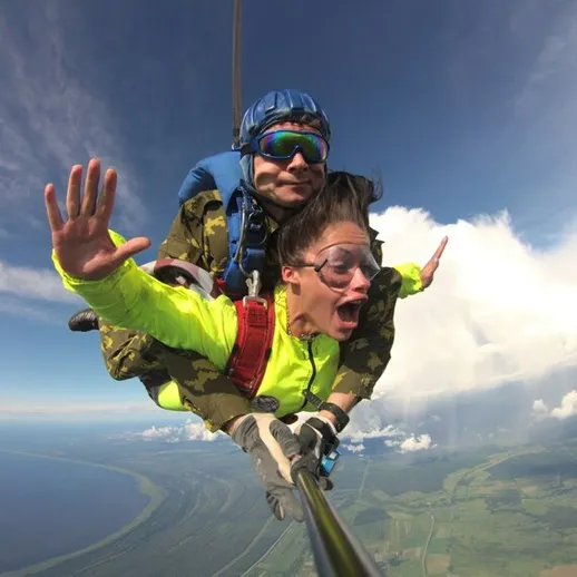 Прыжок с парашютом в тандеме с инструктором с высоты 2000-2200 метров