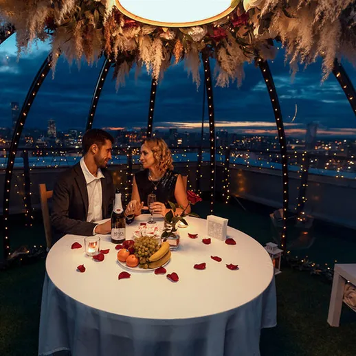 Только представьте - вы, ваш любимый человек, и целый город под вами, виды на который открываются на крыше с самого удачного ракурса. Дополнят атмосферу свечи, романтическая музыка, вкусный десерт и игристые напитки.
