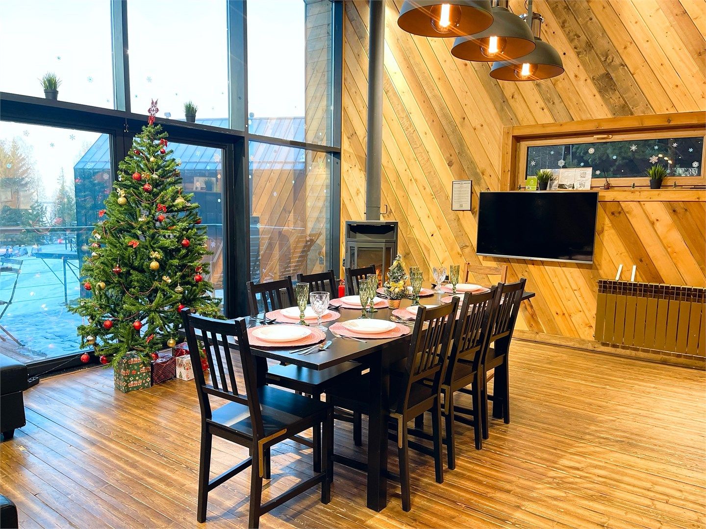 Каждая деталь оформления была подобрана с особой тщательностью, начиная от дизайнерской мебели и заканчивая отделкой стен натуральным деревом. Уютные спальни, большие гостиные с панорамными окнами и удобная кухня создадут идеальную обстановку для семейного отдыха или романтического путешествия вдвоём.