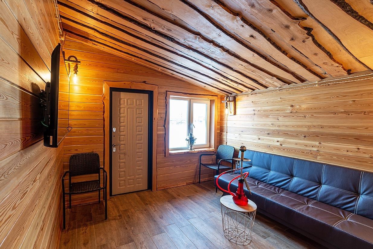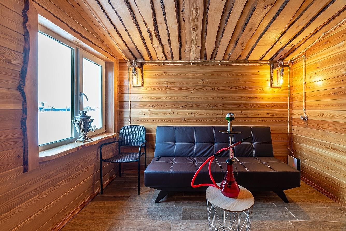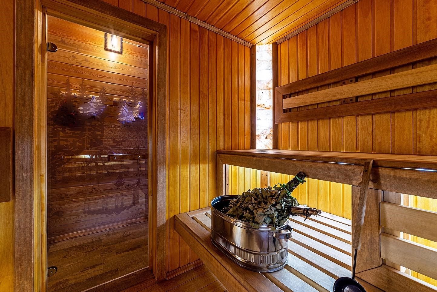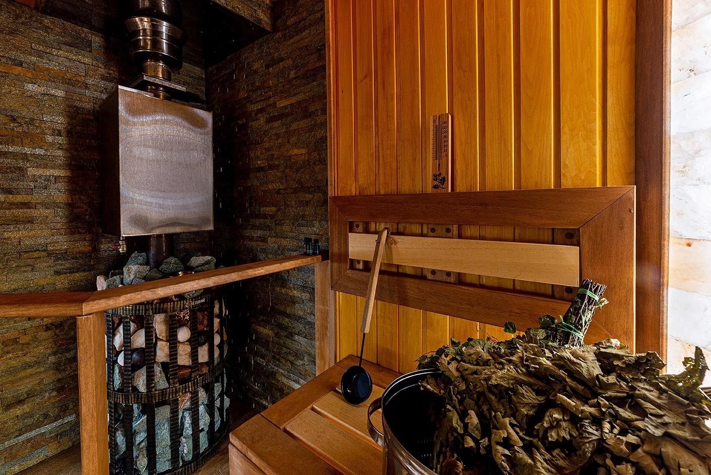 Русская баня на дровах с каменкой на 200 кг камней и светильниками из гималайской соли