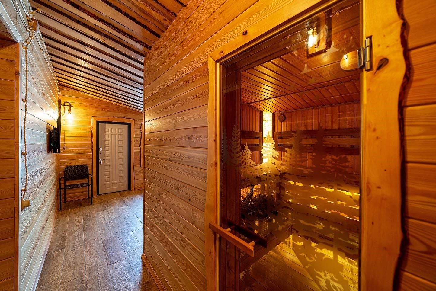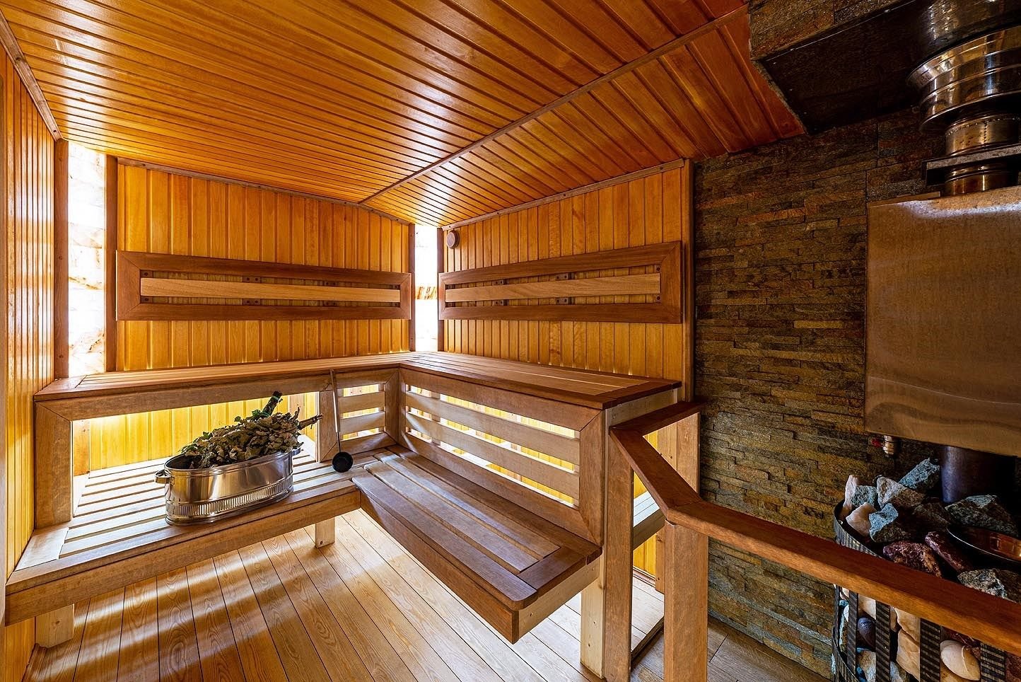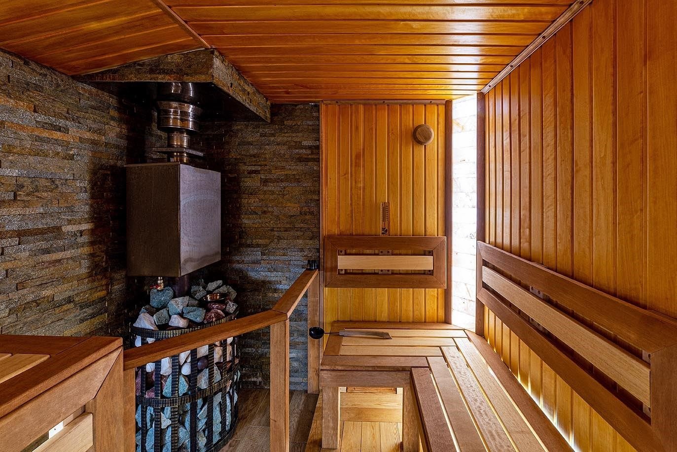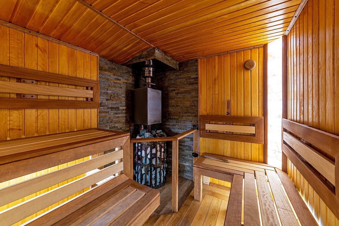 Русская баня на дровах с каменкой на 200 кг камней и светильниками из гималайской соли