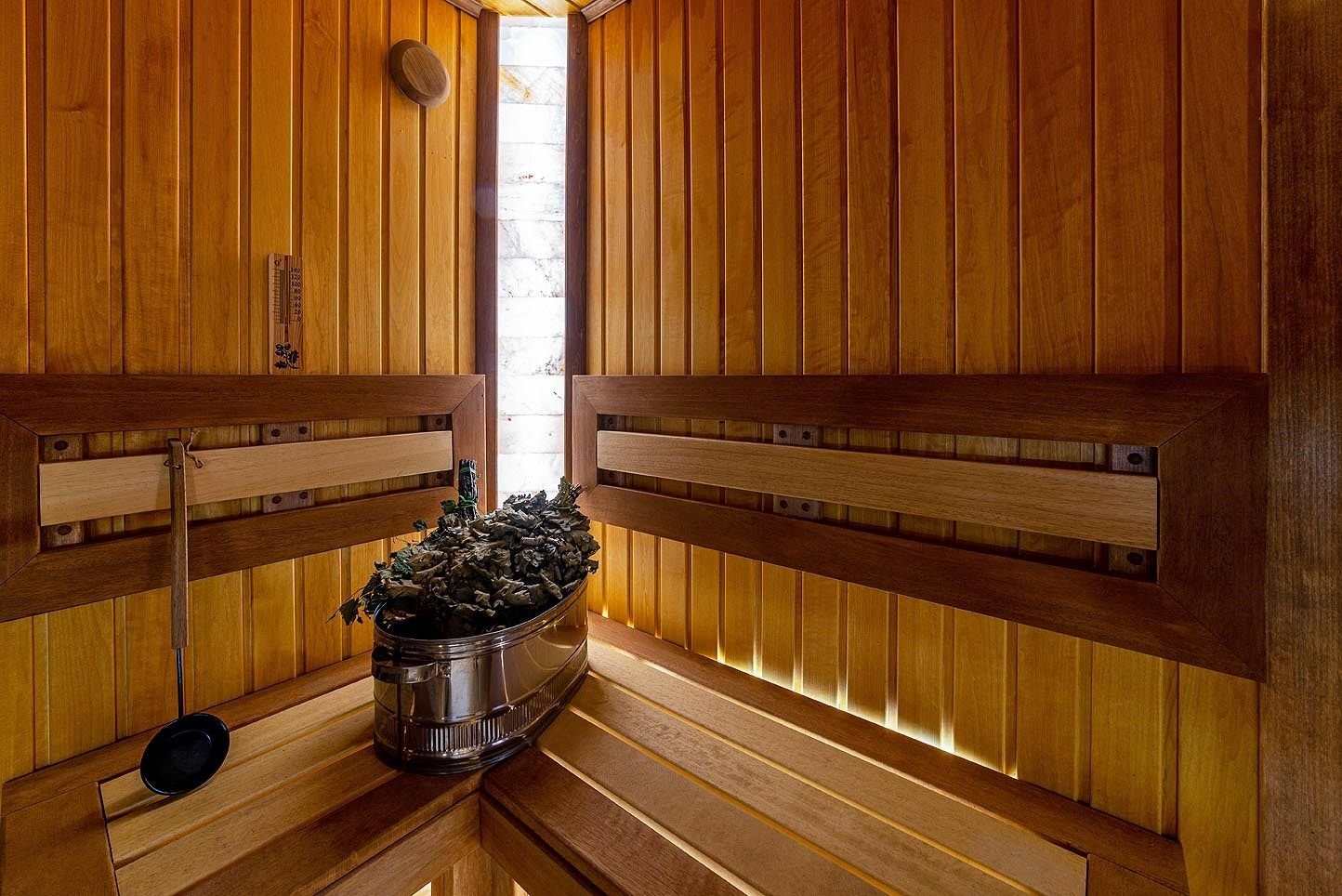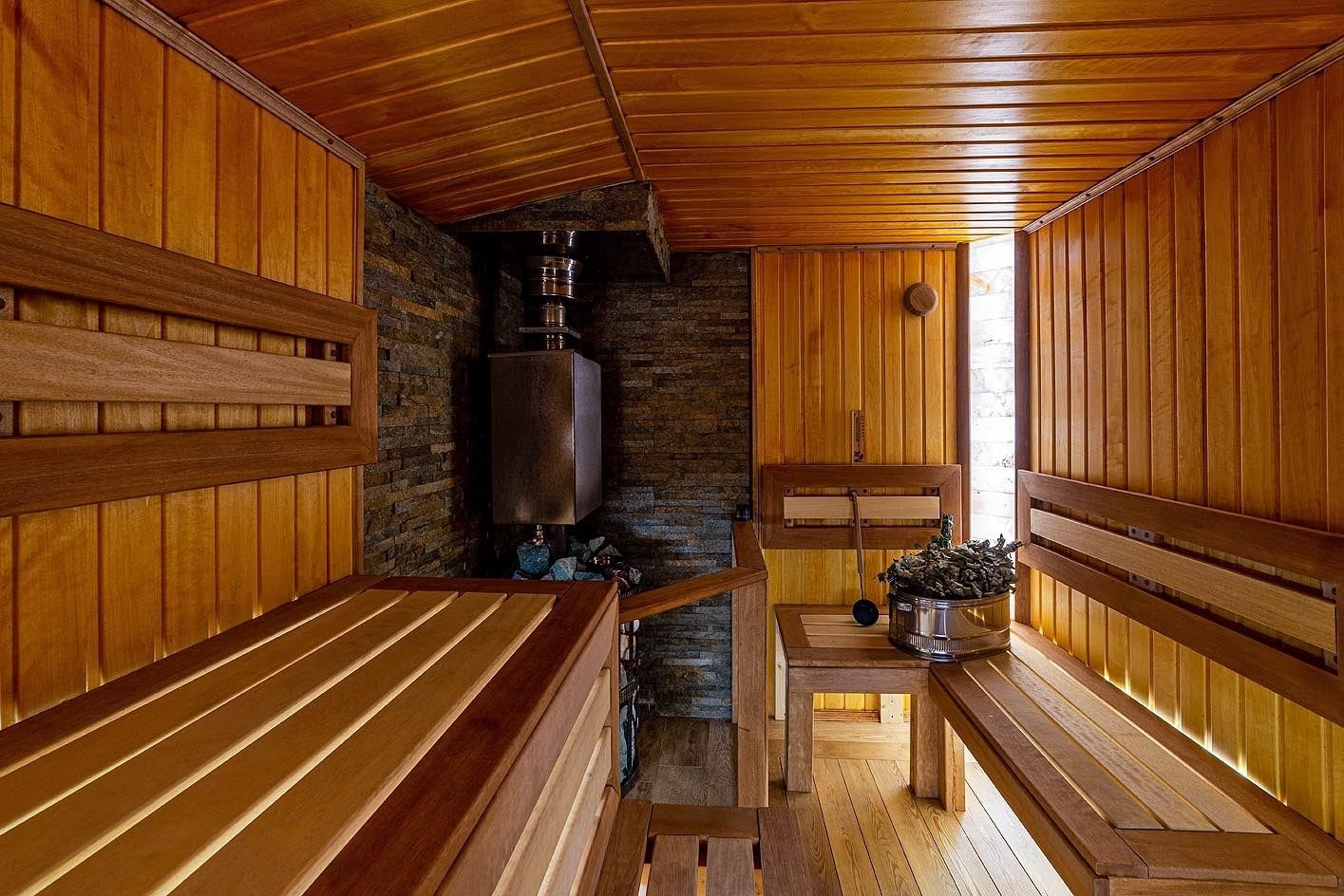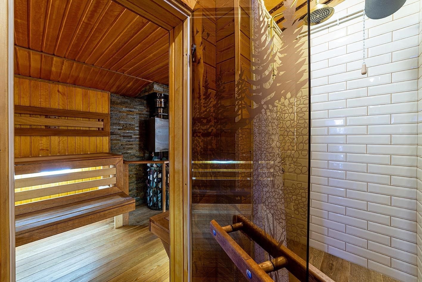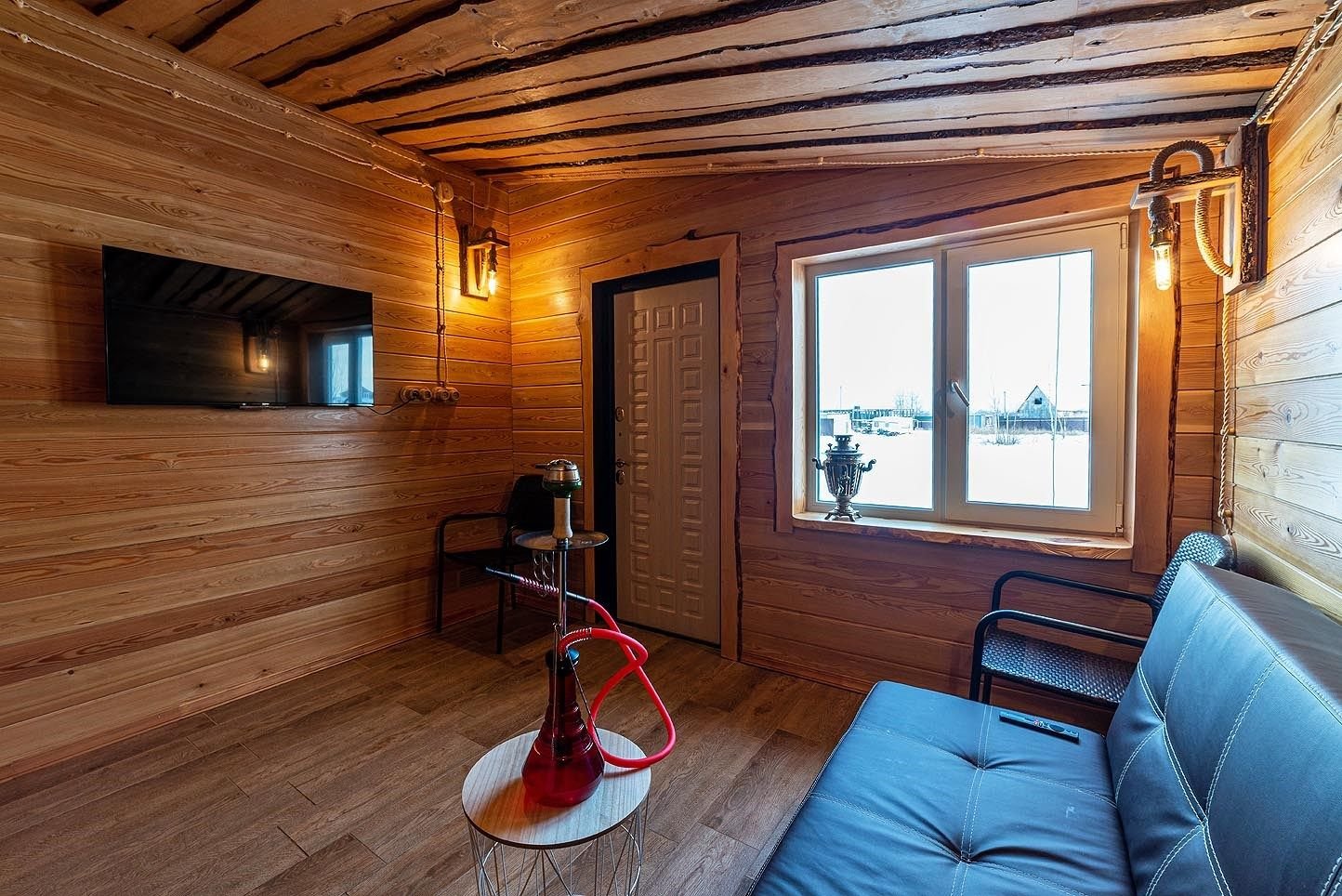 Русская баня на дровах с каменкой на 200 кг камней и светильниками из гималайской соли