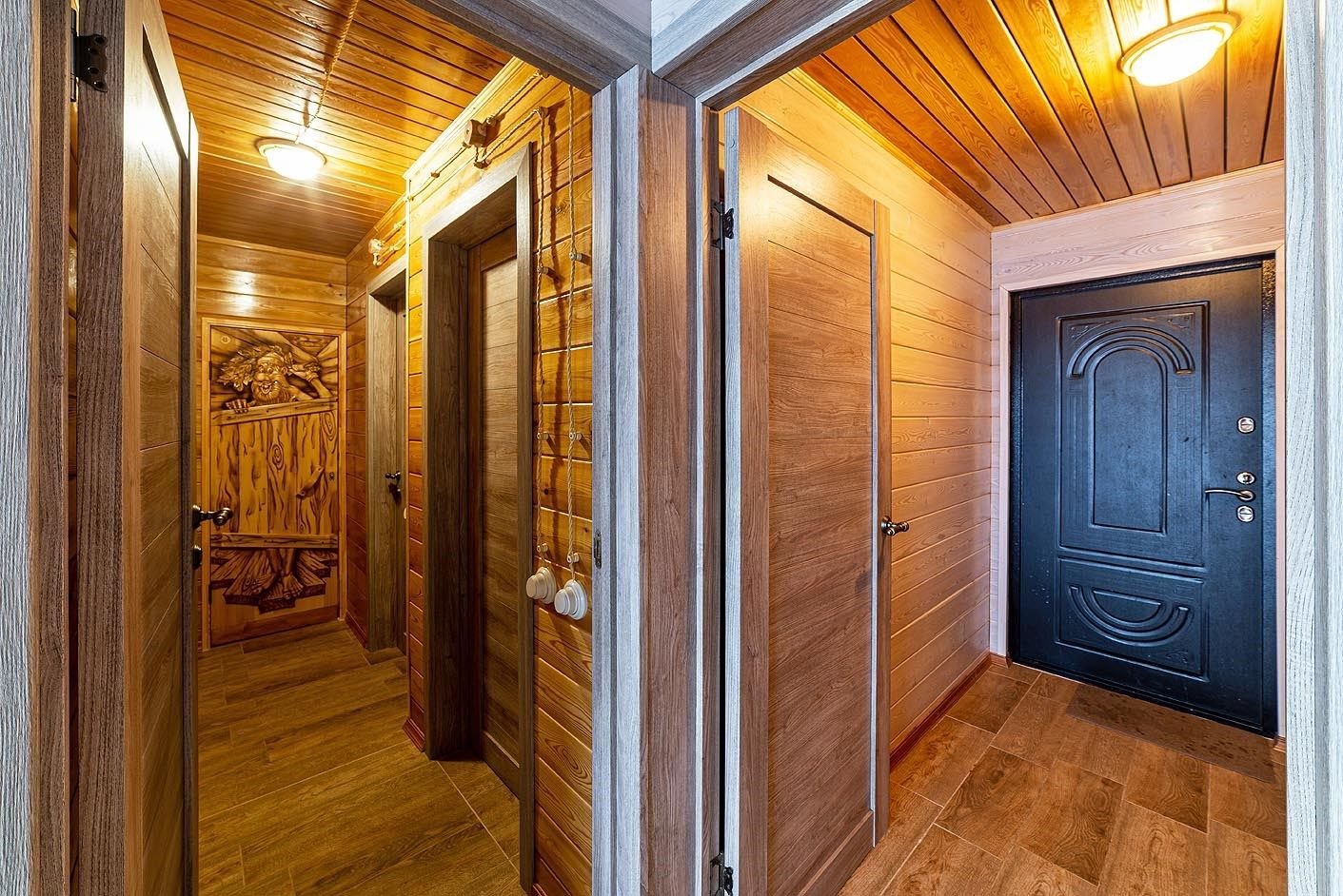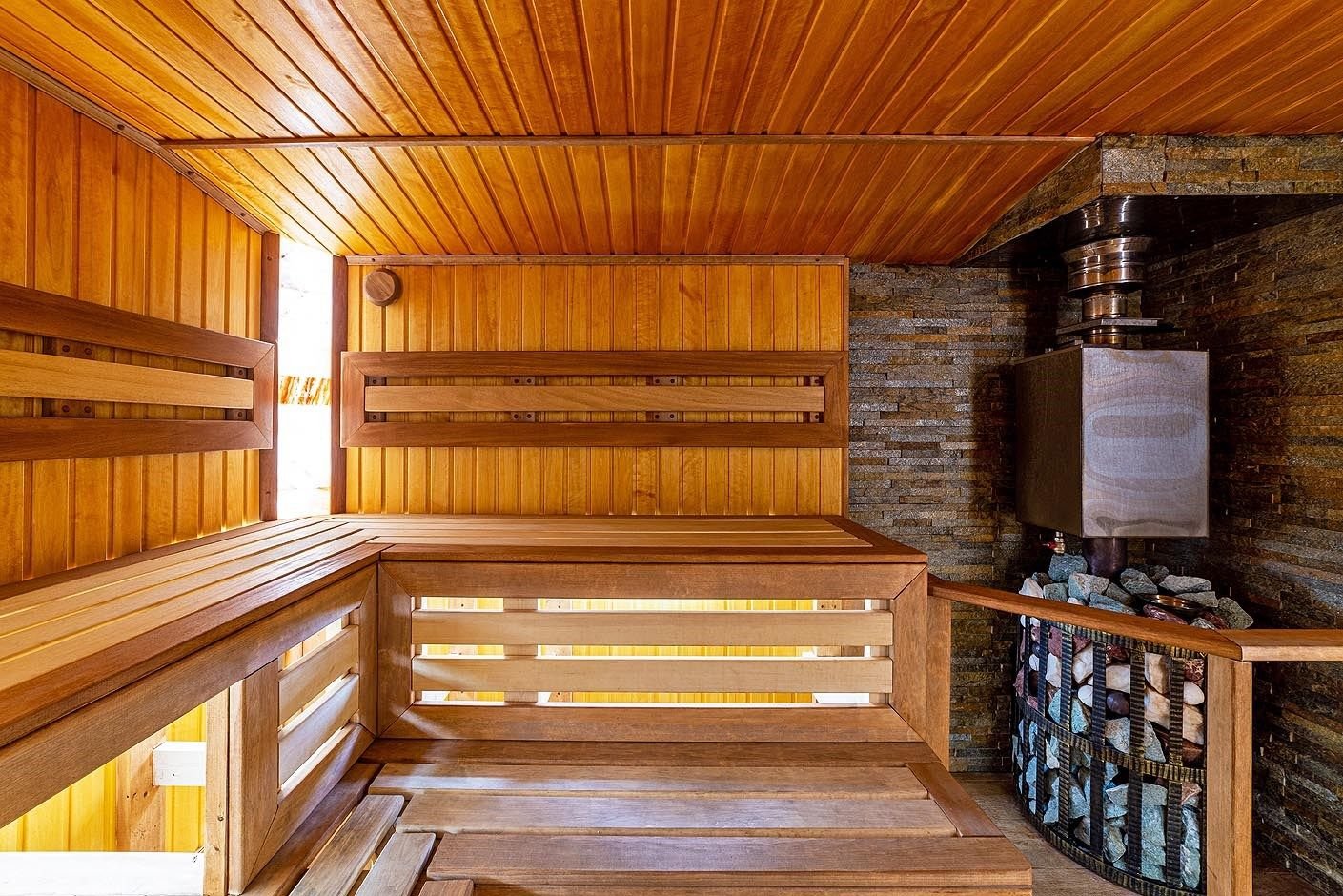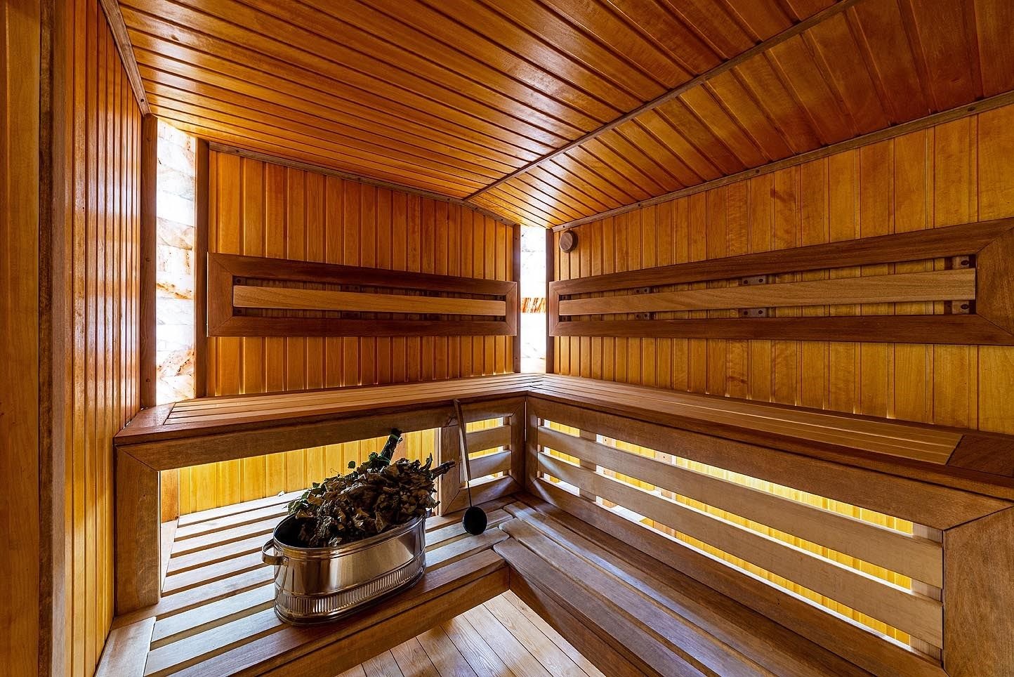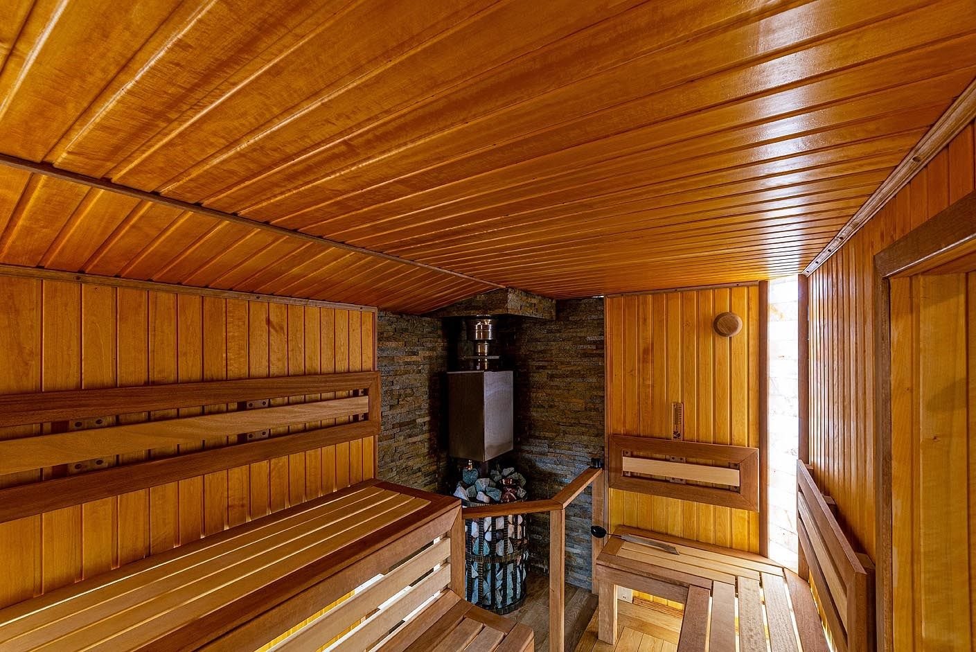 Русская баня на дровах с каменкой на 200 кг камней и светильниками из гималайской соли