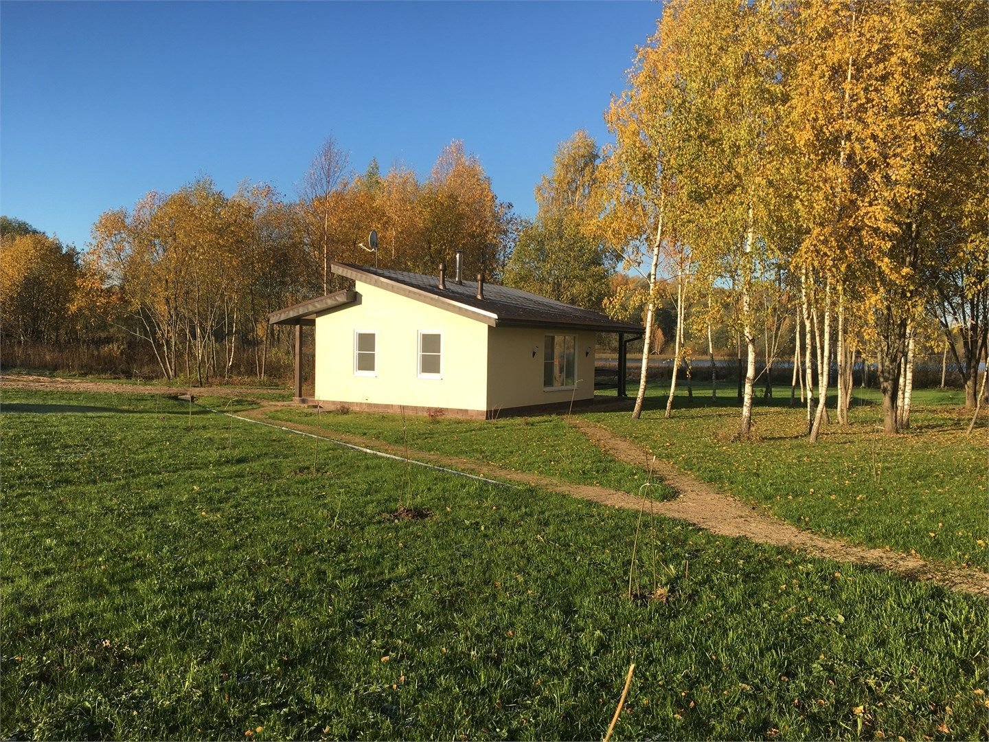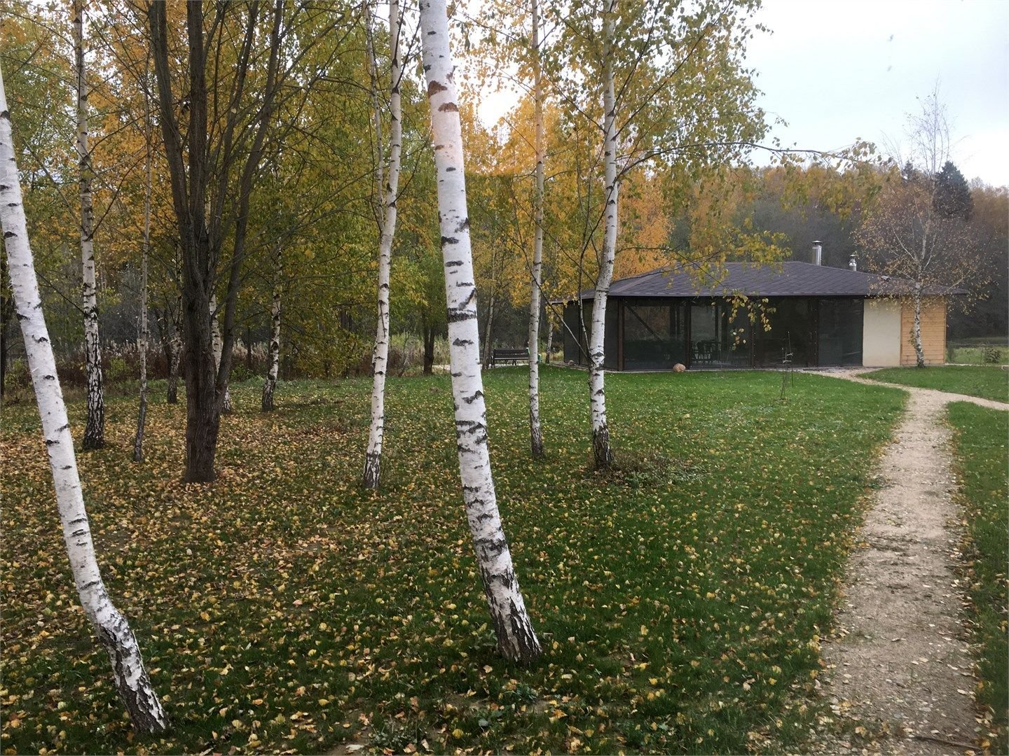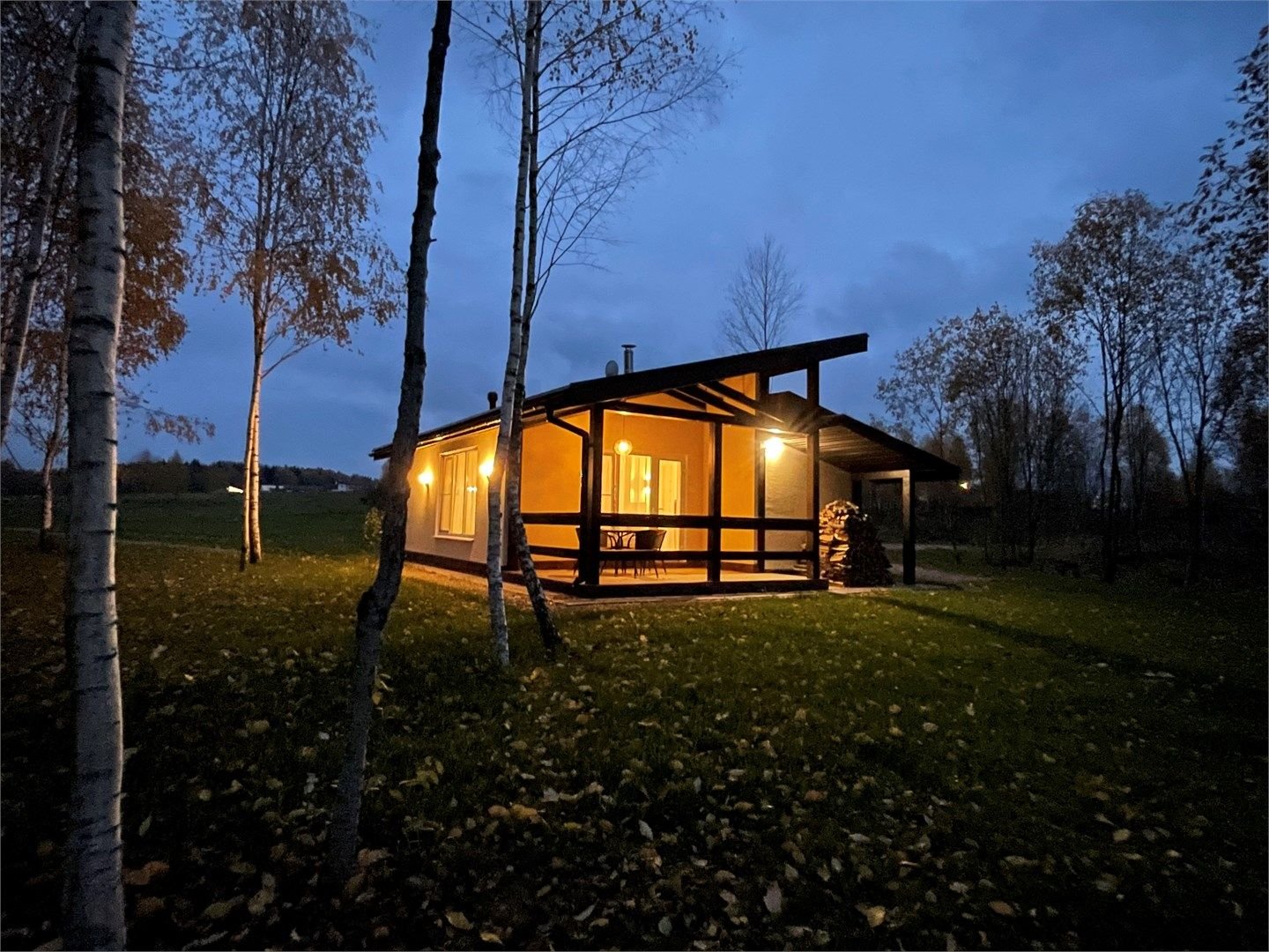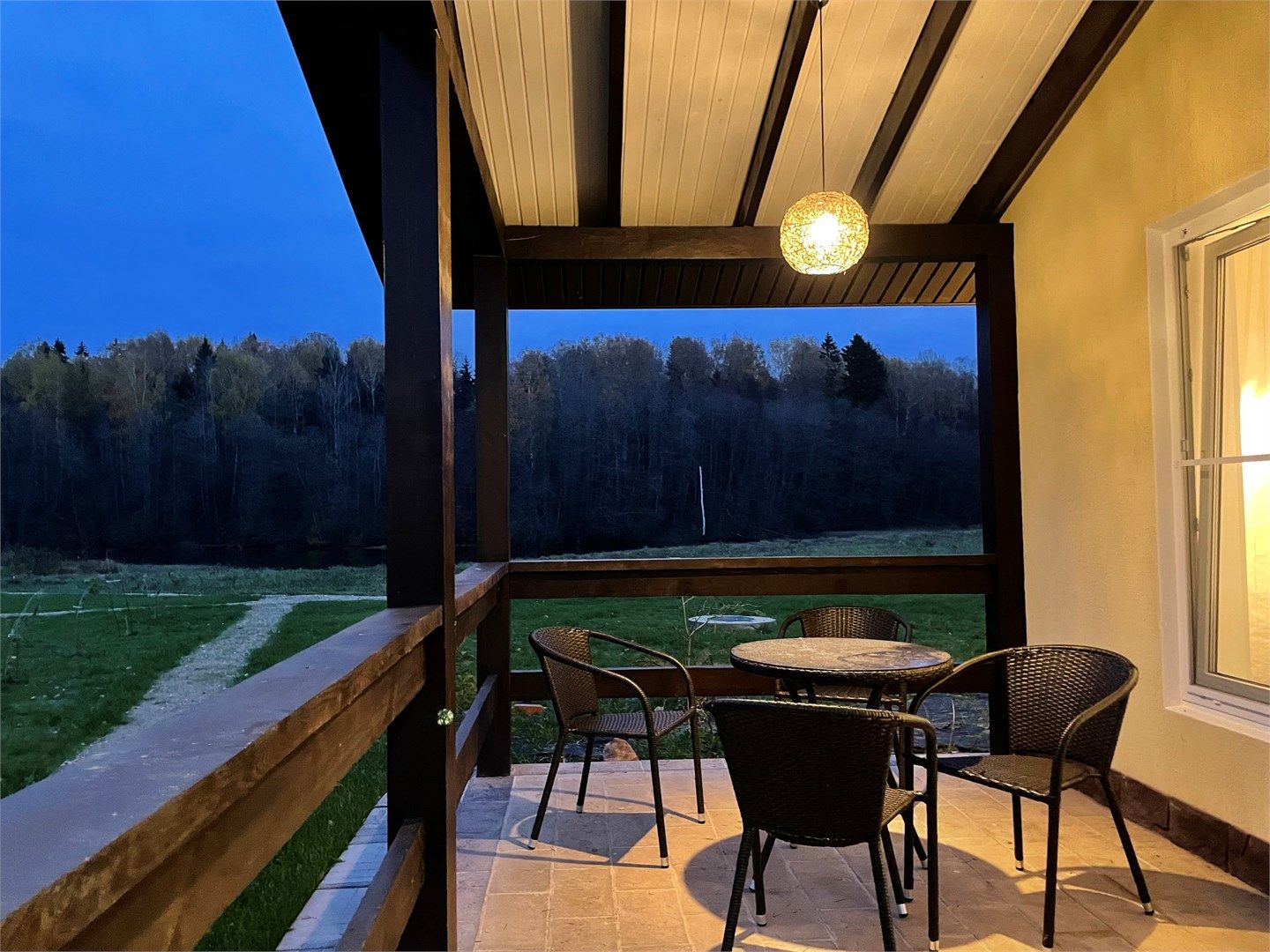 Индивидуальный домик на ферме с видом на озеро и лес.