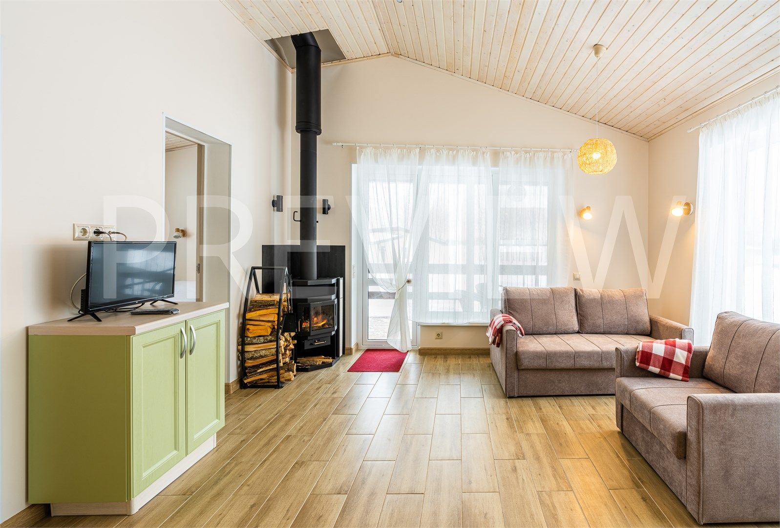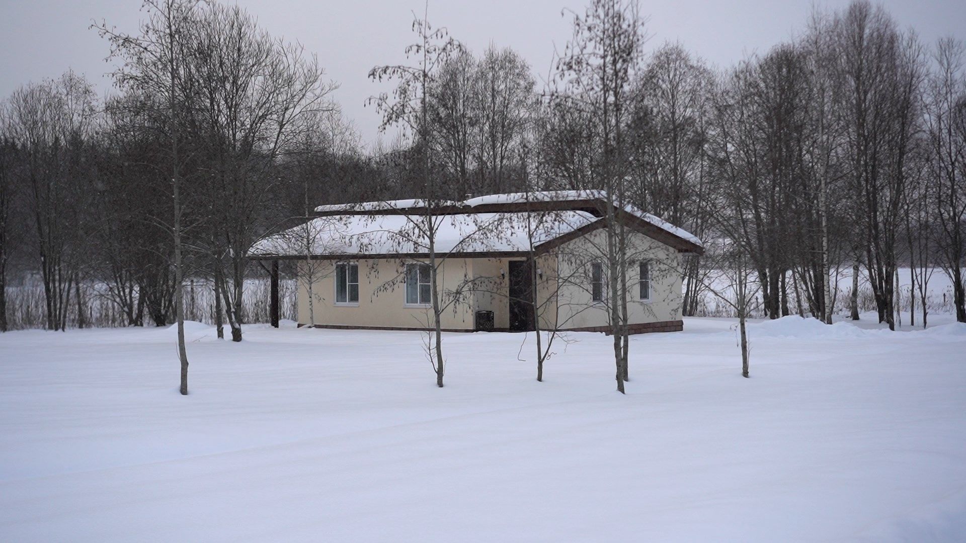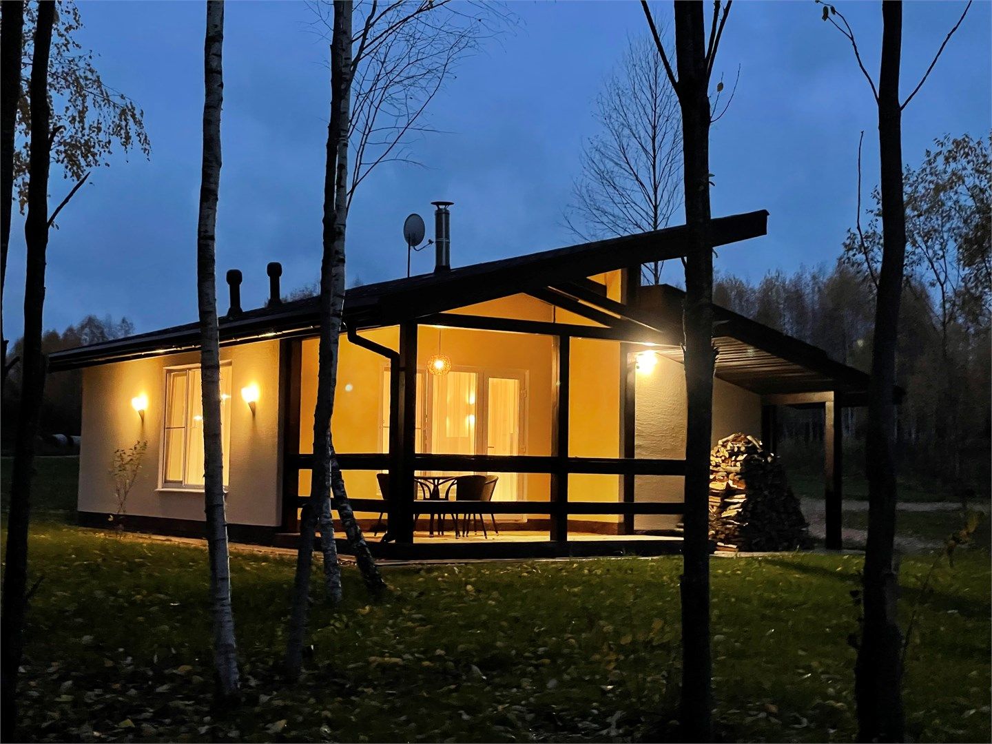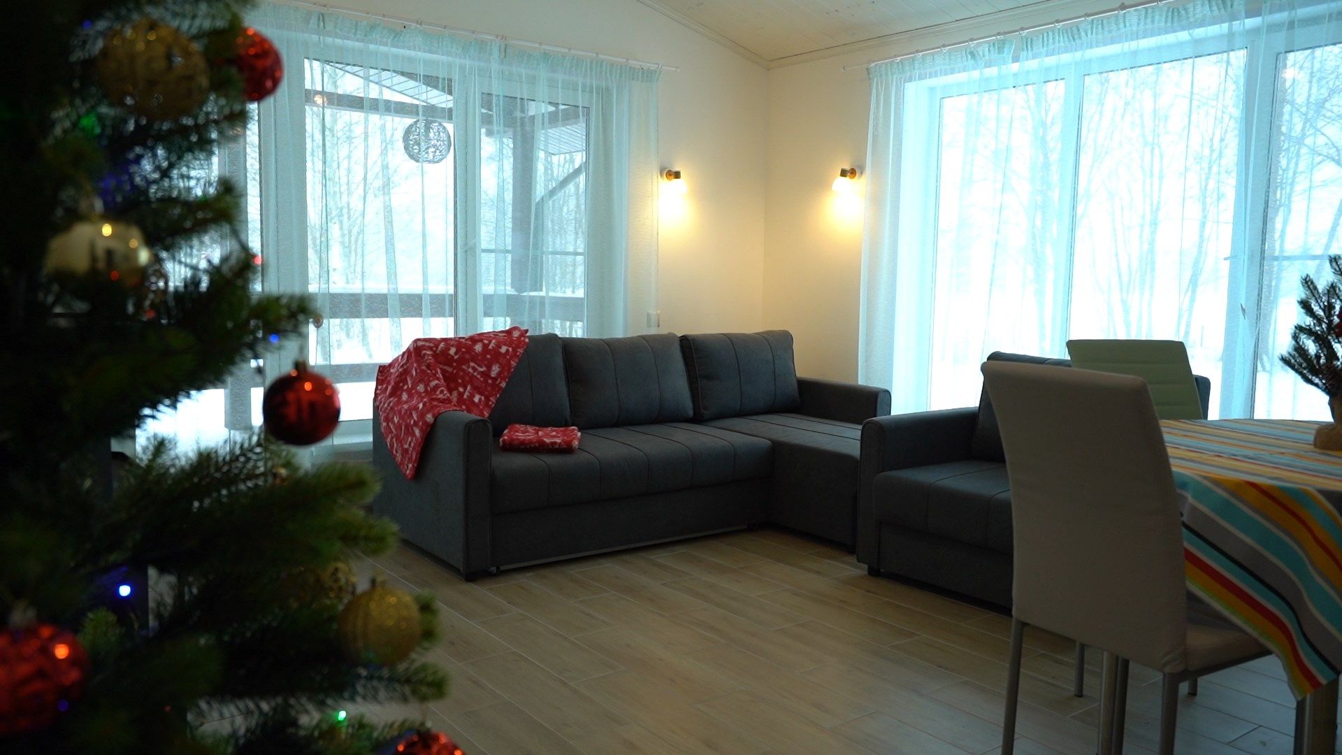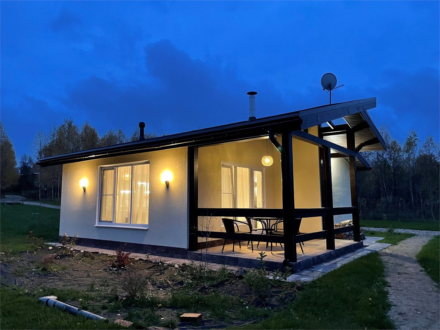 Индивидуальный домик на ферме с видом на озеро и лес.