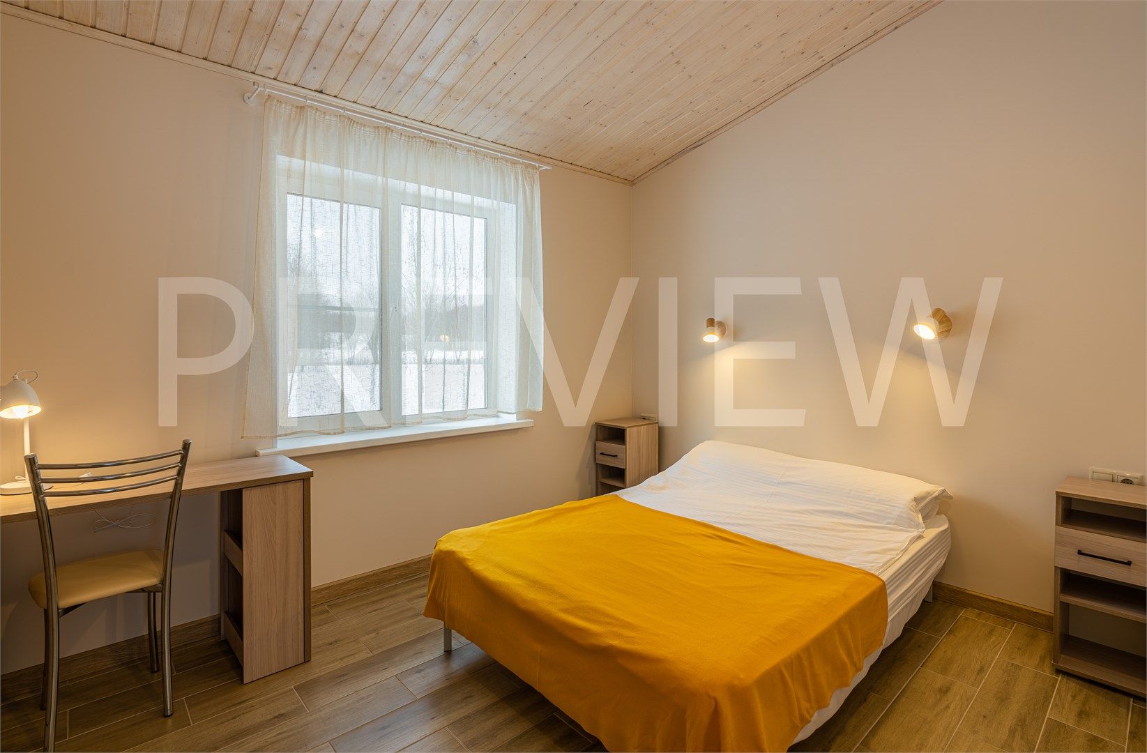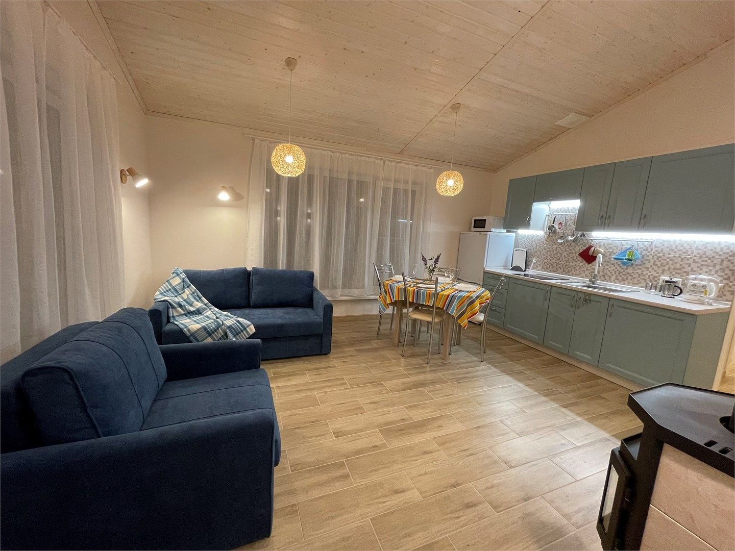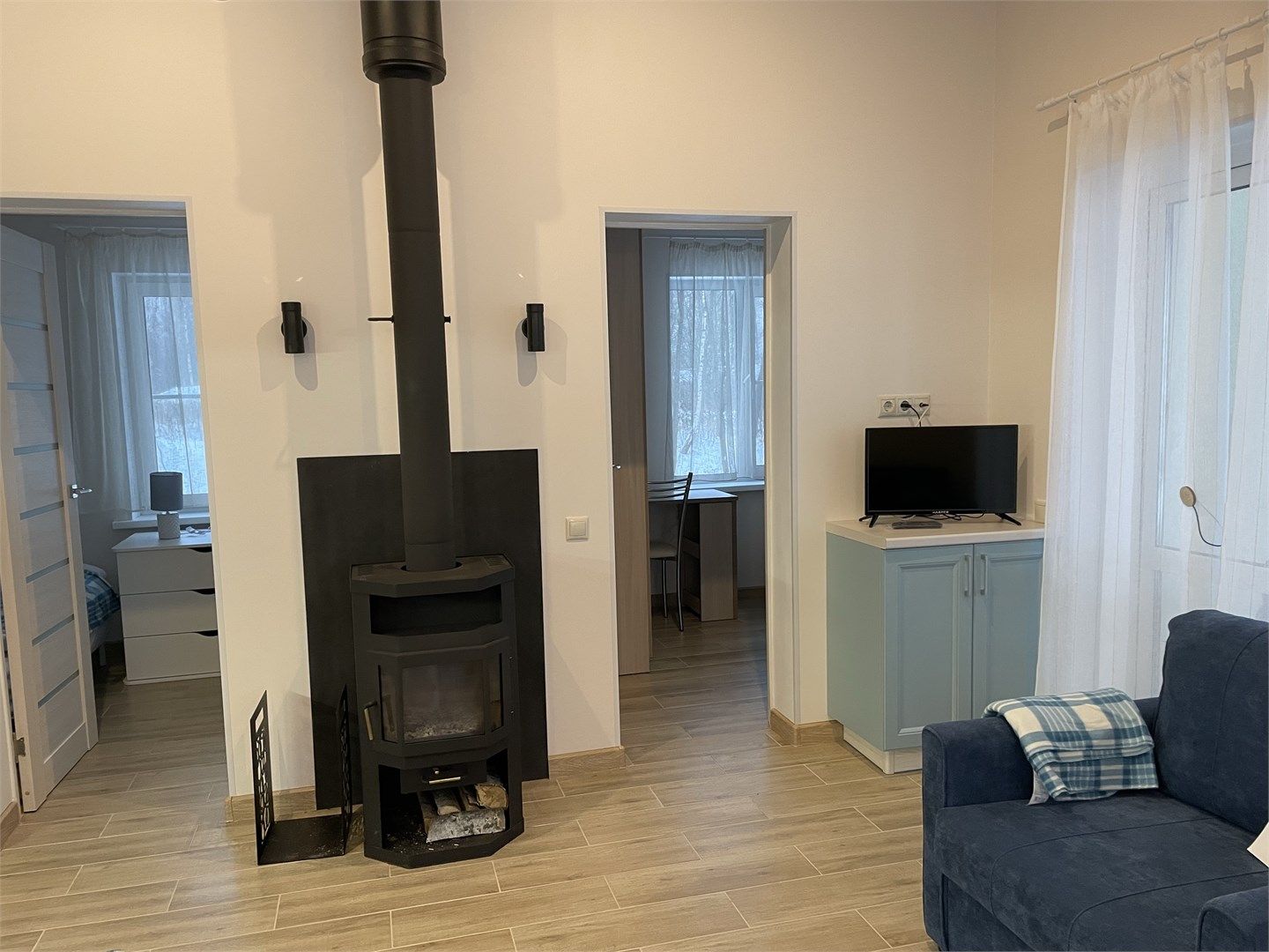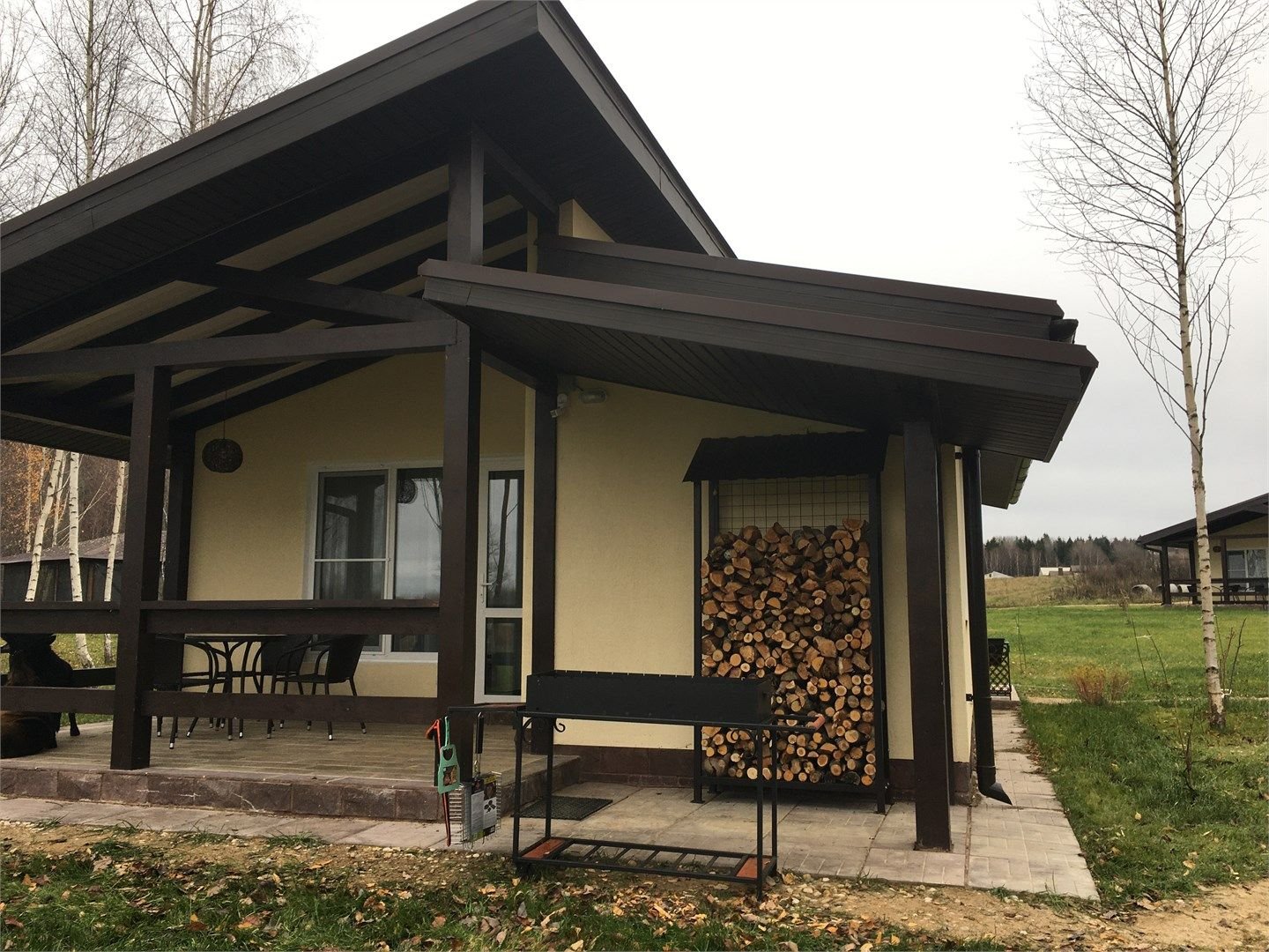 Индивидуальный домик на ферме с видом на озеро и лес.