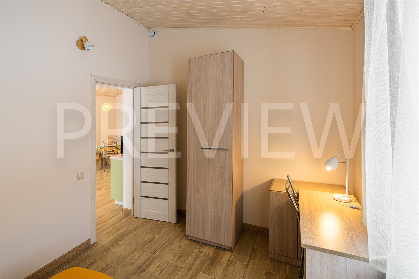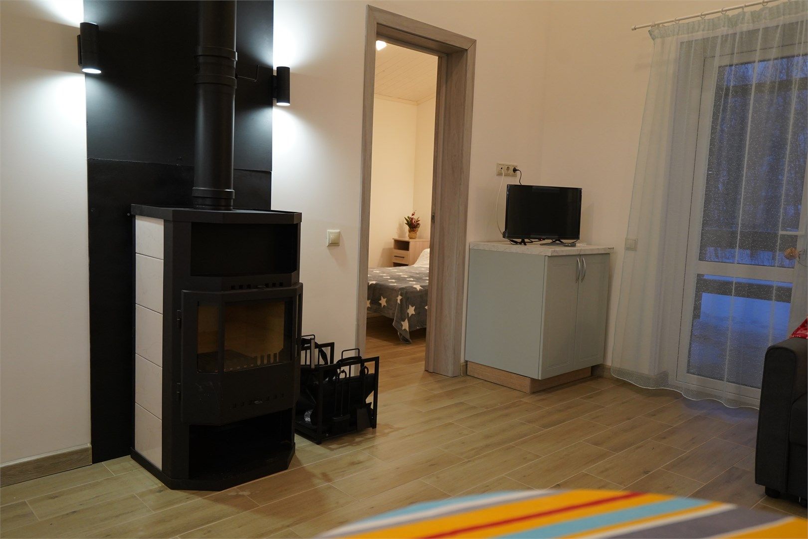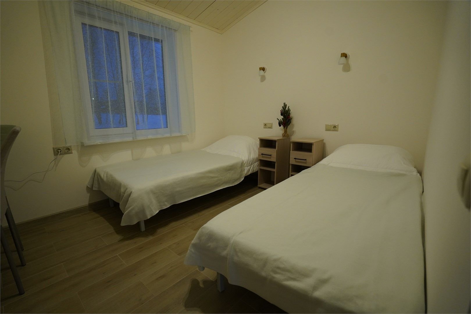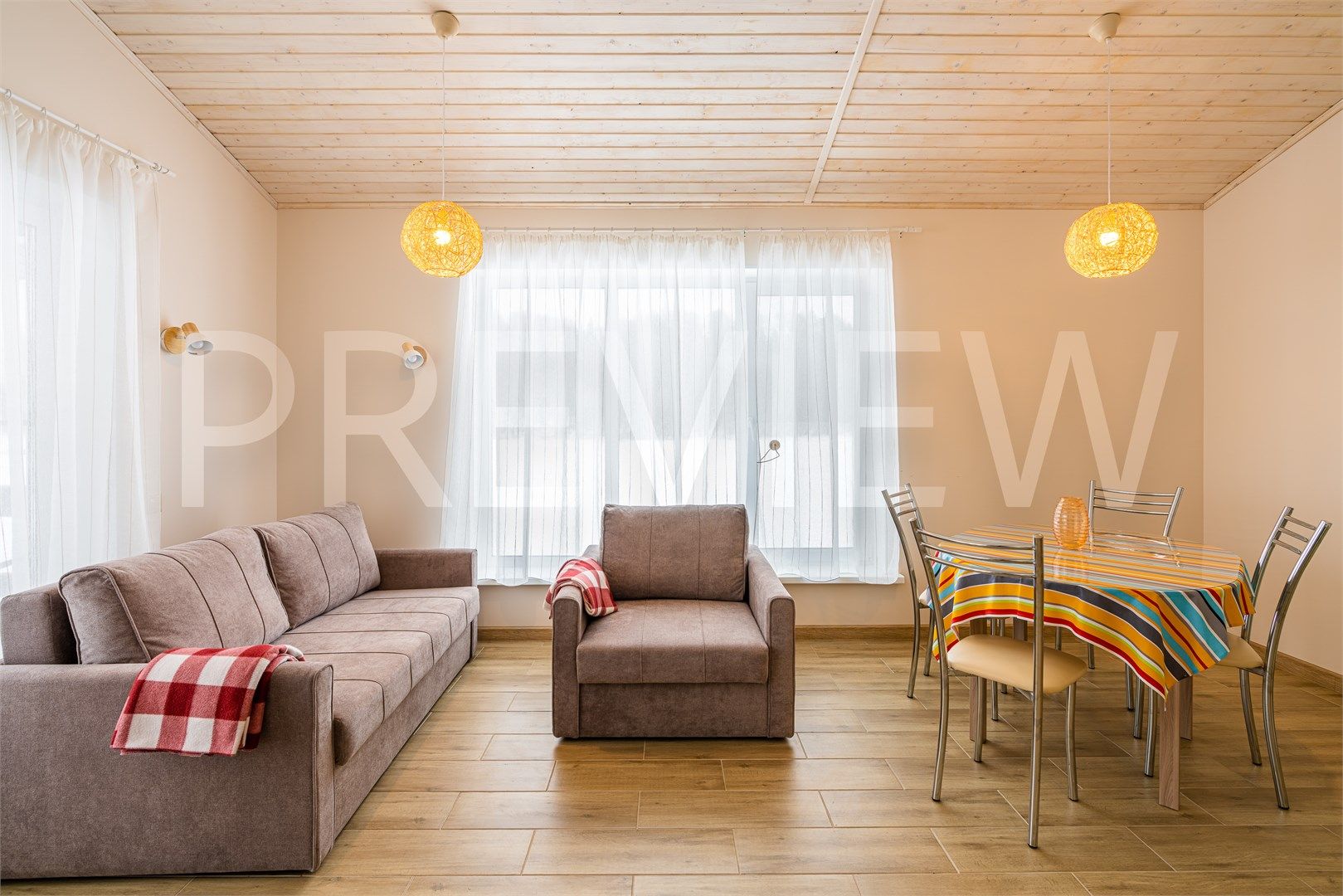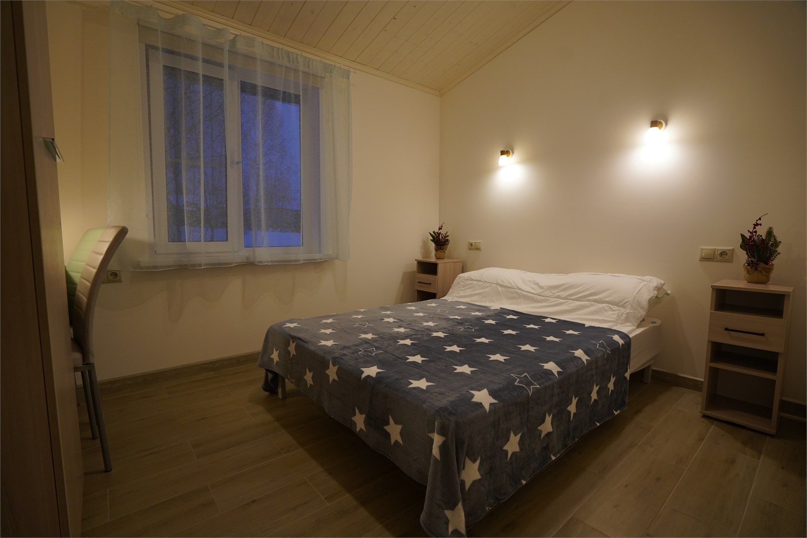 Индивидуальный домик на ферме с видом на озеро и лес.
