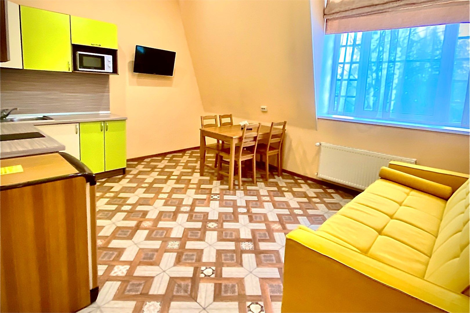 Уютные апартаменты с 1 спальной комнатой, кухней и совмещенным санузлом. Кухня оборудована варочной панелью, холодильником, эл. чайником, есть вся необходимая посуда. Номер расположен в 3 корпусе. Не оборудован кондиционером.