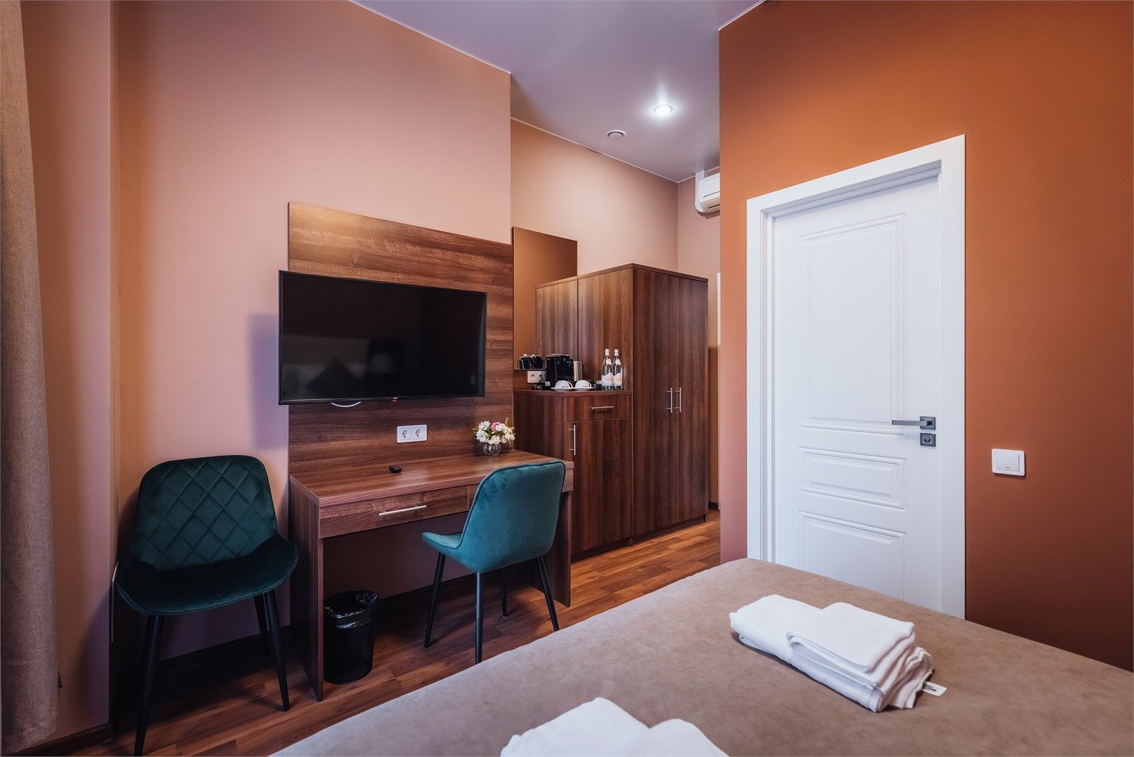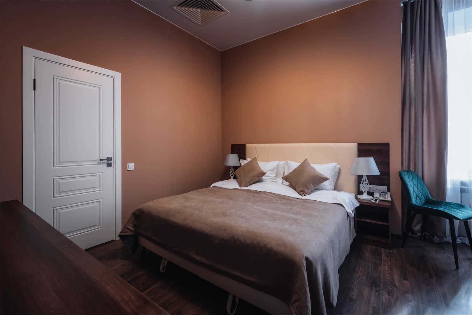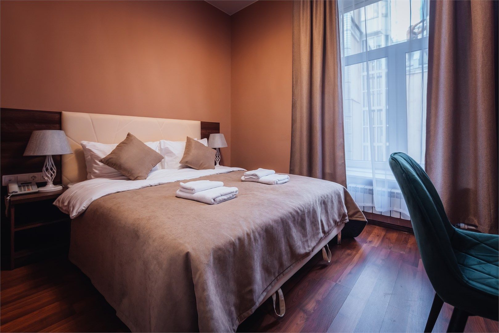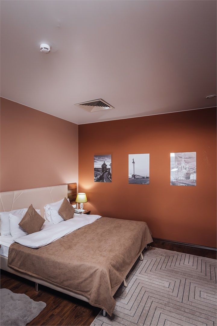 Уютный номер Смарт прекрасно подходит для деловых поездок. Окна номера выходят во внутренний двор здания - архитектурная особенность Санкт-Петербурга. Средняя площадь номера – 16-17 кв. м., вид – в тихий внутренний дворик отеля, вместимость - 1-2 человека. Каждый номер оснащен: двуспальной кроватью с высоким ортопедическим матрасом или двумя односпальными кроватями, функциональным рабочим столо...
