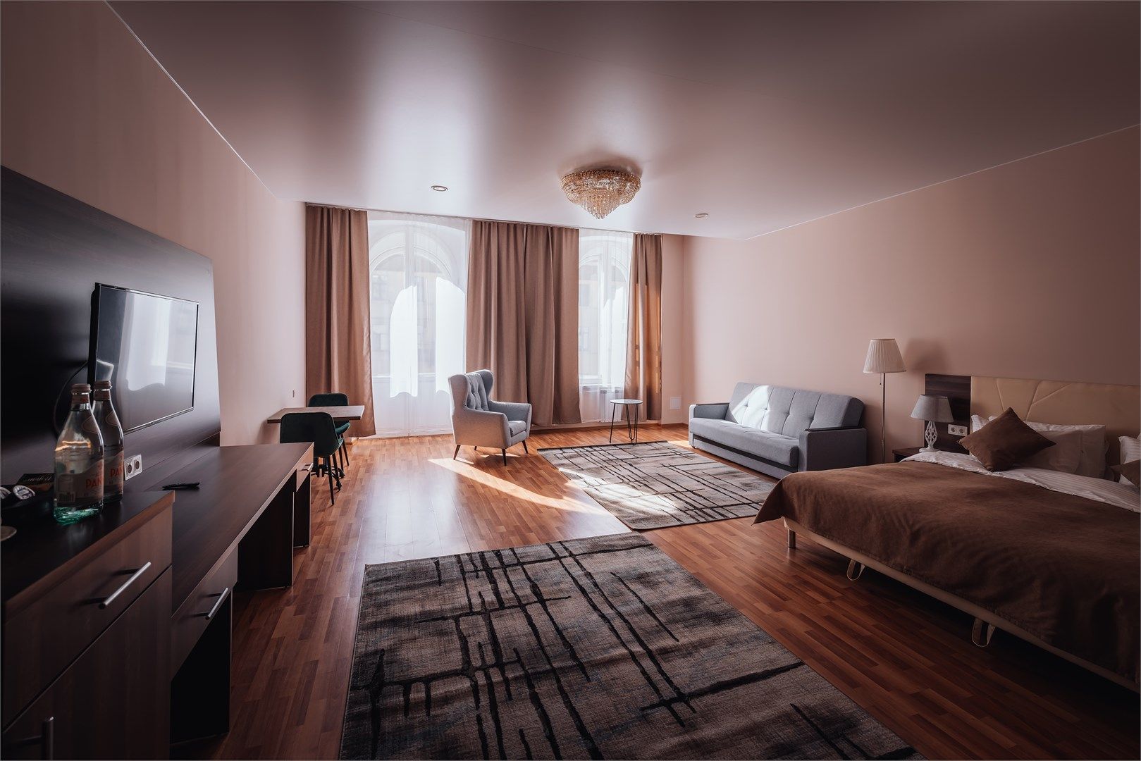 Просторные и светлые номера Люкс сочетают в себе изысканный интерьер и новейшие современные технологии, а великолепный фронтальный вид на Казанский собор и панорамные окна сделают Ваш отдых незабываемым! Классический интерьер и нежные оттенки, используемые в декорировании номеров категории Люкс отеля Kempf Nevsky, дополняют уютную атмосферу. Благородные материалы и высокие потолки создают идеаль...