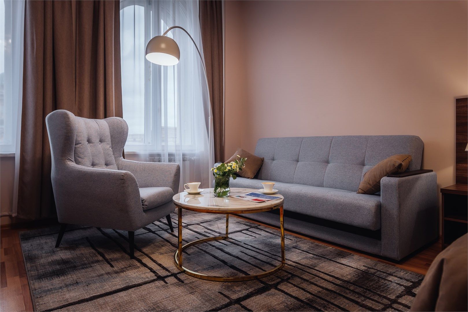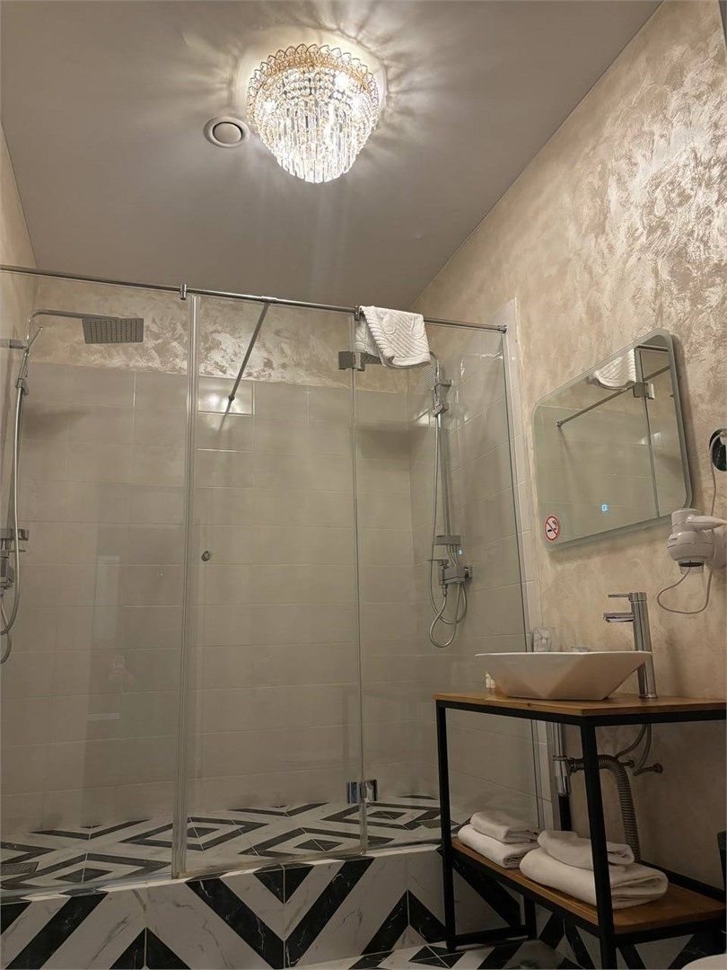 Великолепный номер "Люкс" с панорамными окнами и балконом. Вид на пешеходную зону улицы Малая Конюшенная позволит Вам насладиться красотами города не выходя из отеля! Площадь номера 55- 60 кв. м, возможно как двухместное размещение, так и семейное проживание (есть возможность поставить дополнительное спальное место и/или детскую кроватку). В номере есть все необходимое для комфортного проживания...