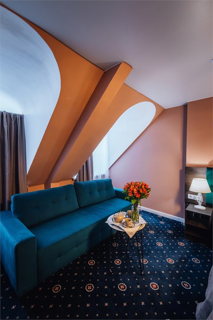 Номера на мансардном этаже отеля дают ощущение простора и романтического уюта, идеально подходят для размещения 1-2 человек. Площадь номера варьируется от 18 кв.м. Мансардные окна номера выходят на ул. Малая Конюшенная. В каждом номере имеется спальная зона с удобной двуспальной кроватью с высоким ортопедическим матрасом, также есть номера с двумя односпальными кроватями. Номера оснащены: пла...