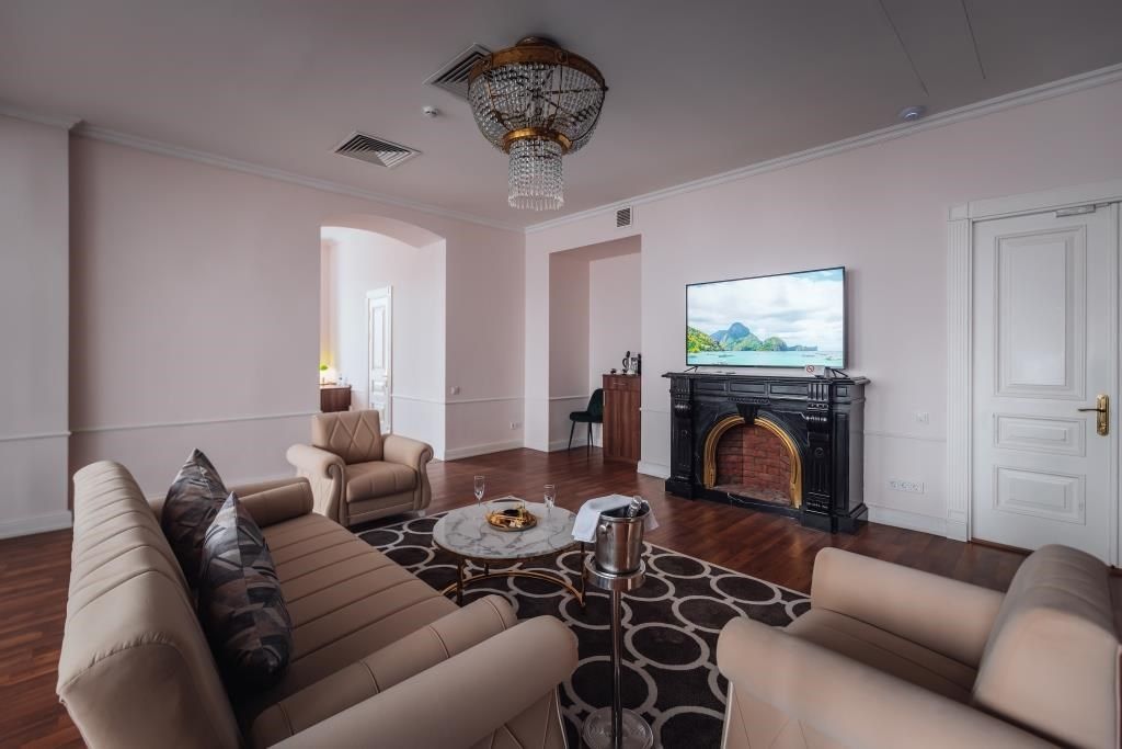 Комфортабельный двухкомнатный люкс площадью 100 кв. м подойдет для размещения 4-6 гостей с детьми. Есть возможность организации смежных номеров для комфортного размещения семьи. Из панорамных окон номера открывается потрясающий вид на Казанский собор! В номере: 2 изолированные спальни, 2 санузла, общий холл. Двуспальная кровать (Super King size) в каждой комнате или две полутороспальные кров...