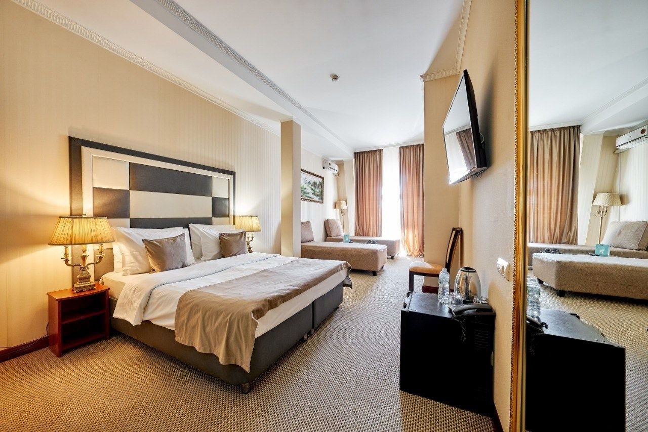 Просторный двухместный номер категории «Студио» – оптимальный вариант для романтического отдыха вдвоем или деловой поездки и встреч с партнерами.