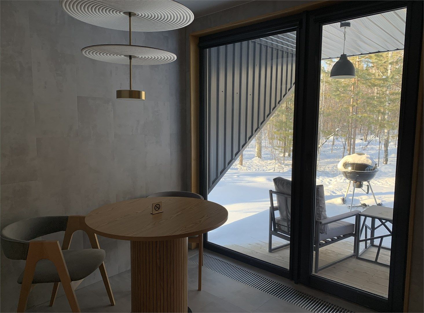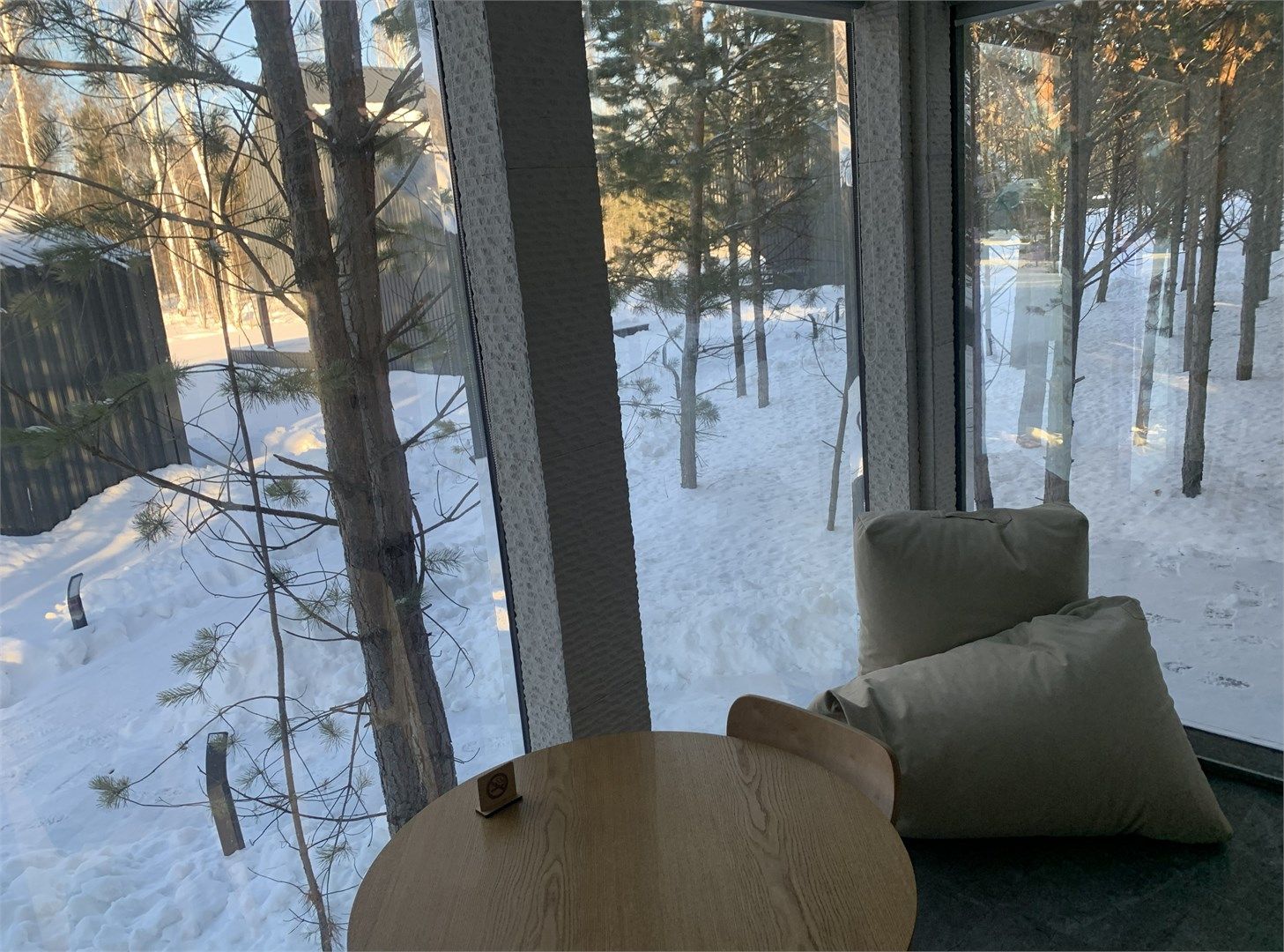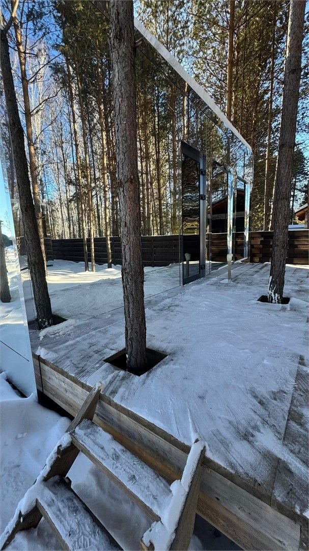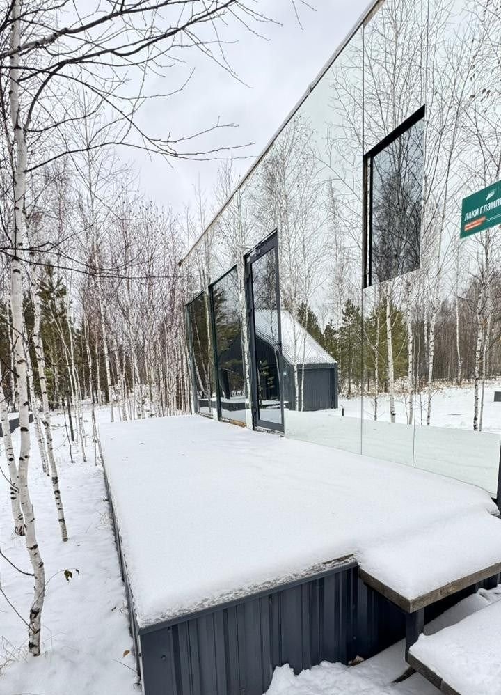Зеркальный домик с красивым видом в спокойном дизайне, располагающем к отдыху. Двуспальная кровать queen size (160*200). Рассчитан на проживание двоих гостей.