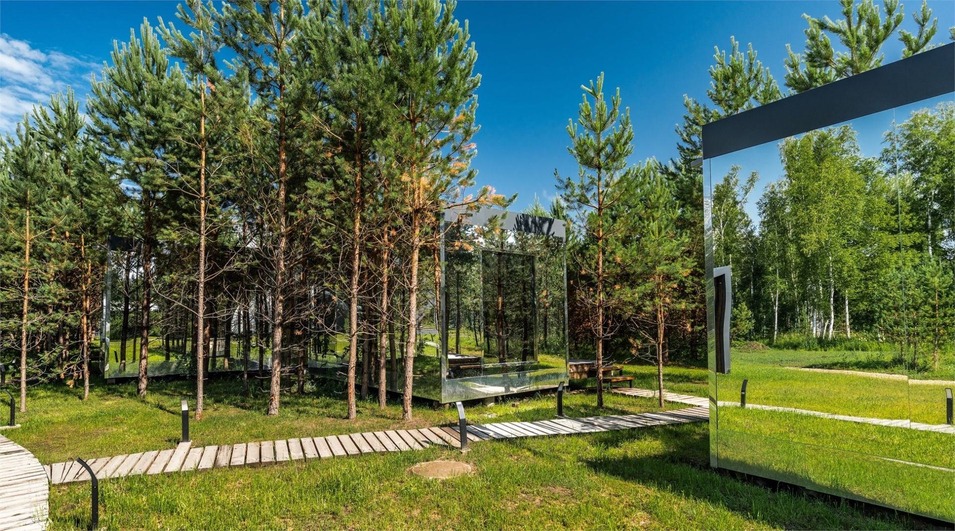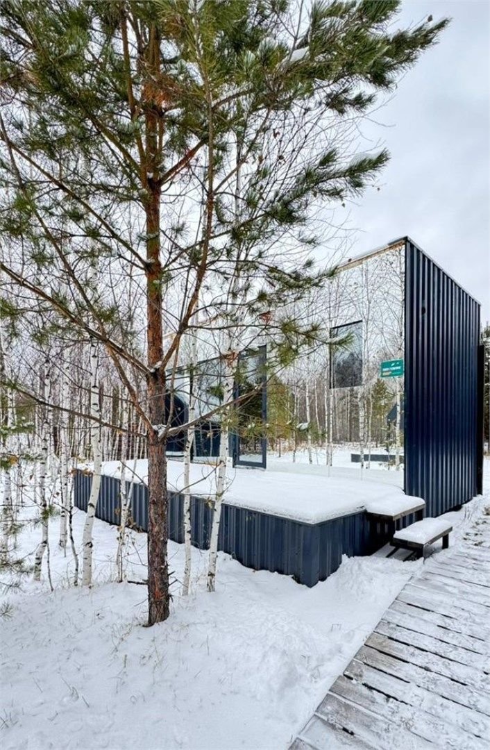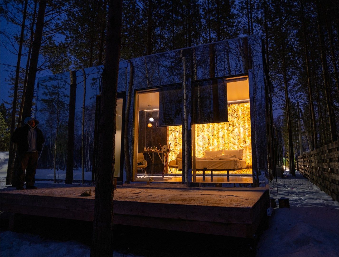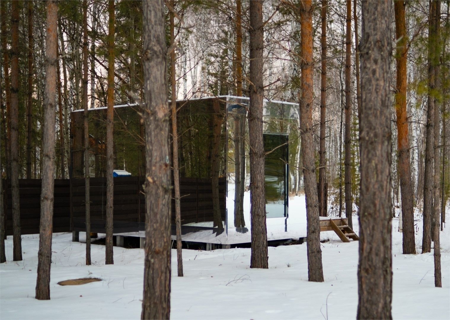 Зеркальные домики, сливающиеся с природой, создают ощущение полного единения с лесом. Двуспальная кровать queen size (160*200). Рассчитан на проживание двоих гостей.