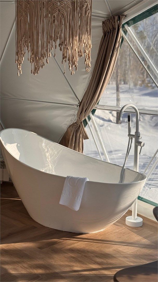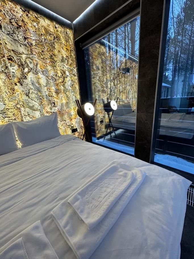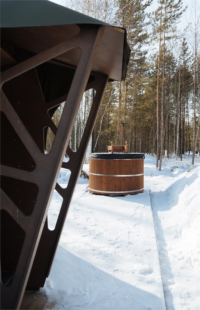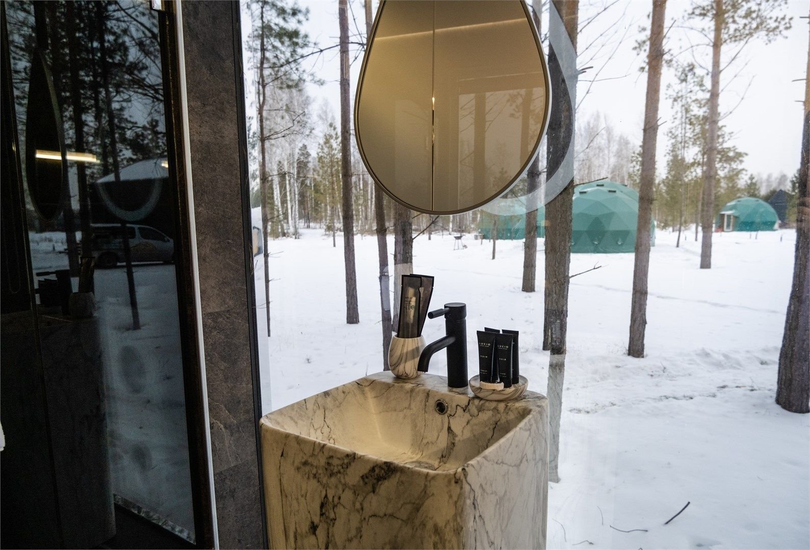 Уникальный дом-сфера площадью 38м2, выполненный в стильном и современном дизайне. Одной из главных особенностей нашего дома является наличие купели, которая является местом, где Вы сможете расслабиться и насладиться удивительными ощущениями тепла и приятного аромата. Купель оснащена всем необходимым оборудованием, что позволяет нашим гостям в полной мере насладиться пребыванием в ней. В номере име...