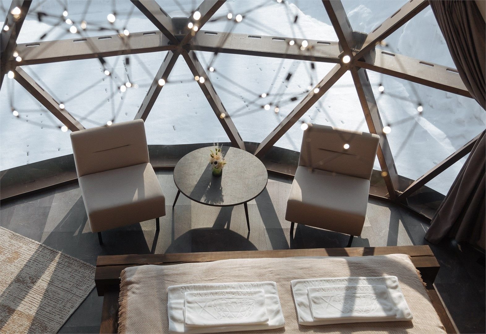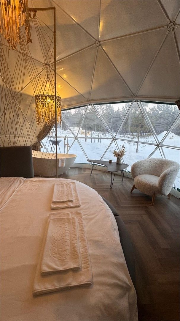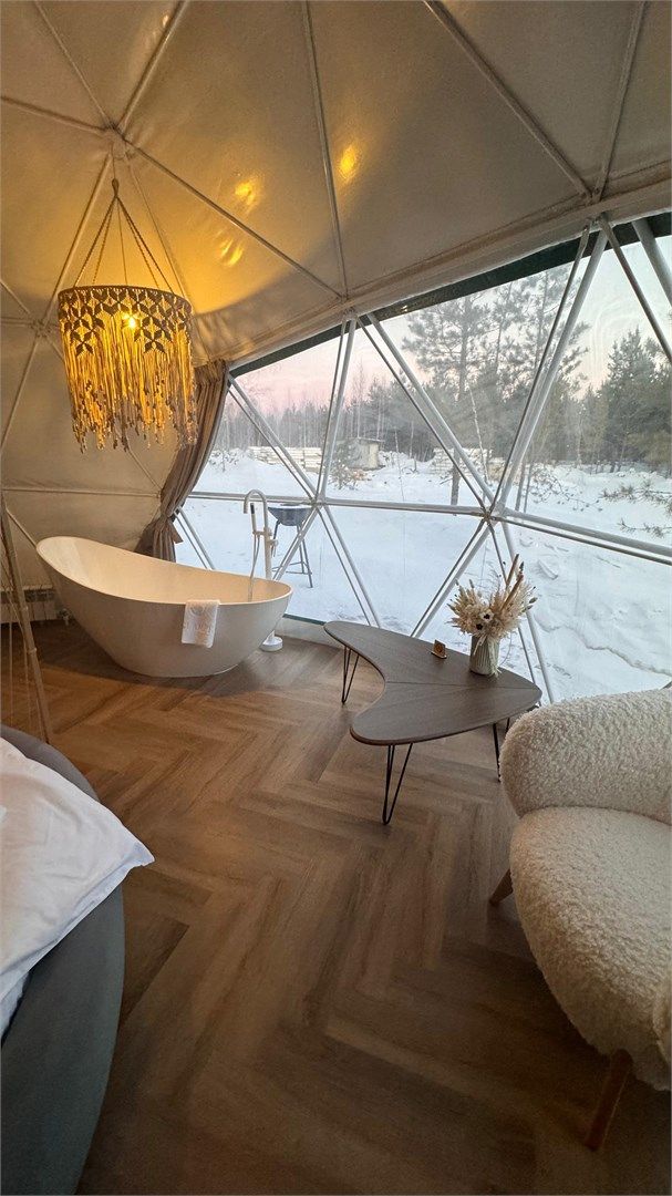 Вы мечтаете о незабываемом романтическом вечере, наполненном волшебством и роскошью? Мы уверены, что уникальный дом-сфера "Sense" – именно то, что вам нужно! Оригинальный номер площадью 33м2, интерьер которого сочетает в себе гармонию и стиль, что создает атмосферу, соответствующую самым романтичным мечтам: кровать, имеющая форму круга, предоставляет возможность уютного прикосновения, окутывая Вас...