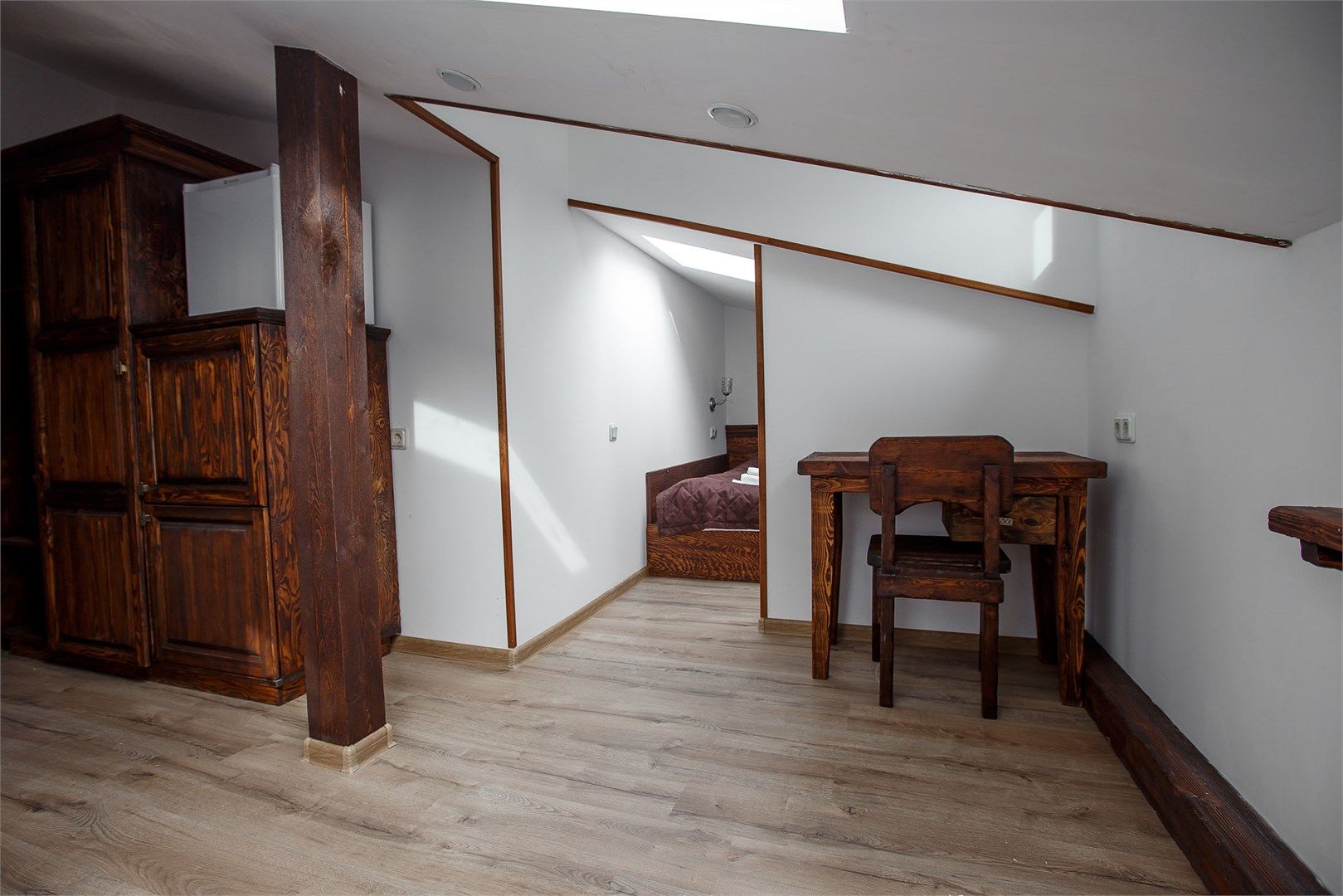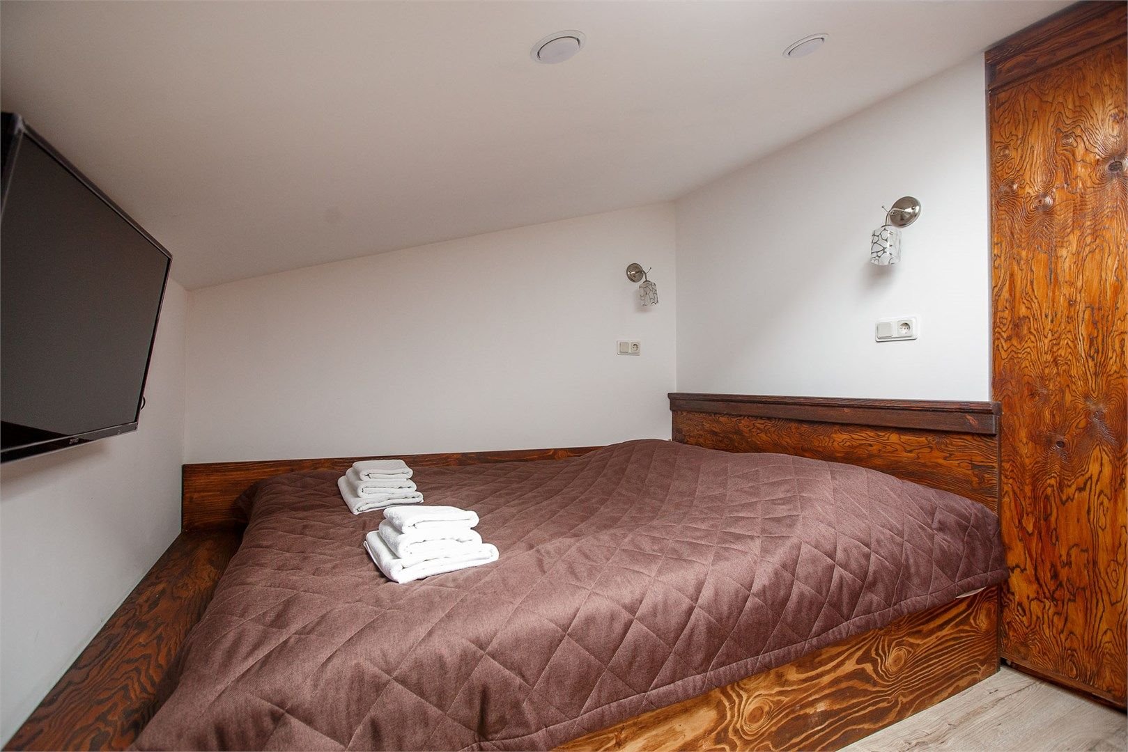 В номере одна двуспальная кровать, шкаф, душ, туалет, телевизор, холодильник, туалетные принадлежности. Если понадобится, то предоставим утюг и гладильную доску.