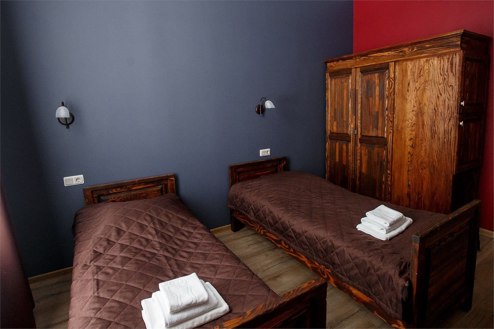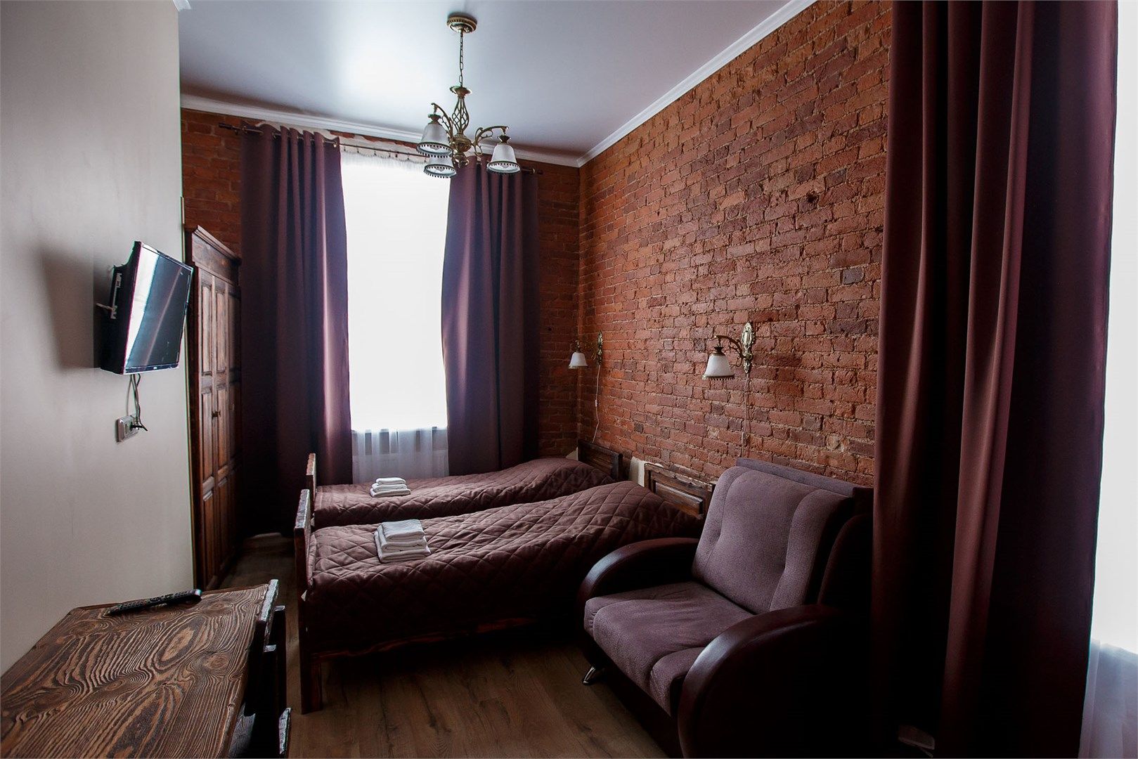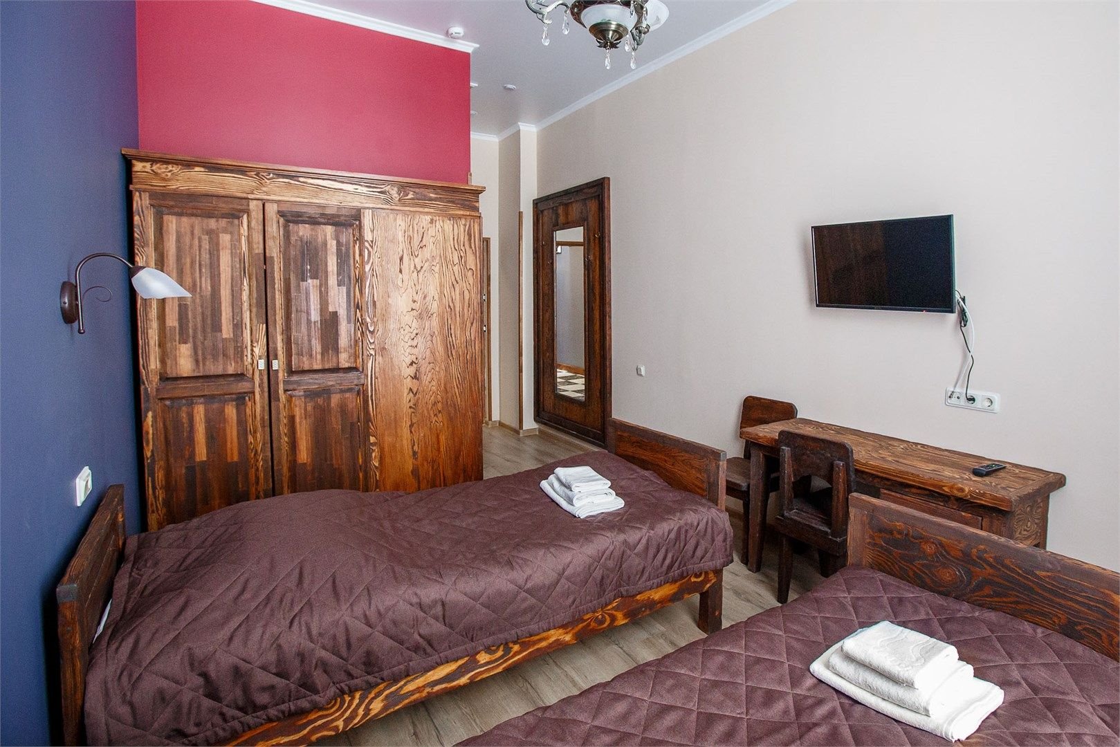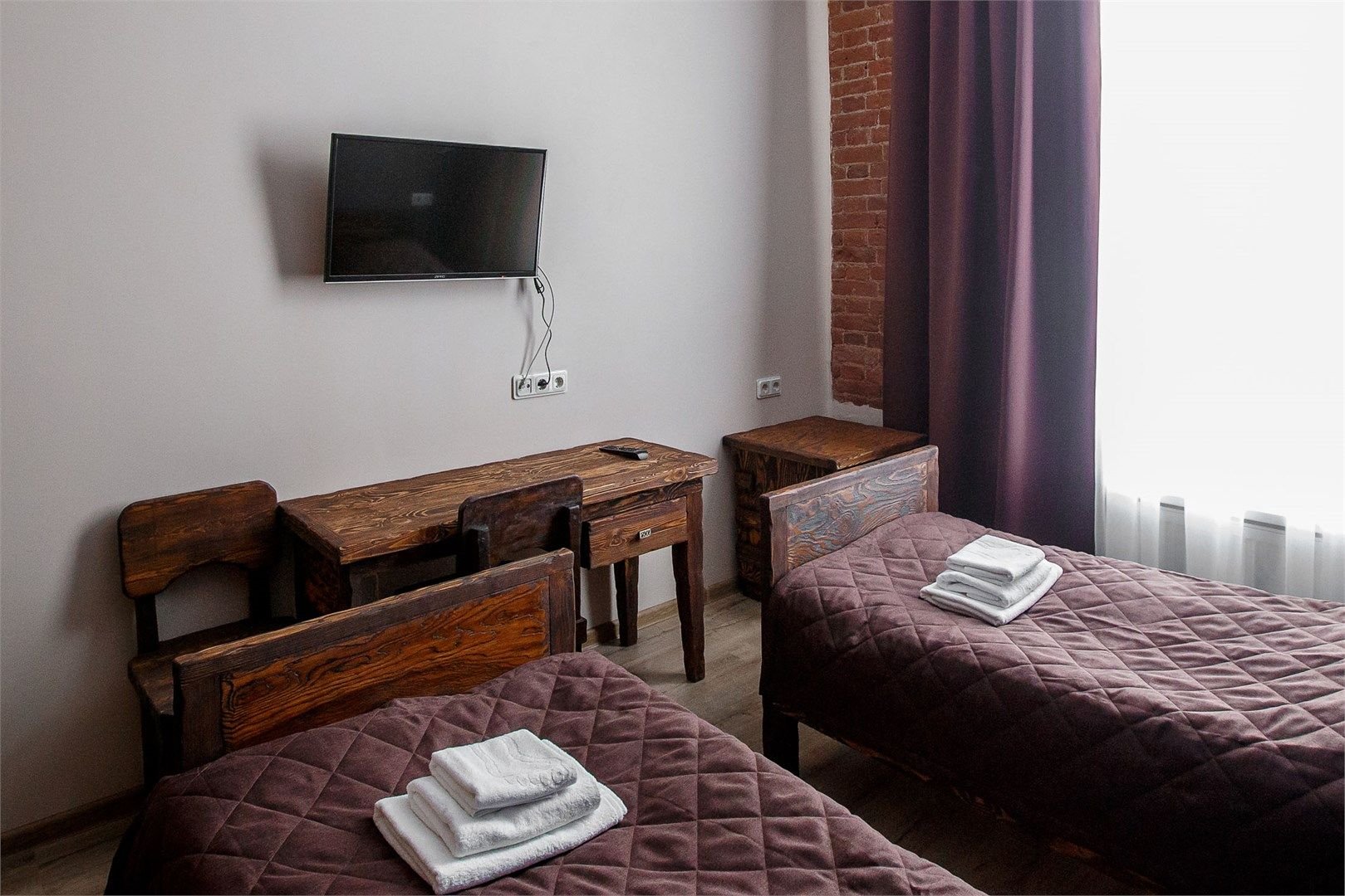 В номере две односпальные кровати, шкаф, душ, туалет, телевизор, холодильник, туалетные принадлежности, Если понадобится, то предоставим утюг и гладильную доску.