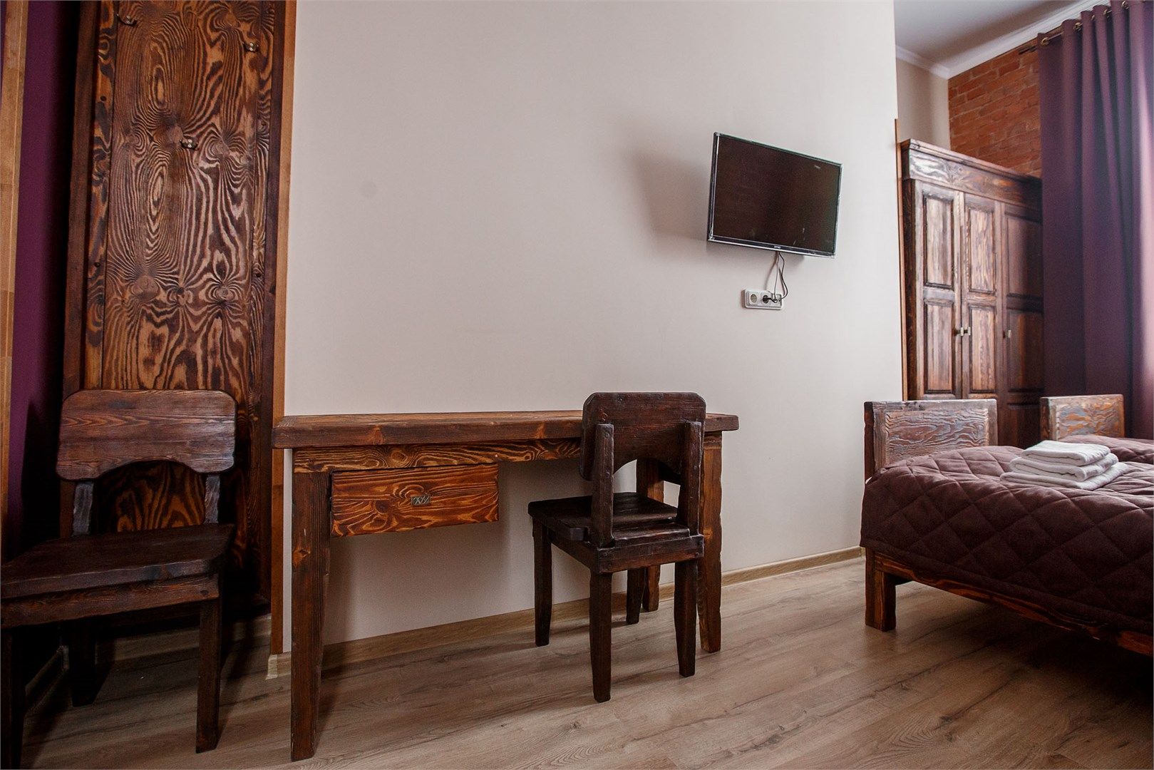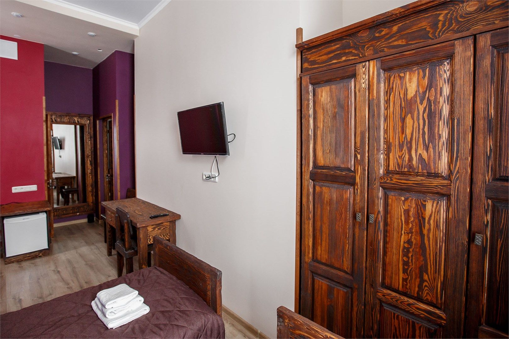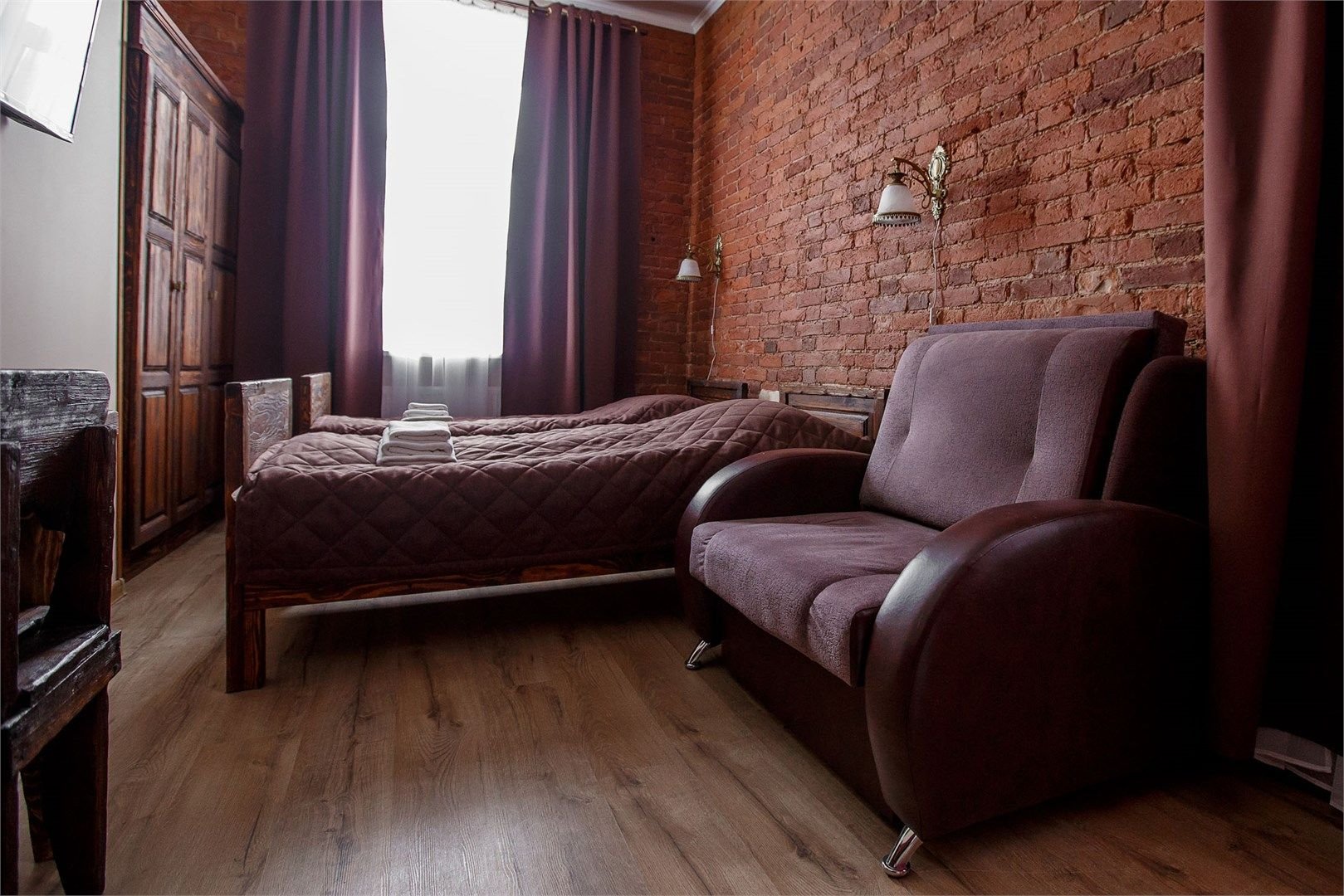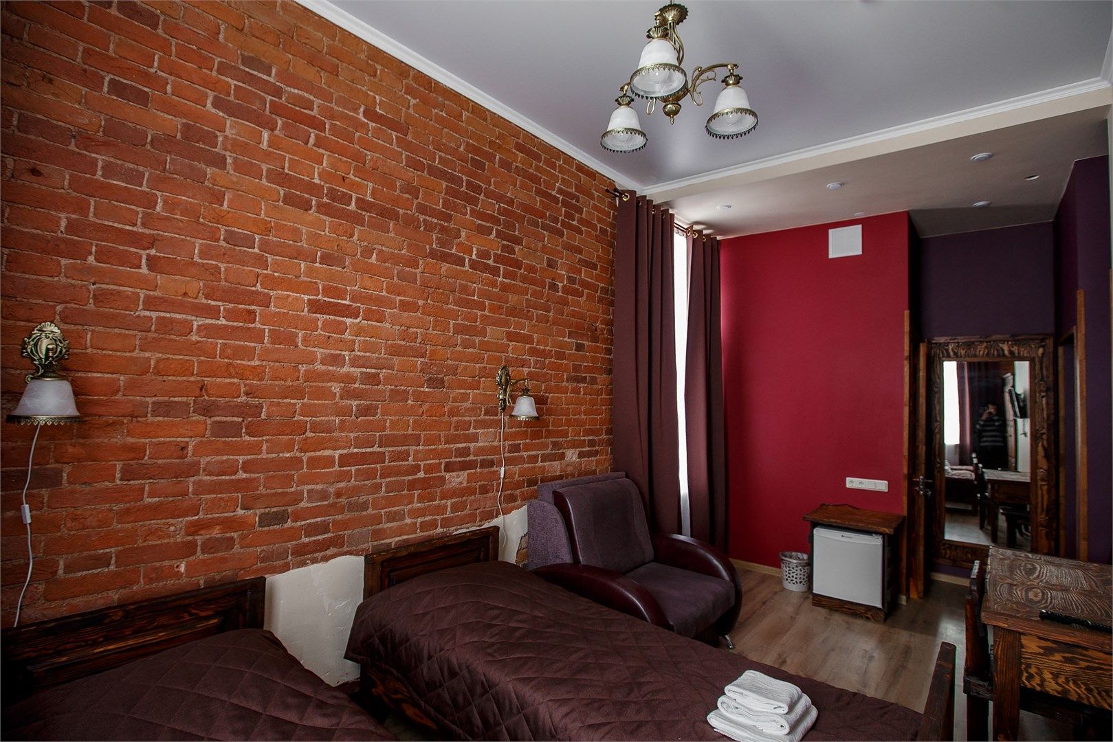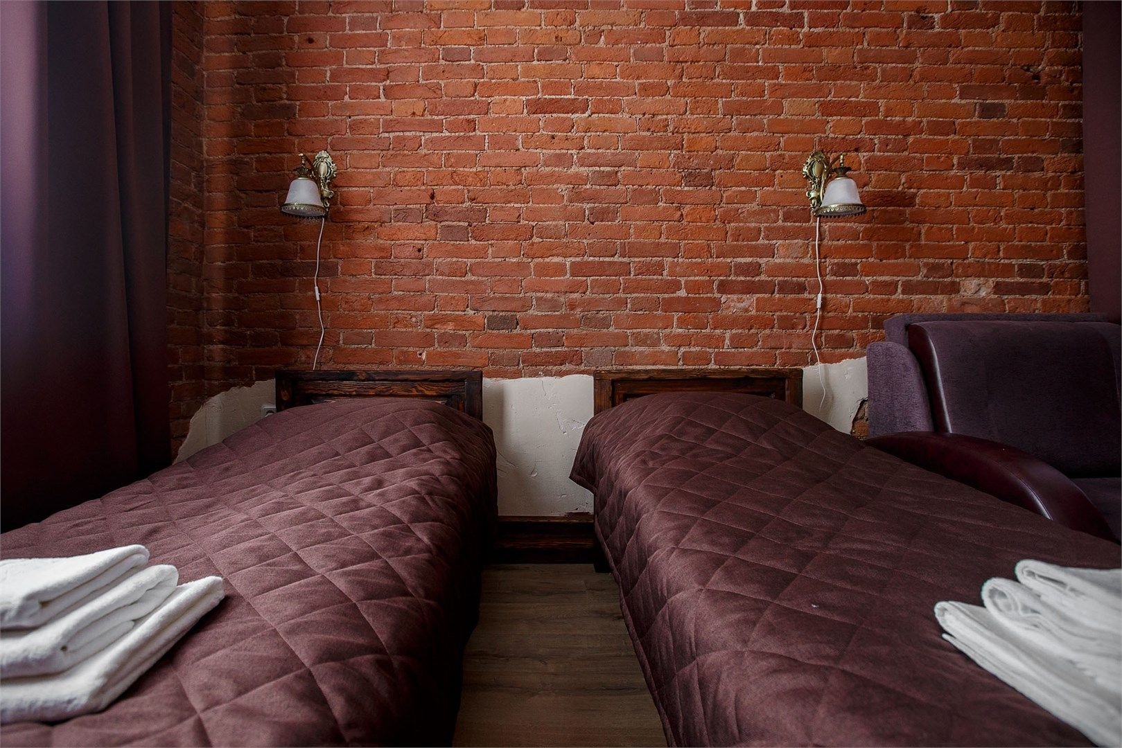 В номере две односпальные кровати, шкаф, душ, туалет, телевизор, холодильник, туалетные принадлежности, Если понадобится, то предоставим утюг и гладильную доску.