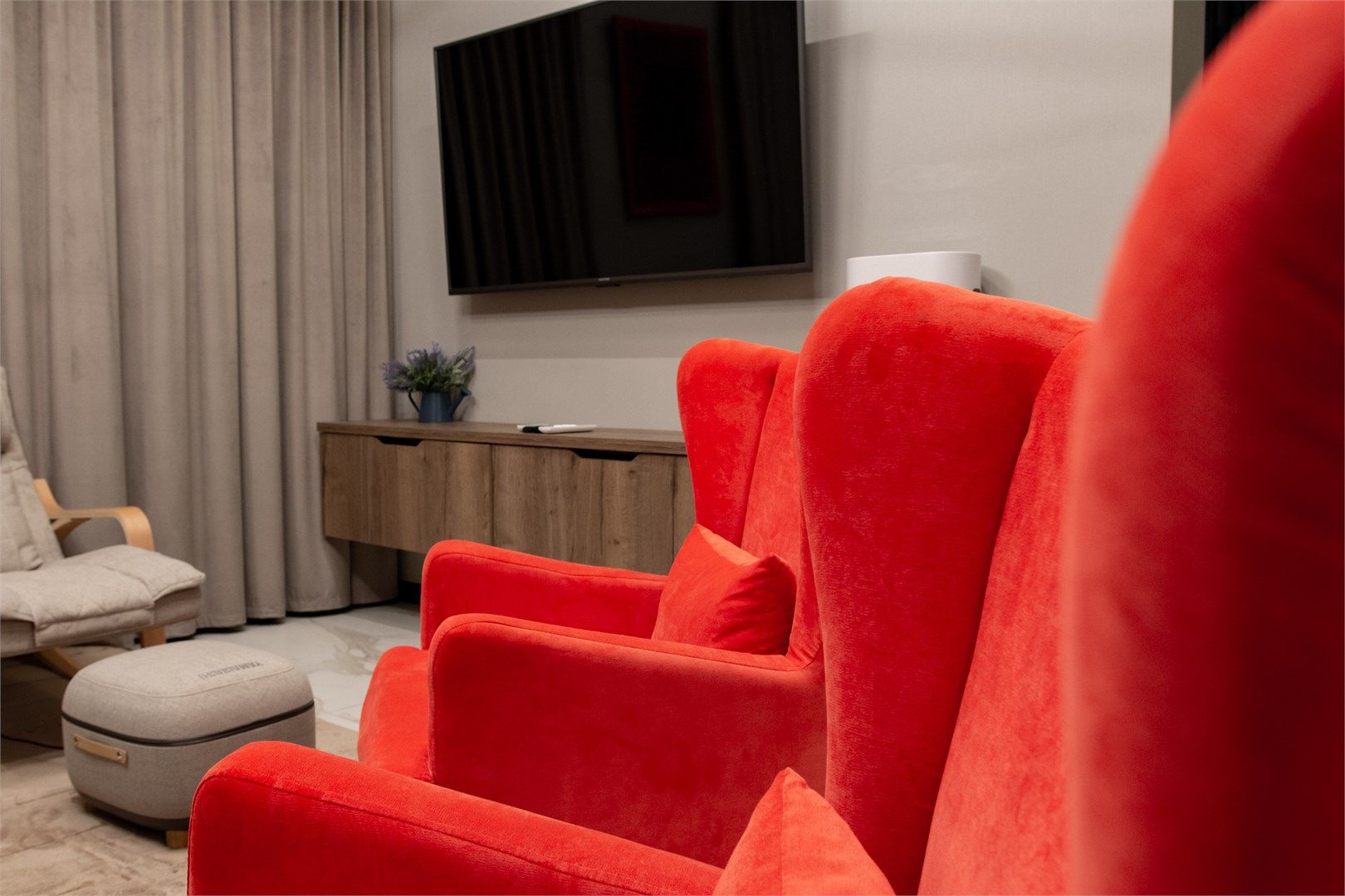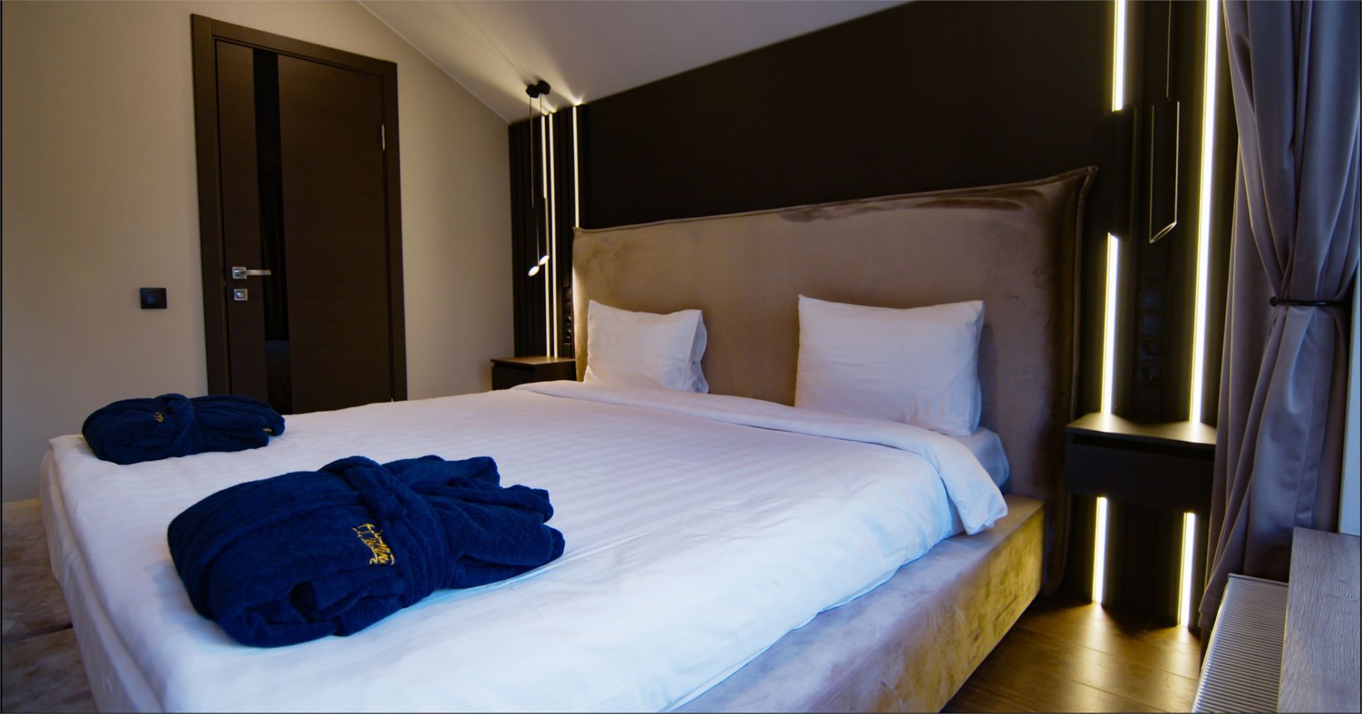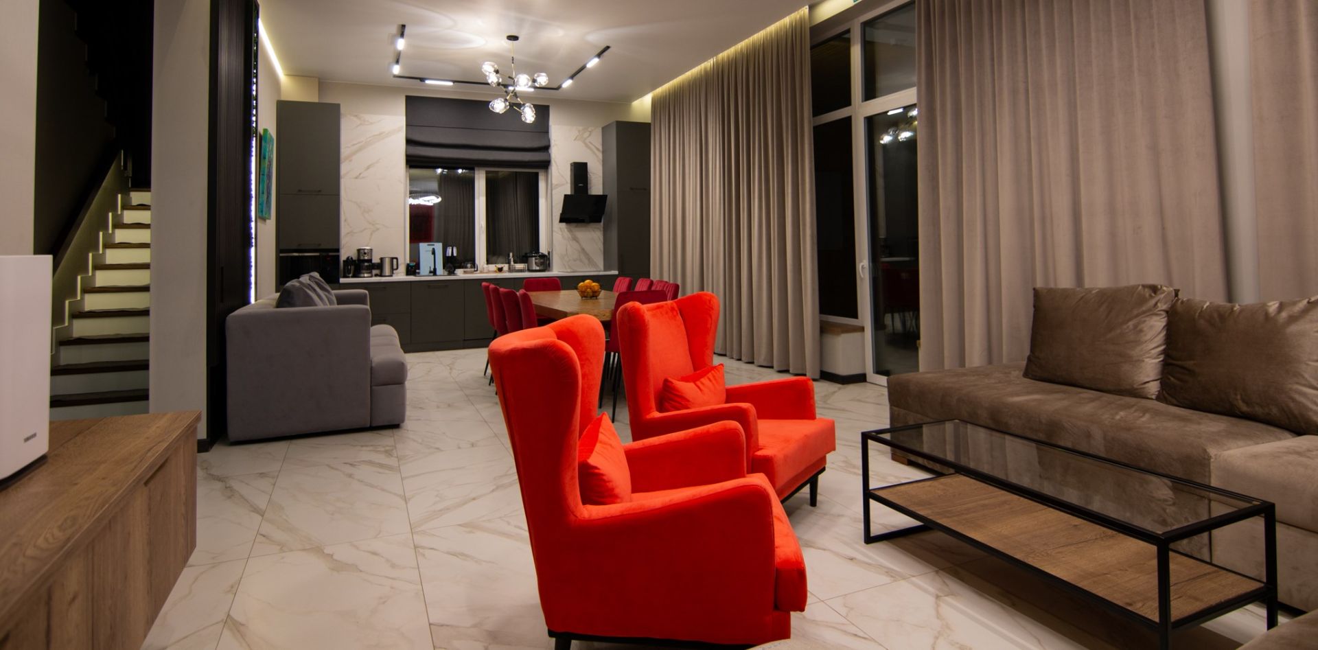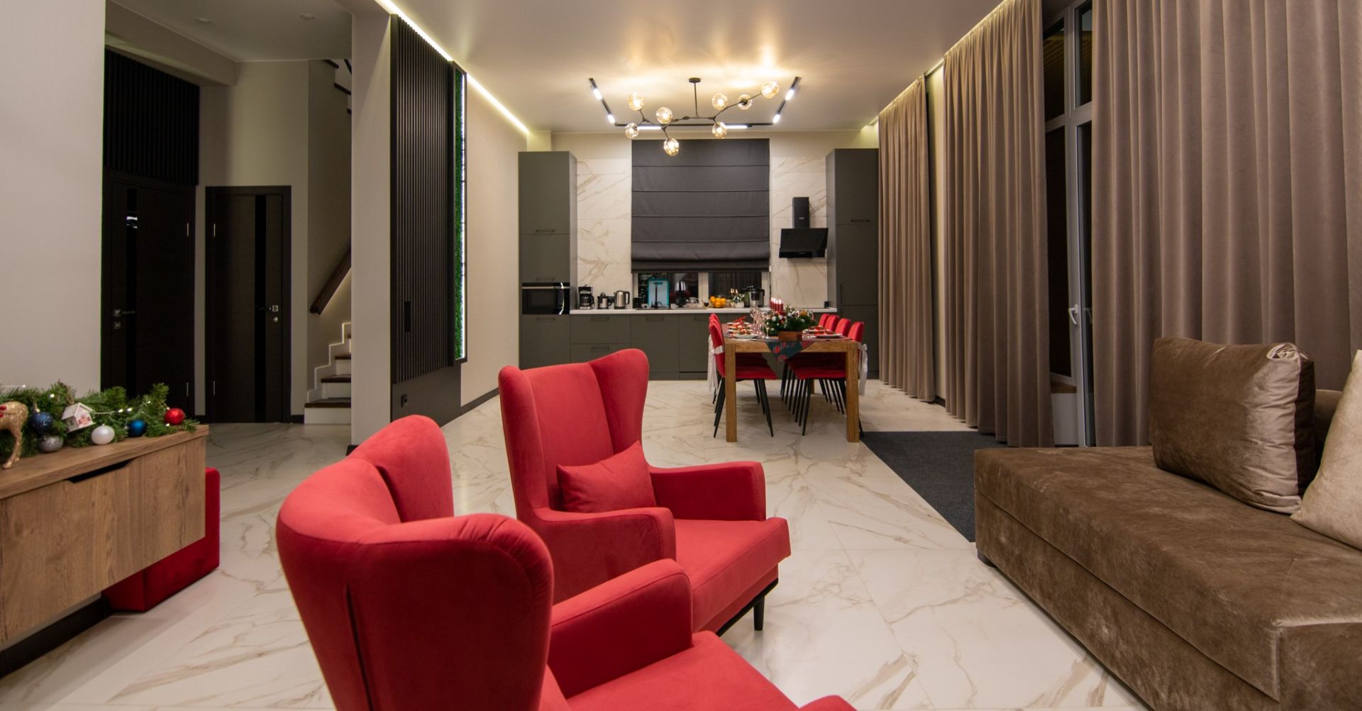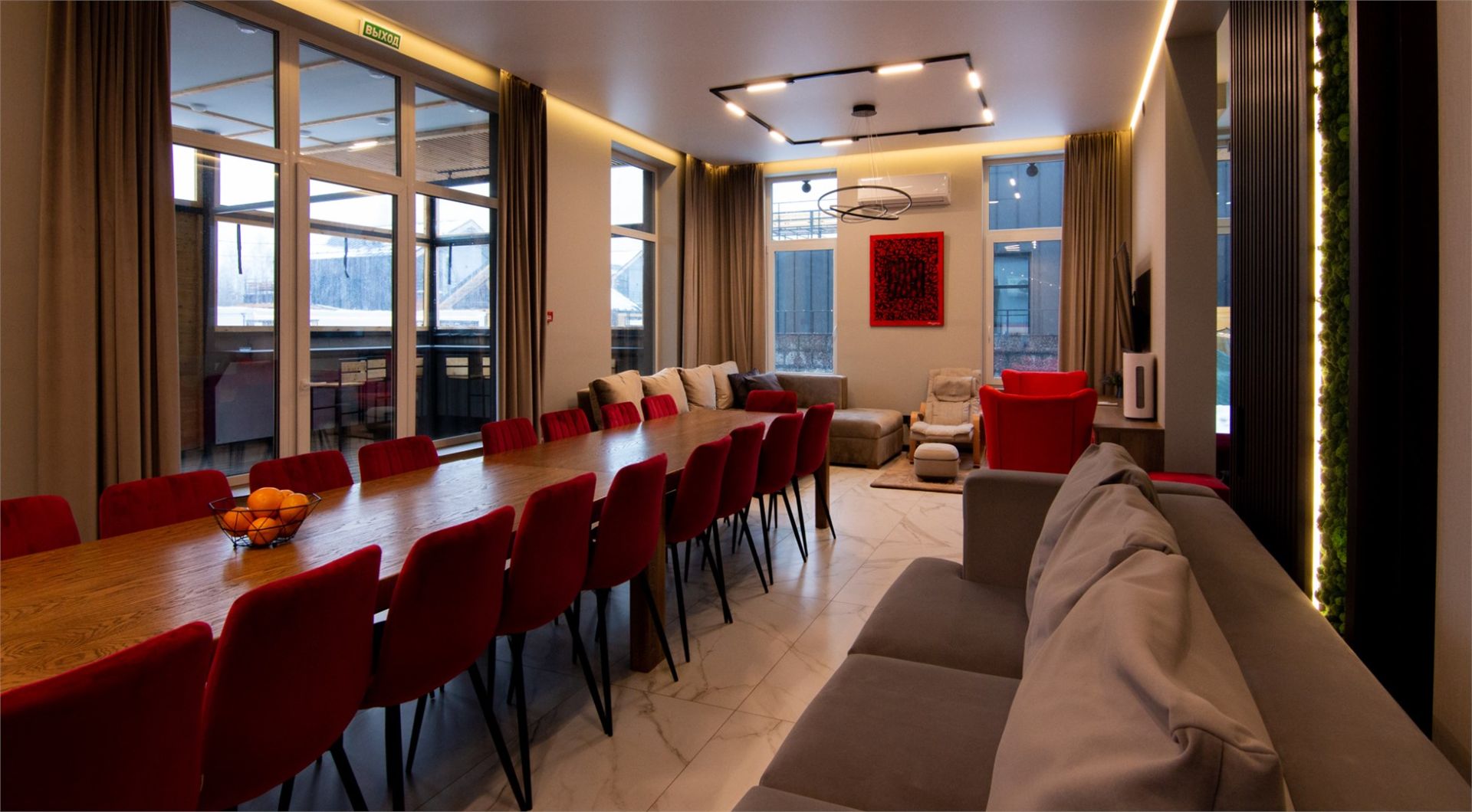 Площадь резиденции 280 кв.м.; ✓ 5 уютных спален с гардеробными, 1 просторная мастер-спальня с собственным санузлом, 3 санузла, комната для хранения багажа; ✓Собственная сауна, кальянная зона, домашний кинотеатр, бар и зона для завтраков на улице; ✓Зона для BBQ, мягкая костровая зона, купель на 8 человек.