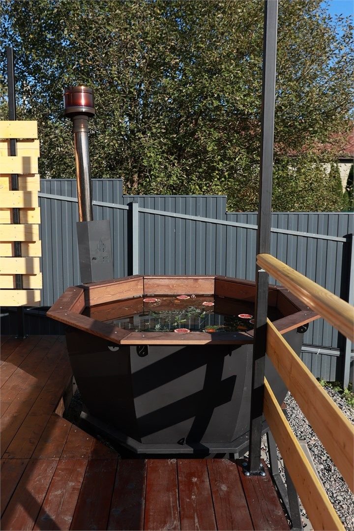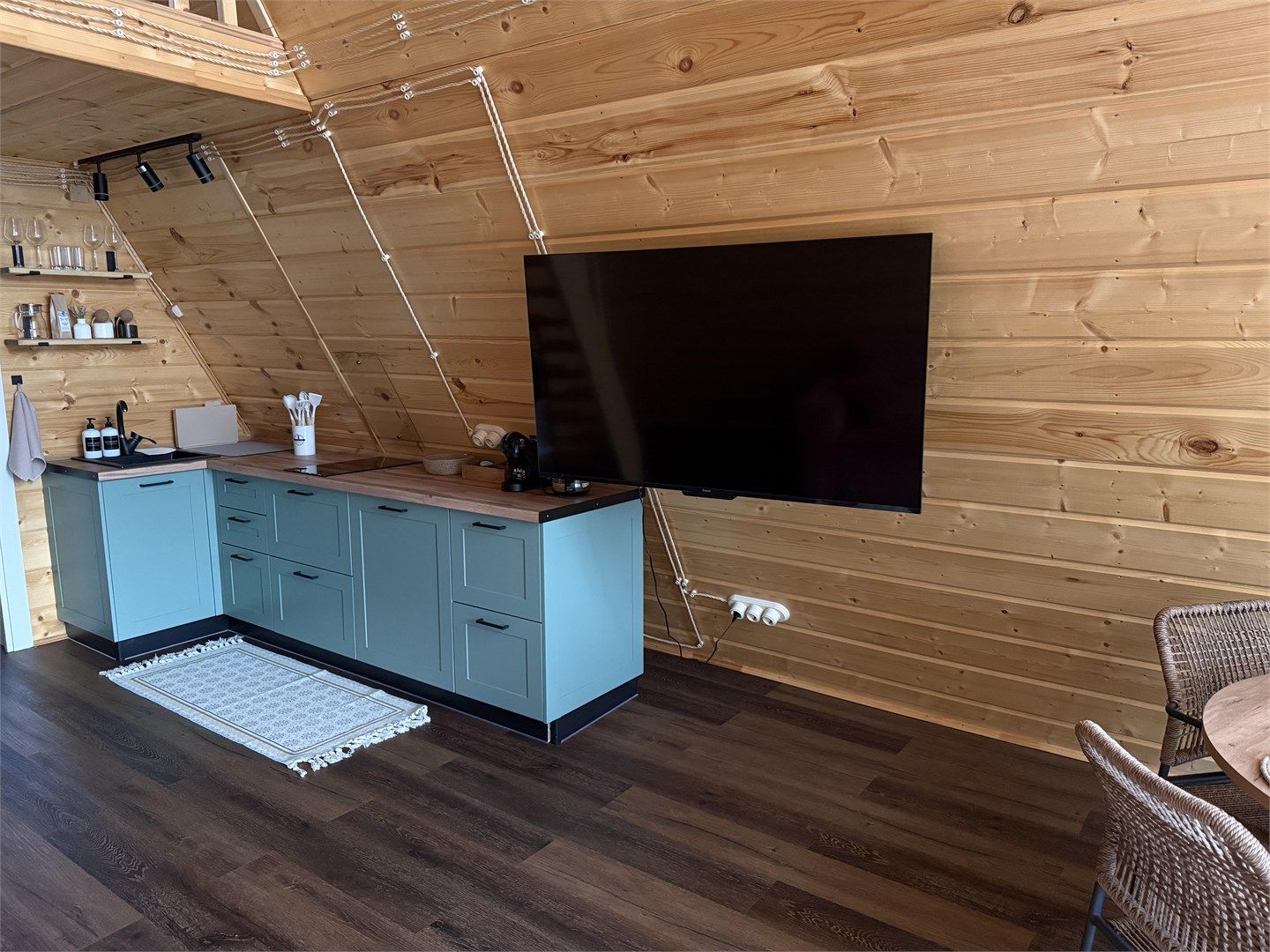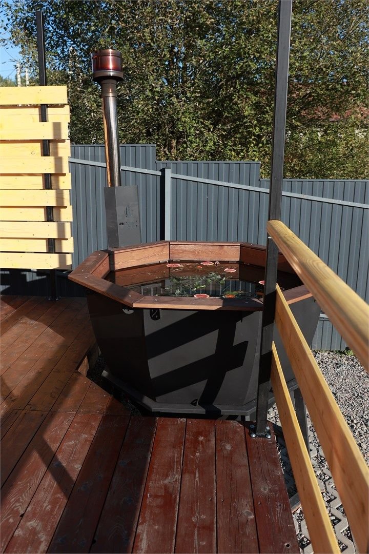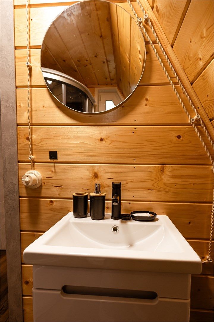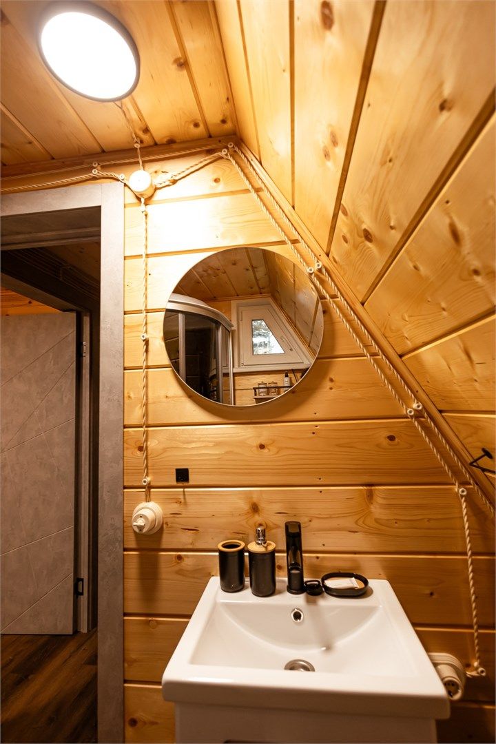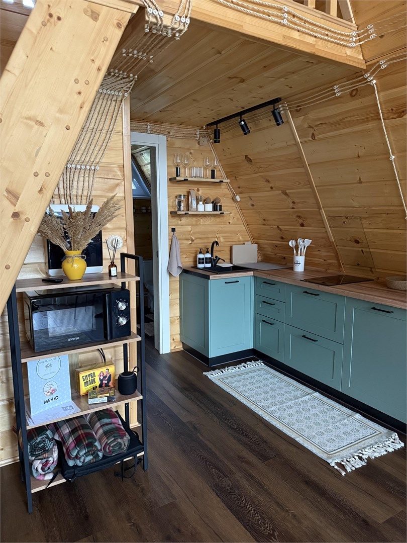 River&House — это уютный A-frame домик из дерева, расположенный в 50 метрах от Москвы-реки и собственного небольшого пляжа. Дом подходит для комфортного отдыха в любое время года: рядом природа, лес, тропы для прогулок, рыбалка и полностью закрытая тихая территория. В домике продуманная планировка: на втором этаже расположены две отдельные спальни с двуспальными кроватями и мягким тёплым освещением. На первом этаже находятся гостиная зона с большим диваном и Smart TV, обеденный стол, а также полностью оборудованная кухня с варочной поверхностью, холодильником, микроволновой печью, кофемашиной, посудой и всем необходимым для приготовления пищи. В санузле установлена душевая кабина, раковина, унитаз, есть наборы полотенец и гигиенические принадлежности. В доме работает отопление, Wi-Fi, установлены москитные сетки. Особенность домика — просторная деревянная терраса. На ней расположена круговая барбекю-станция с удобным пространством для приготовления пищи и отдыха, а также дровяная купель-офуро, установленная прямо на террасе и доступная для гостей по предварительному прогреву. По запросу можно заказать классическую дровяную баню с парной. Территория огорожена, оборудована камерами наблюдения и наружным освещением. Подъезд удобный, зимой дорогу чистят. До Москвы — 70 км. River&House — это комфортный загородный отдых в современном A-frame домике рядом с рекой и природой.