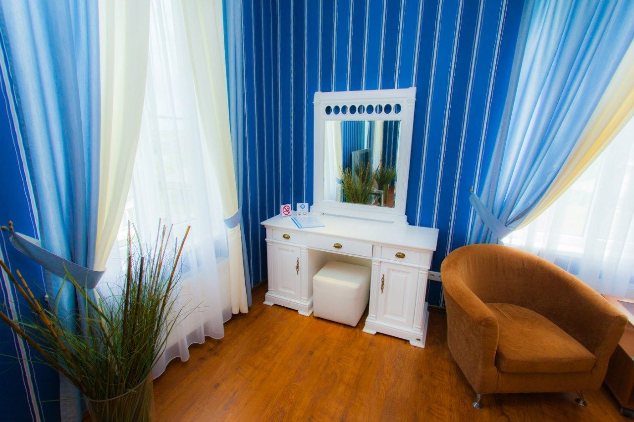 Номера оформлены в классическом стиле, оснащены телевизорами со спутниковым телевидением, чайником и холодильником.