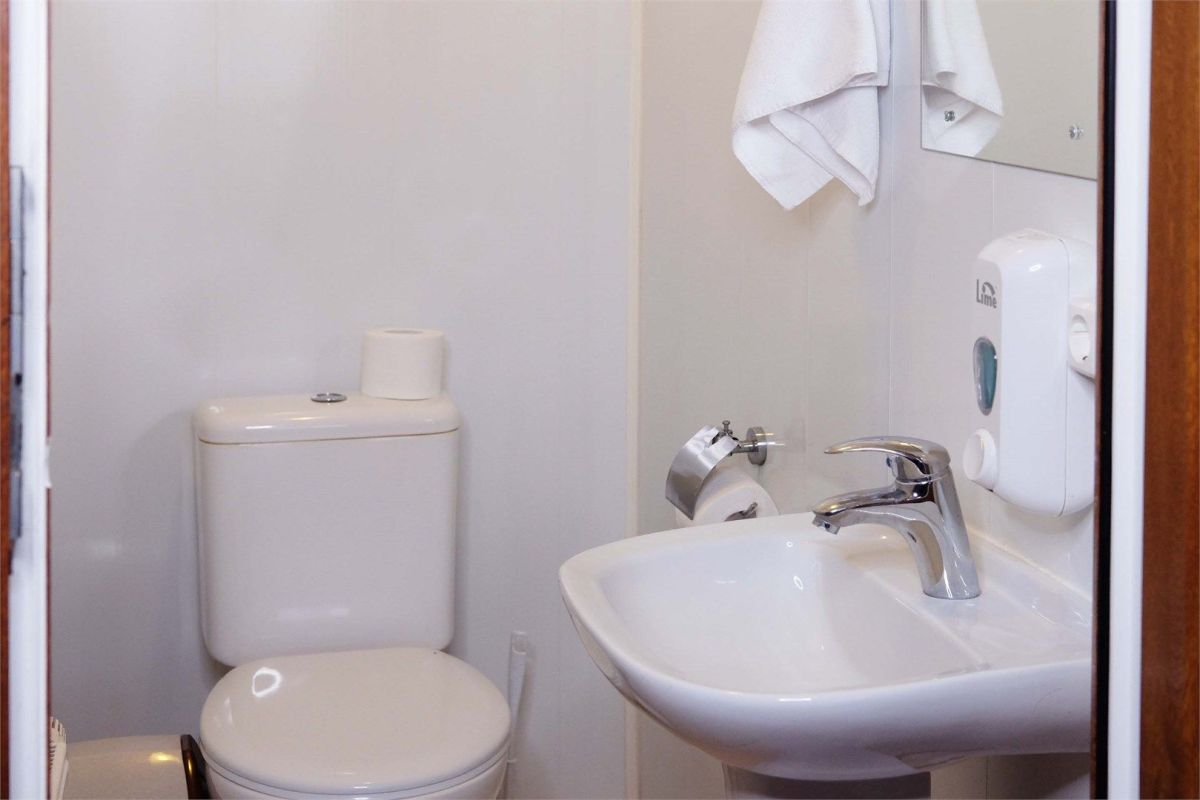 1 Санузел и отдельная душевая на первом этаже. Халаты, полотенца, тапочки, фен, косметические принадлежности: одноразовые мыло, шампунь, гель для душа, бальзам, расческа, зубной набор, бритвенный набор, шапочка для душа.