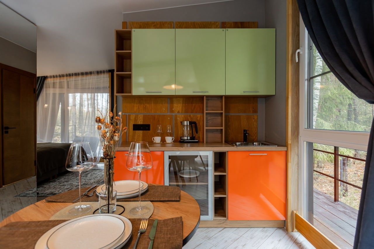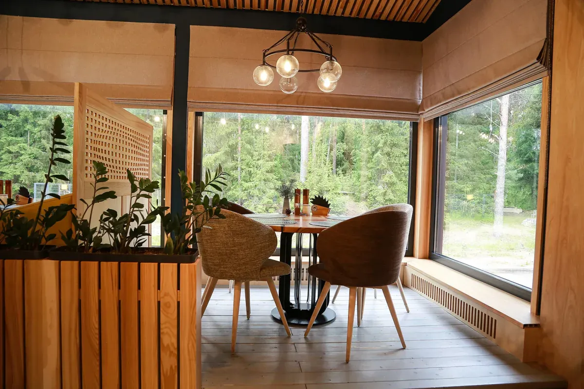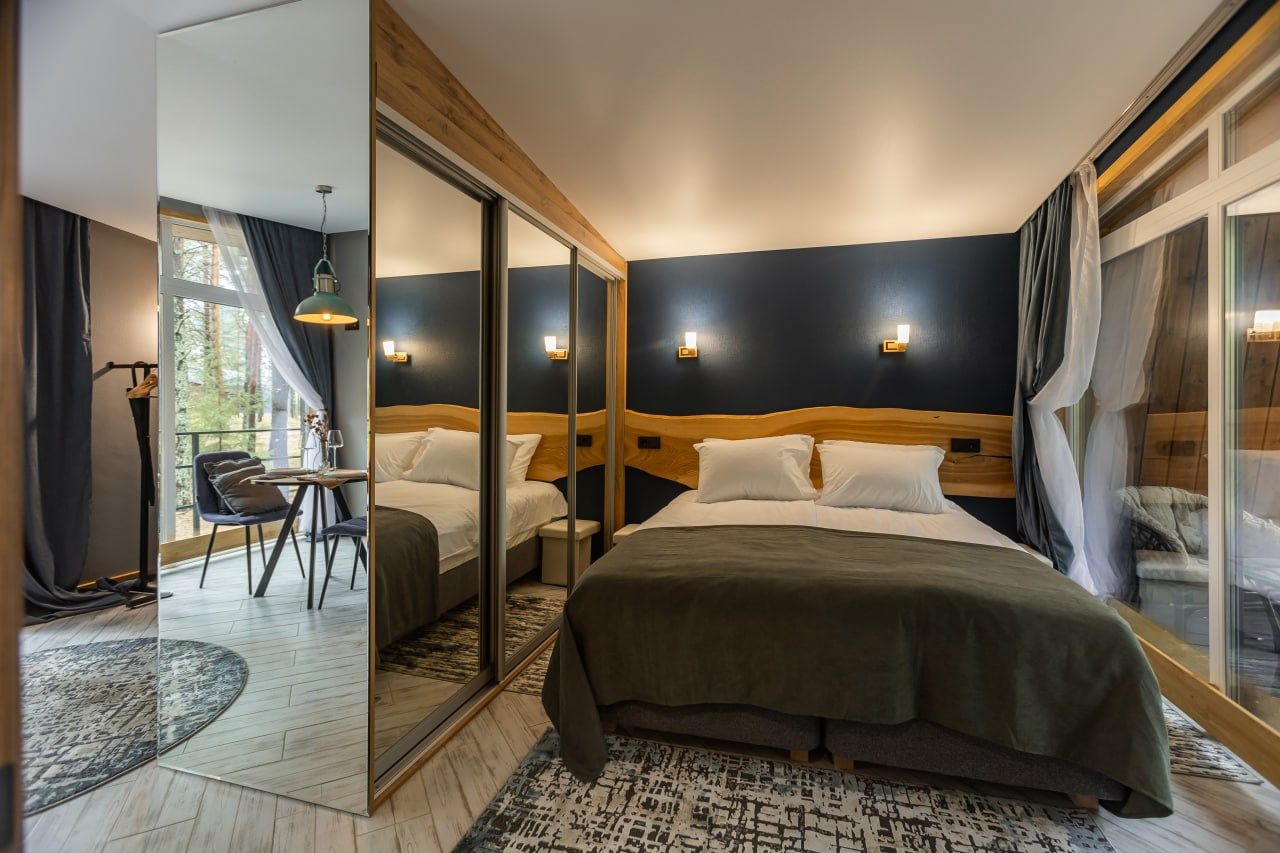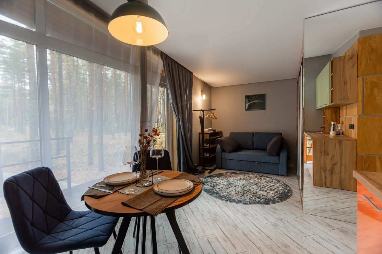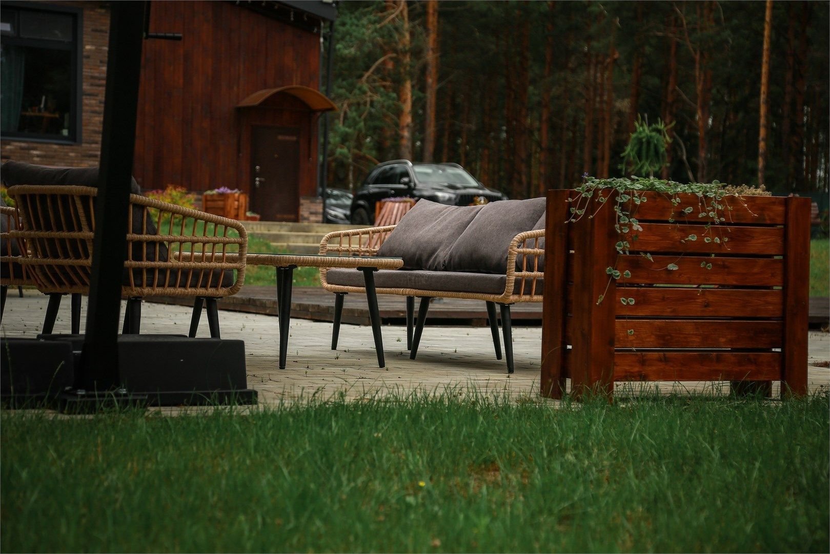 Домик-шале в сосновом лесу в стиле лофт с большой террасой и панорамными окнами на двоих с дополнительным местом, создан для уединения и отдыха на природе. Домик укомплектован всем необходимым, питание входит в тариф и осуществляется в ресторане "Вино и Сосны"....