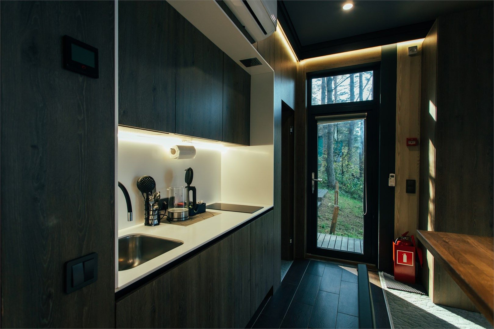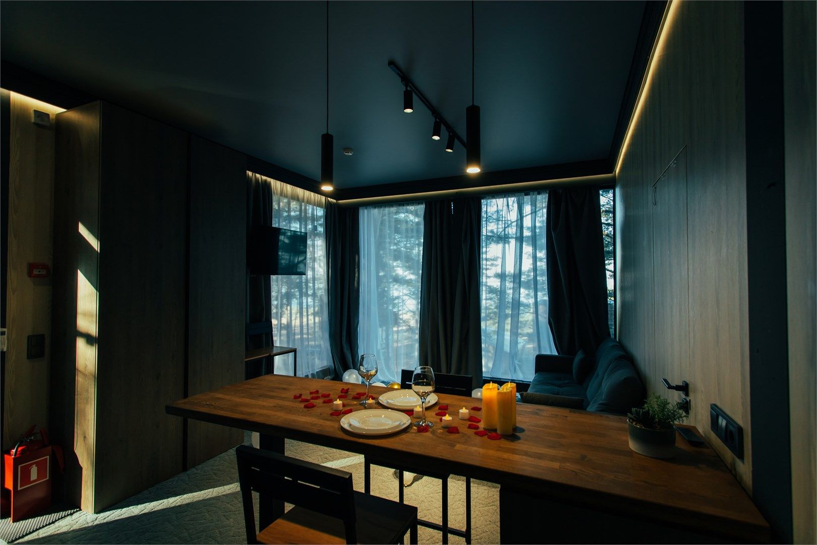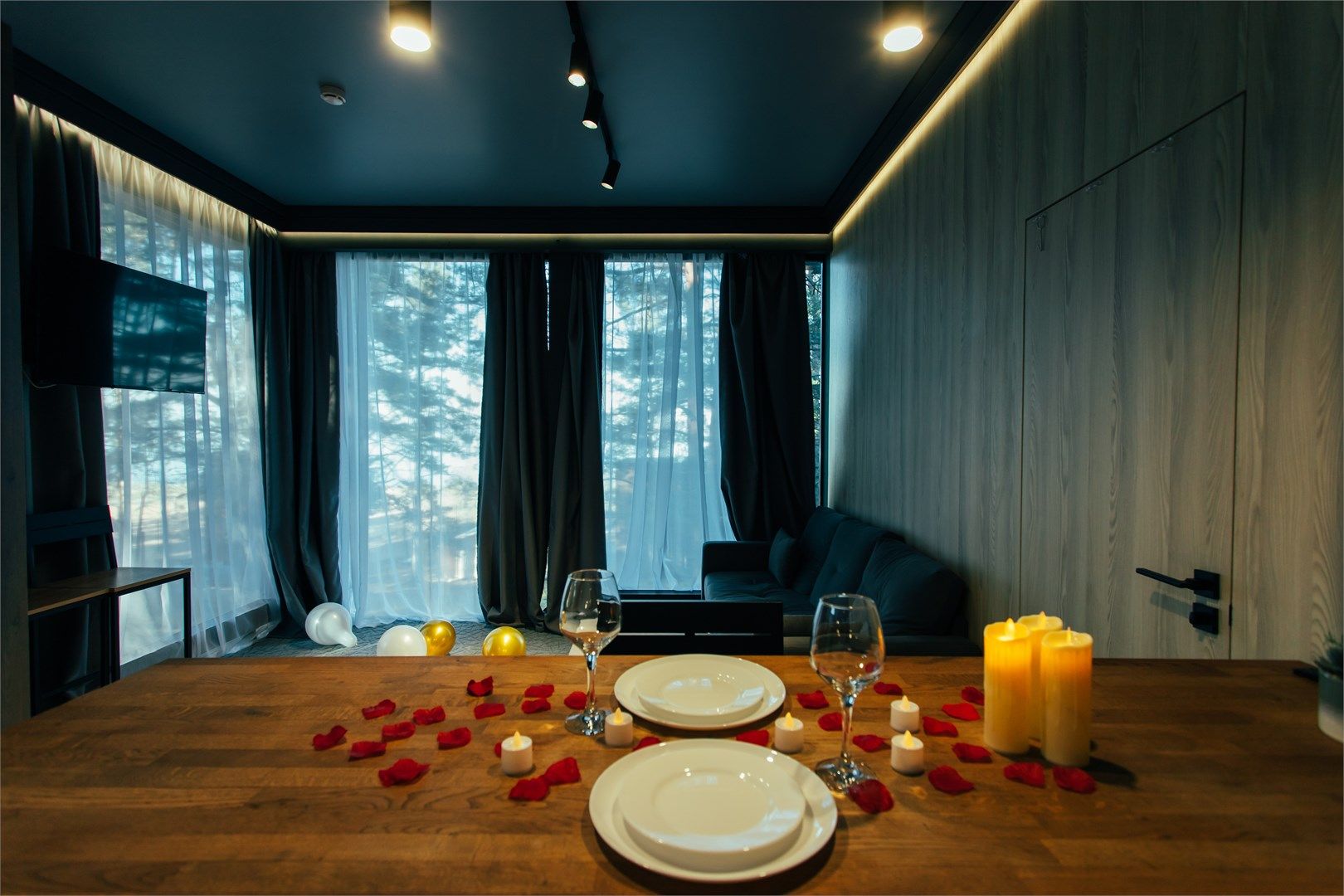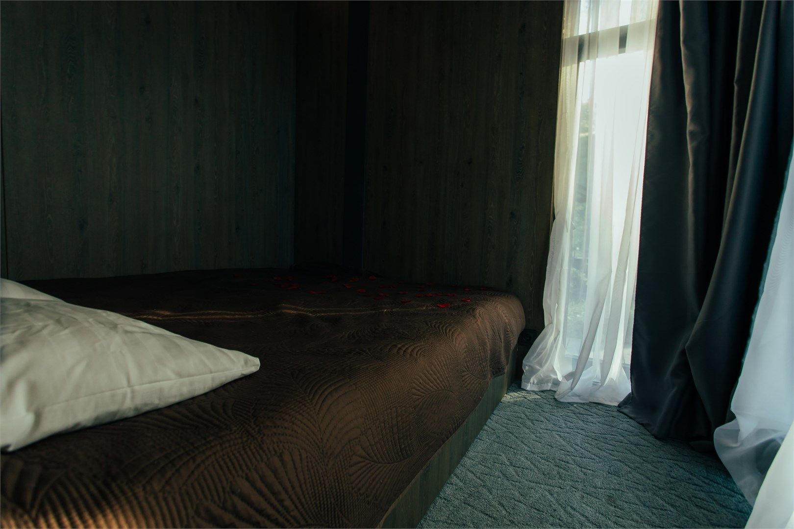 Из каждой комнаты есть выход на личную мини-террасу с купелью с подогревом (входит в стоимость), где можно насладиться уединением и гармонией с природой.