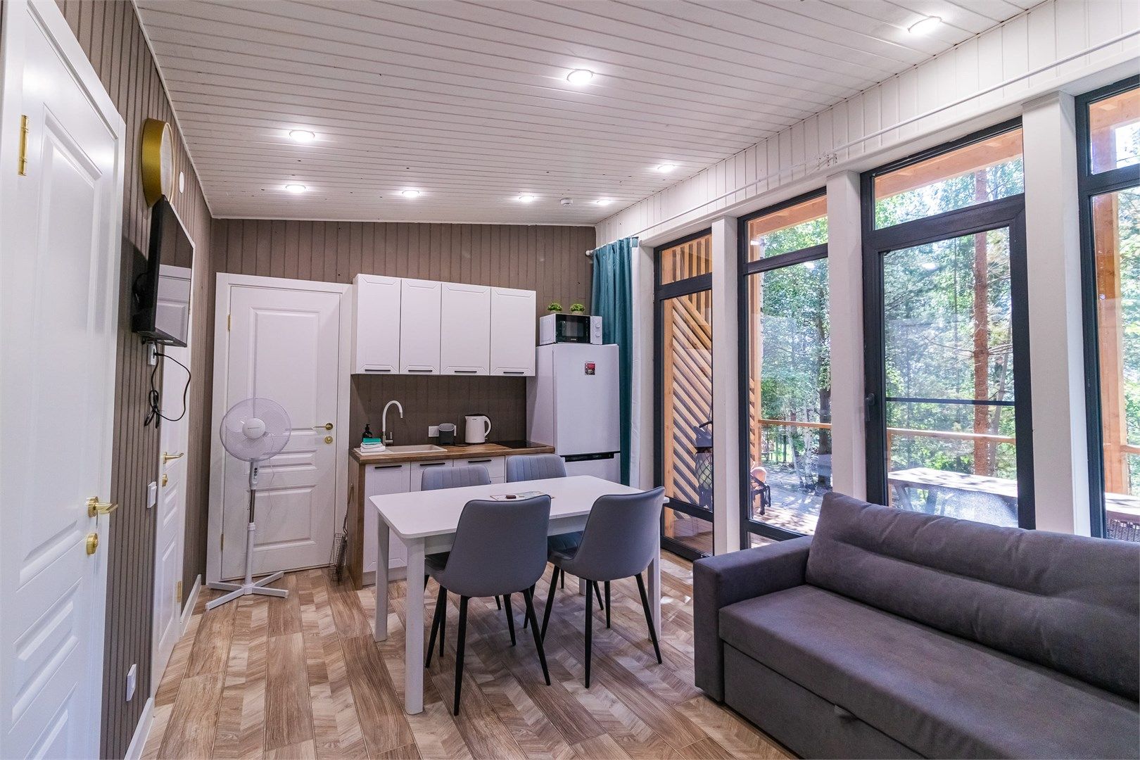 Номерной фонд состоит из 5 домов различных категорий: «Афрейм» и «Барнхаус». Каждый дом оснащён всем необходимым для комфортного проживания: