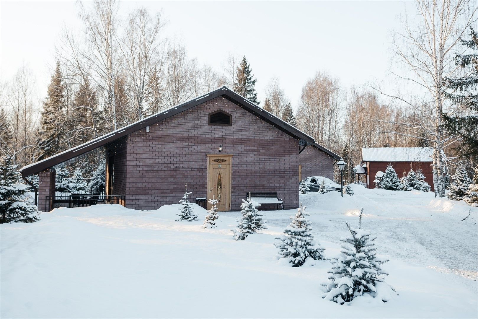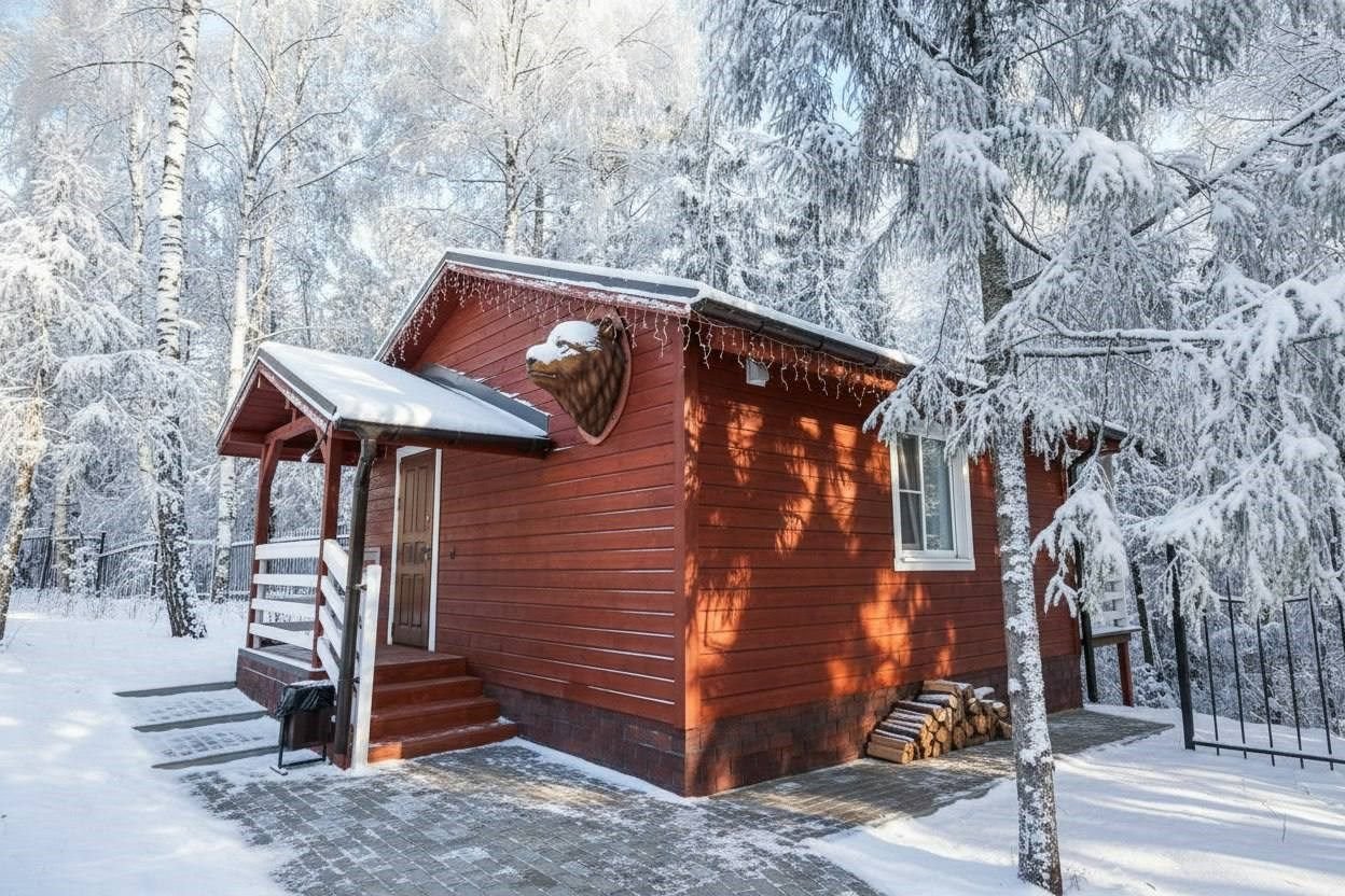 Деревянный мишкин дом площадью 34 м.кв., с аутентичным панно, привлекает своим уникальным стилем и натуральной красотой. Гармонично вписавшийся в природный ландшафт лесо-парковой части территории отеля, домик располагает насладиться тишиной и спокойствием, великолепным видом на лес с просторной открытой террасы, погрузиться в атмосферу уюта и единения с природой.