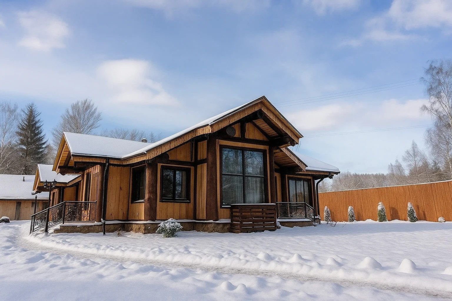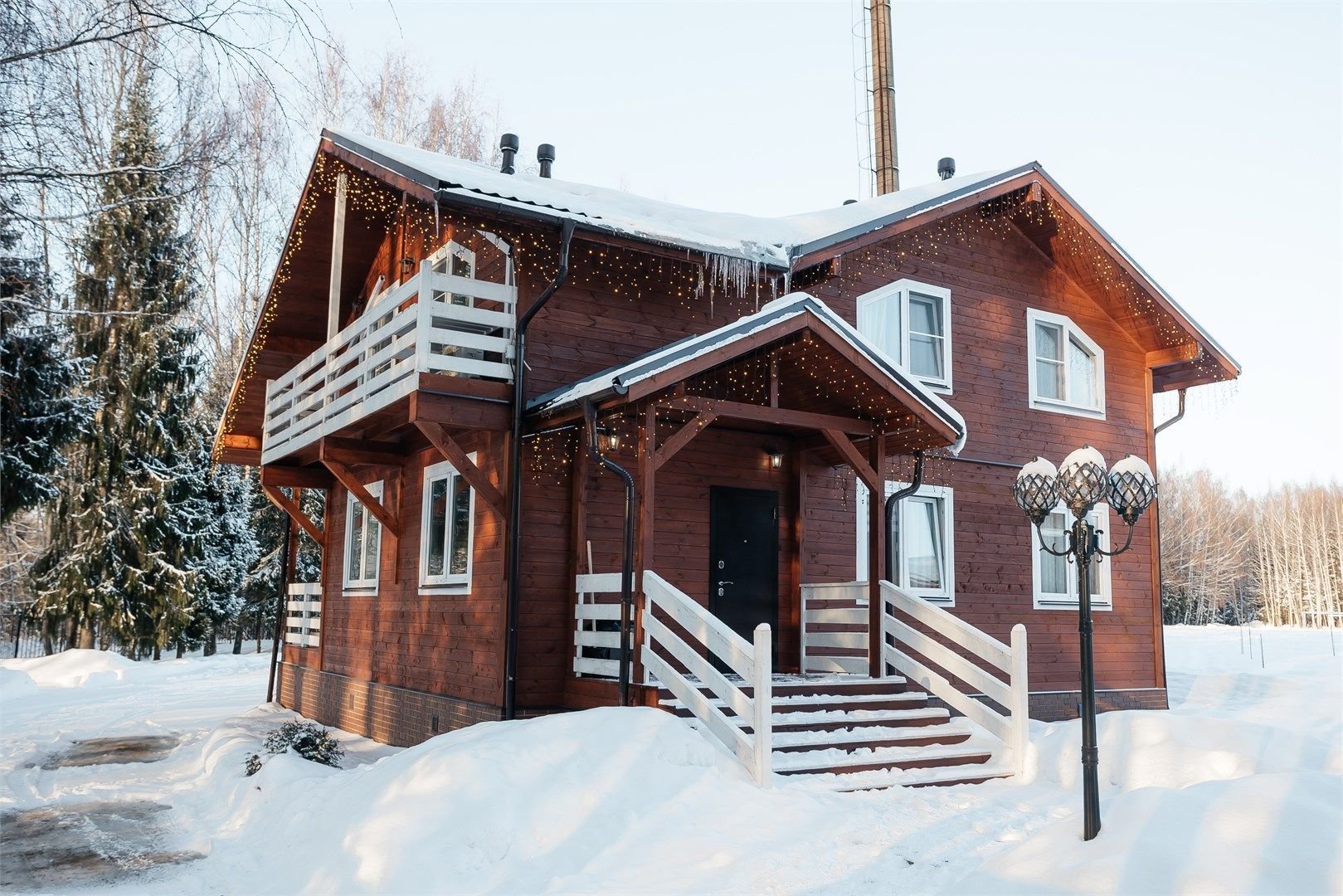 Роскошный двухэтажный дом в охотничьем стиле площадью 108,4 кв. метра для большой семьи или компании из 6 человек. Дизайн с применением натуральных материалов в тёплой цветовой гамме дарит ощущение уюта и комфорта. Экологическая чистота деревянного дома обеспечивает уникальный и здоровый микроклимат.