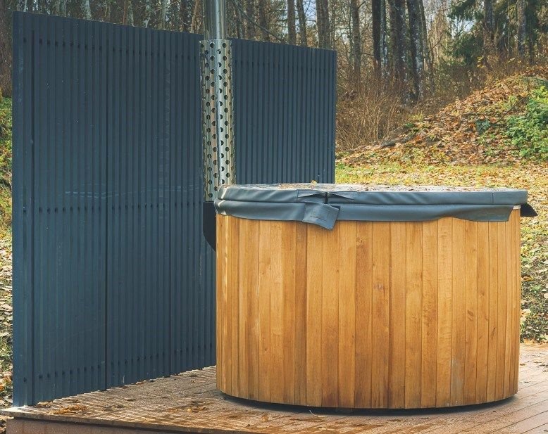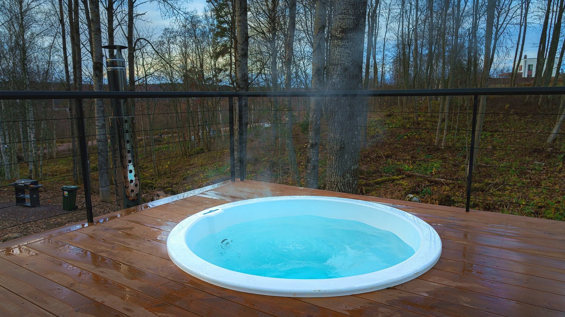 • Собственная всепогодная купель (располагается на террасе или во дворе, разогрев за доплату);