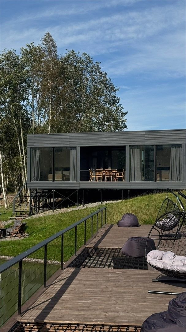 Одноэтажная вилла Делюкс 2+2 с панорамными окнами, террасой, собственной всепогодной купелью, мангалом и собственной костровой зоной.