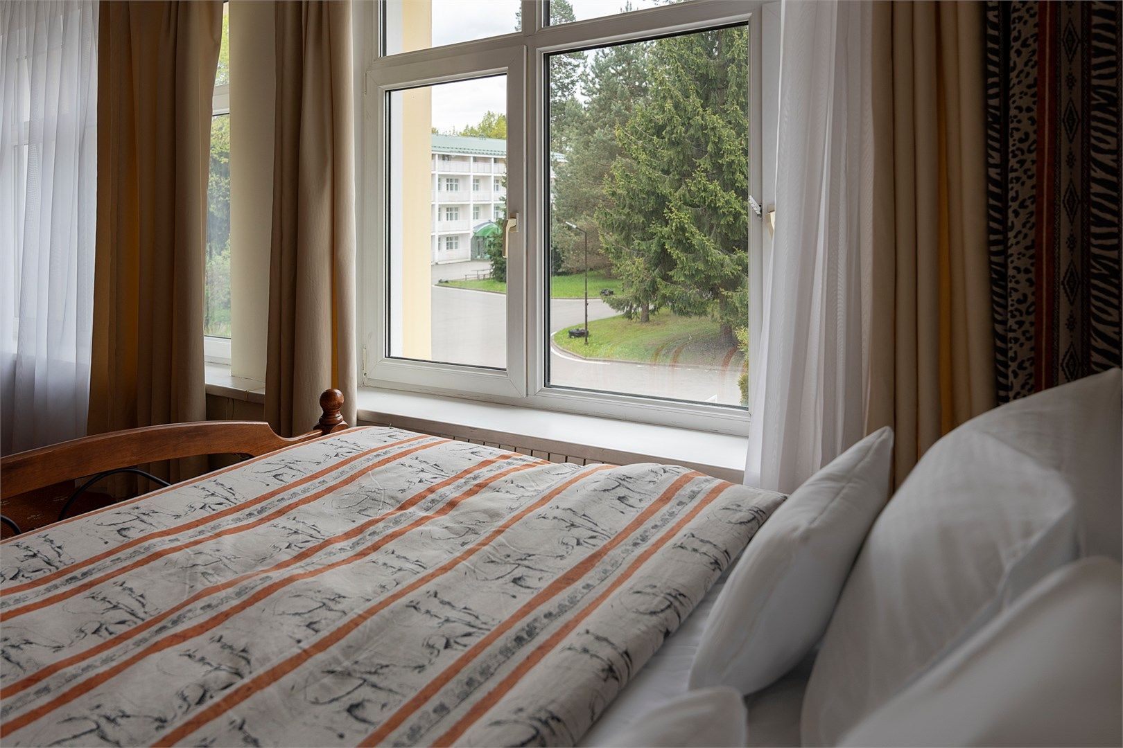 Количество комнат в номере - 1 Количество основных мест - 2 Количество дополнительных мест - 2 Площадь номера - 29-42 кв. м Балкон - есть/нет В номере: две полуторные кровати, двуспальный диван, журнальный и письменные столы, шкаф-купе, прикроватные тумбочки, полка для багажа и обуви, телевизор, мини-холодильник, телефон, кондиционер. В ванной комнате: унитаз, биде, душевая кабина (1,3 корпус), ...