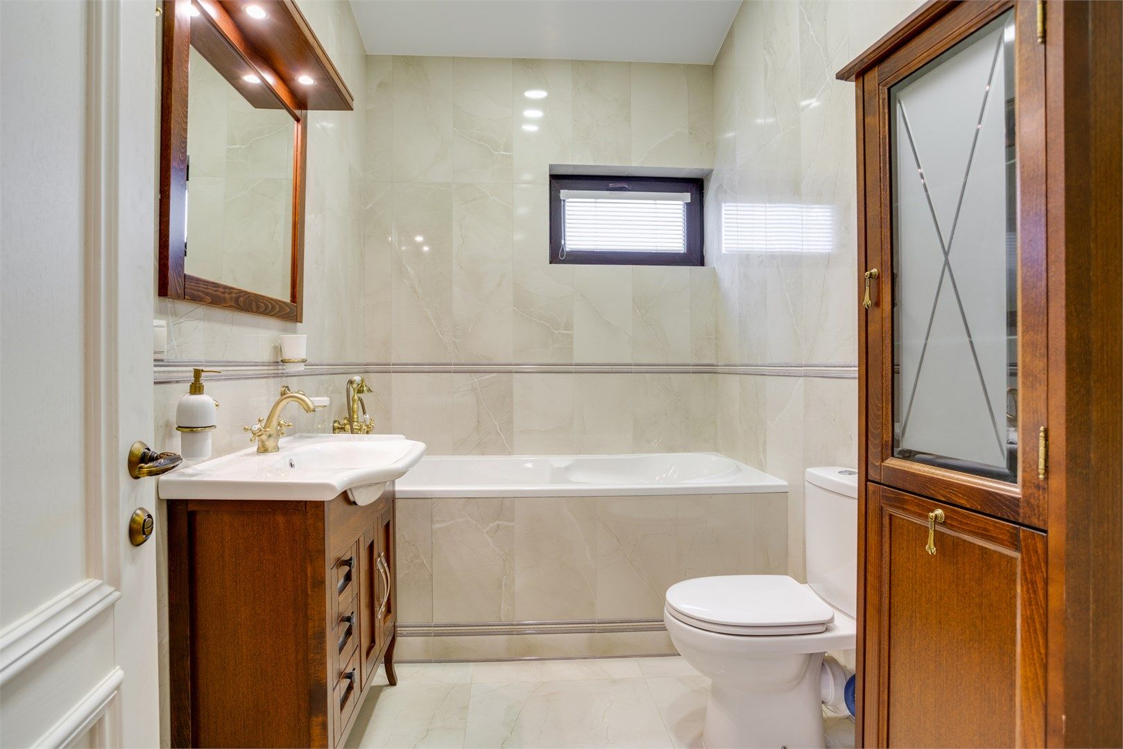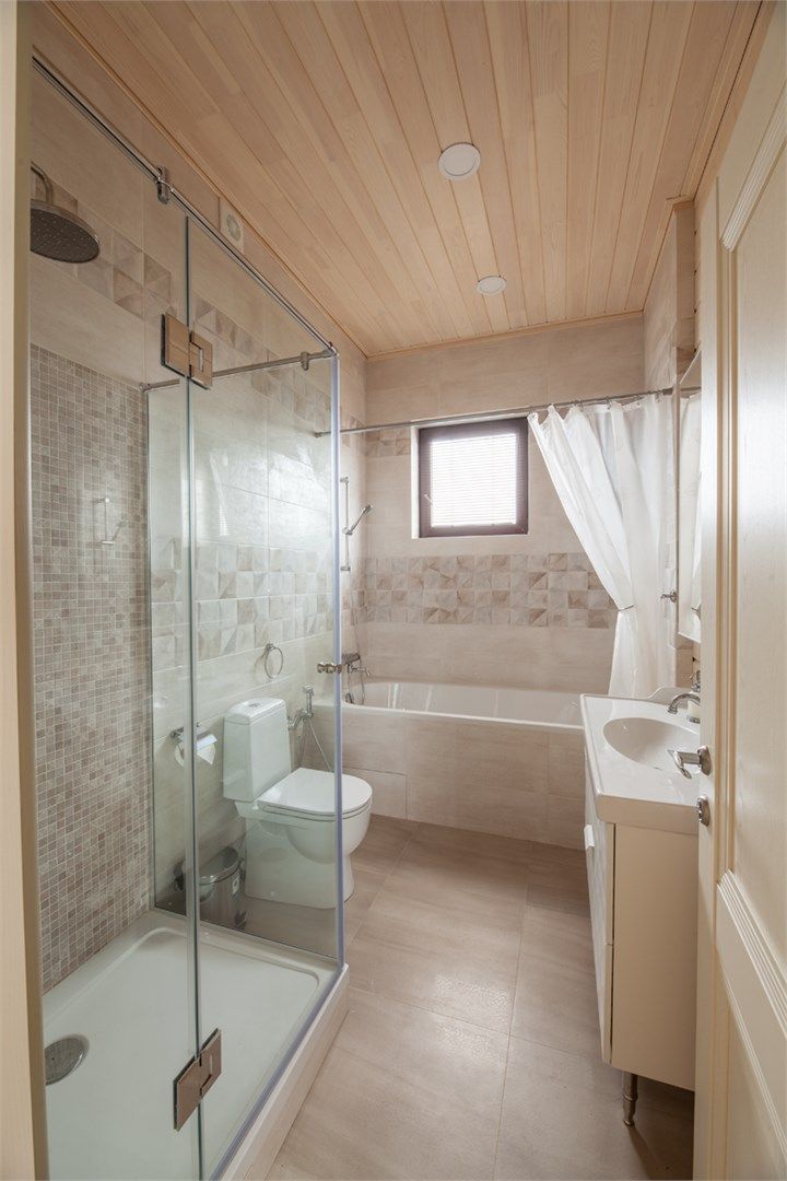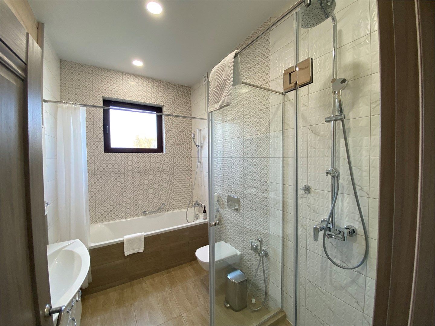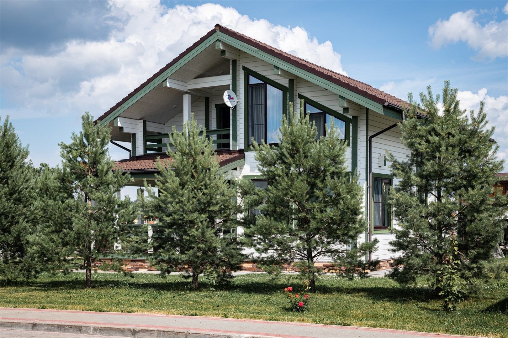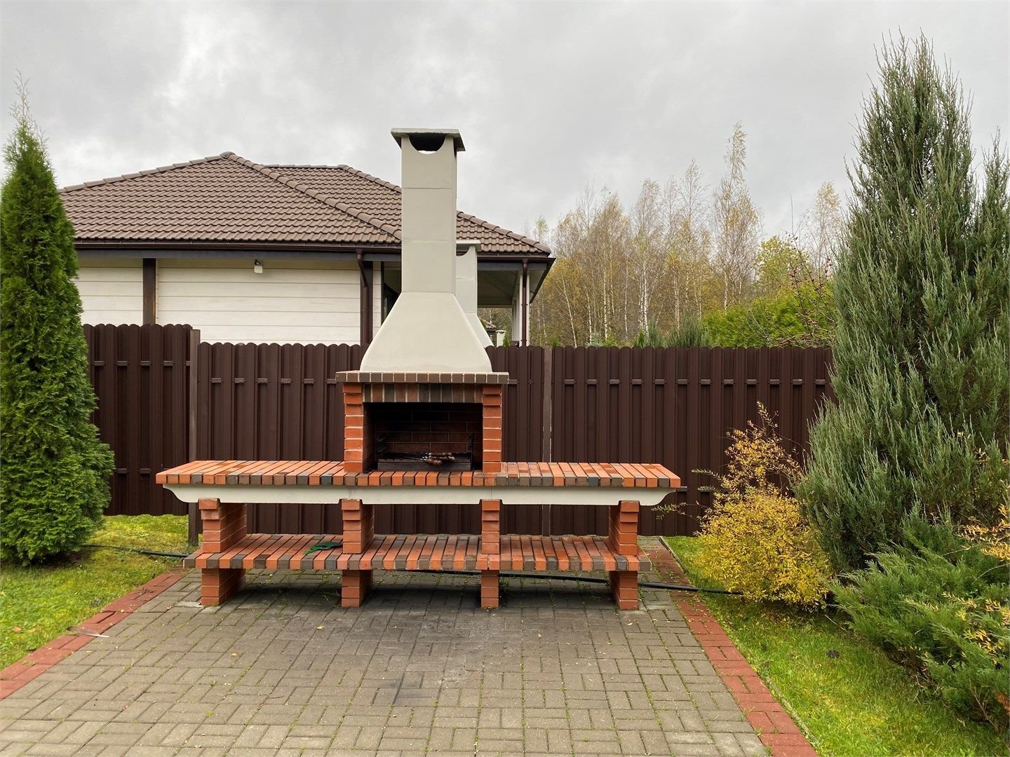 Коттедж площадью 160 кв.м с кондиционером: 3 спальни (одна из которых мастер-спальня с собственной ванной комнатой), кухня-столовая, гостиная с электрическим камином, прихожая со шкафами, два санузла, большая терраса с садовой мебелью.