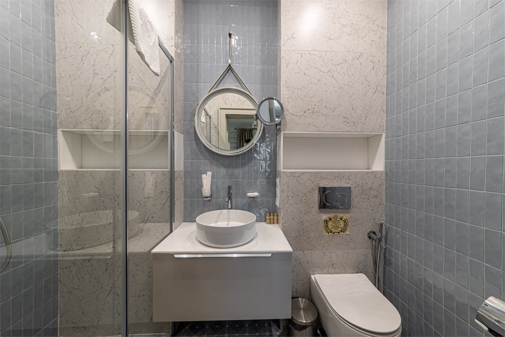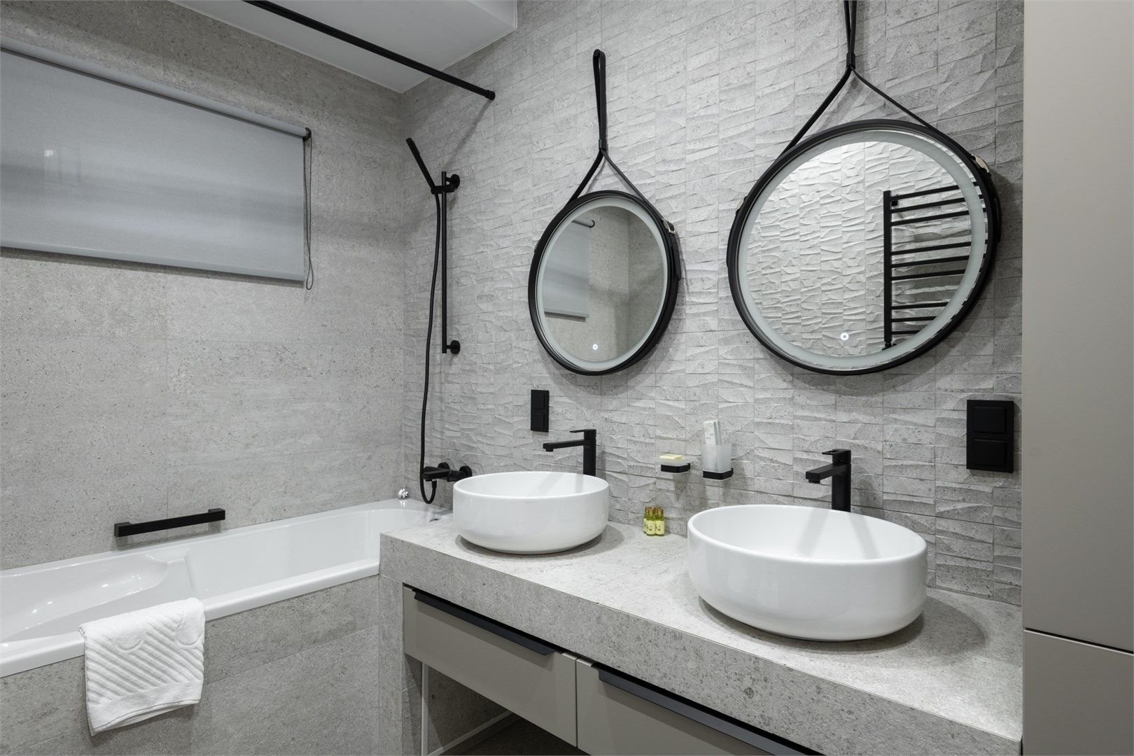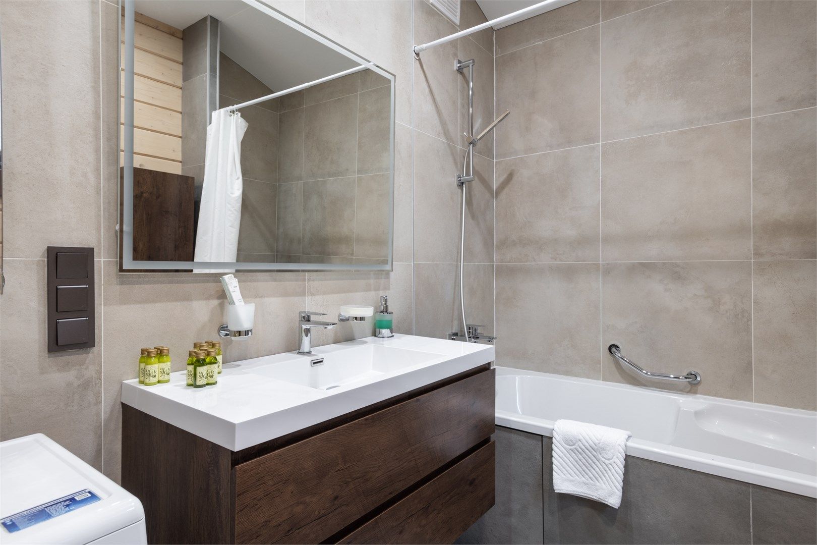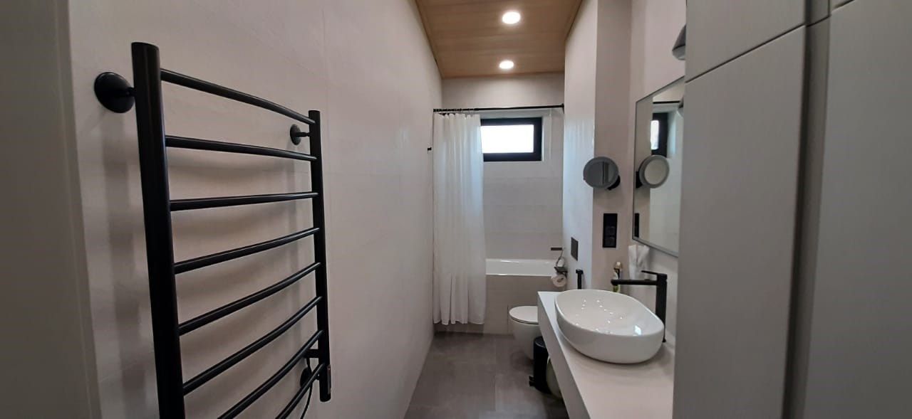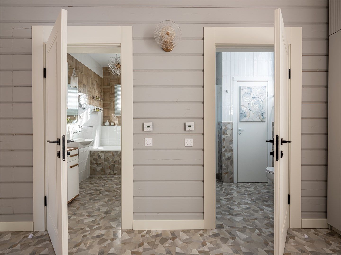 Коттедж площадью 94 м2 с мебелью в светлых тонах (2 спальни с кроватями Queen size, кухня, гостиная, прихожая, холл, санузел с душевой кабиной, туалетная комната, просторная терраса с садовой мебелью).