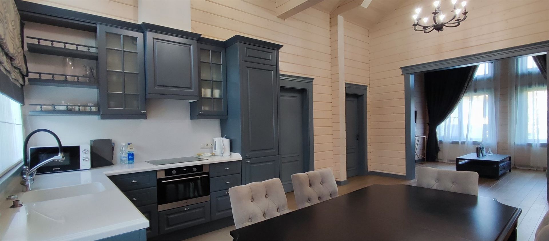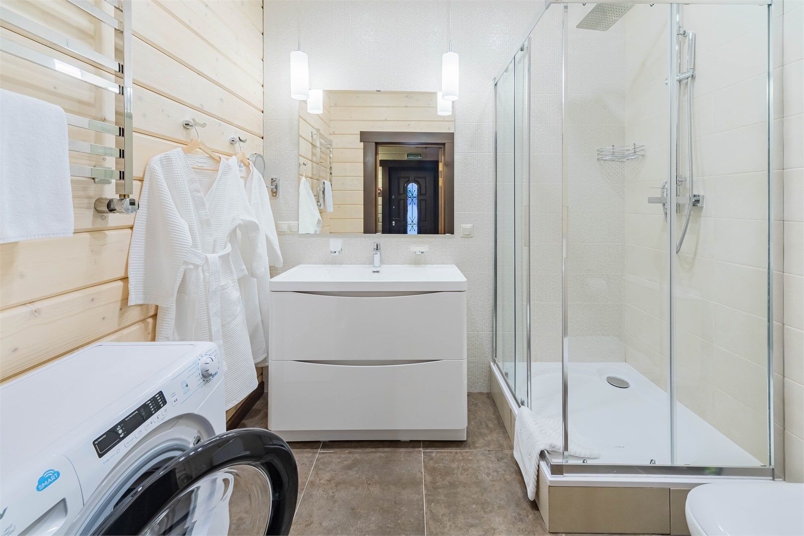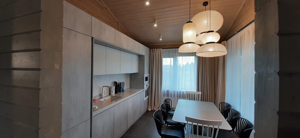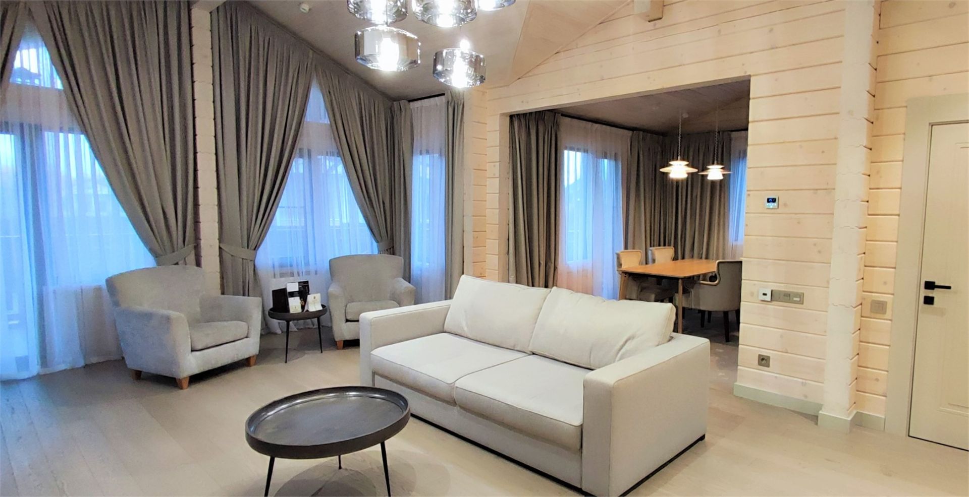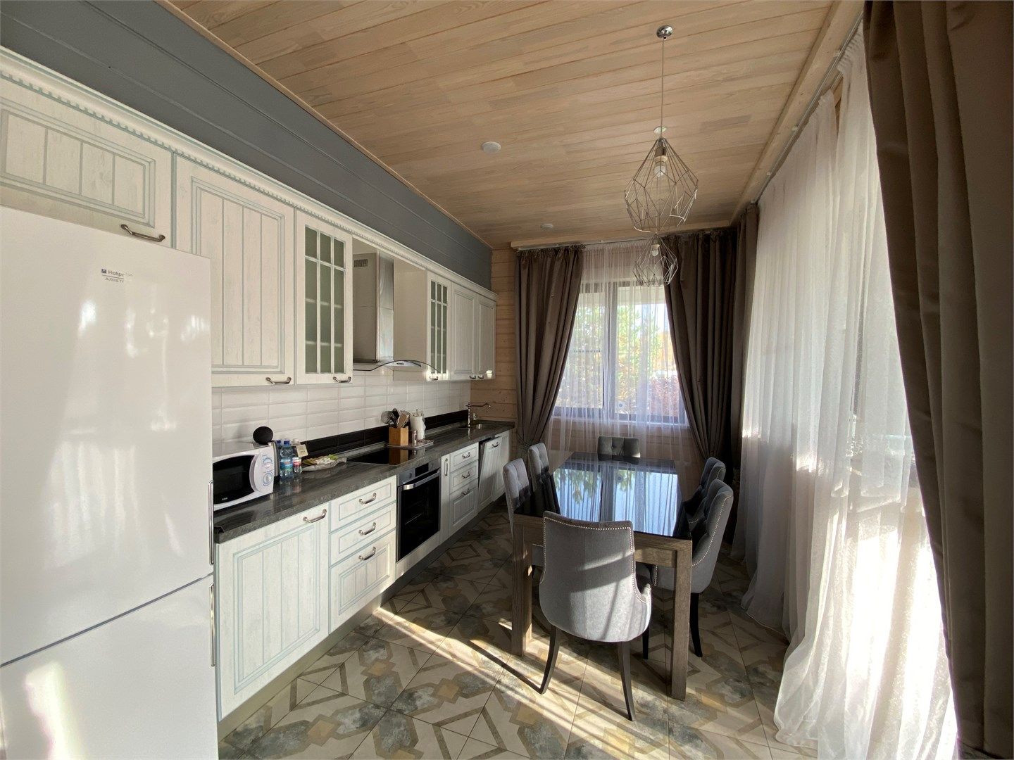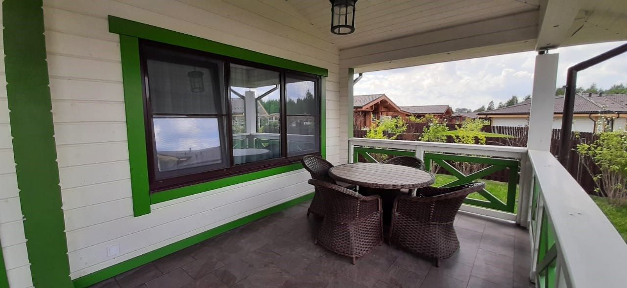 Коттедж площадью 190 кв.м с кондиционером, единое пространство столовой и гостиной с камином; 4 спальни; отлично оснащенная кухня, прихожая со шкафами, два санузла, один из которых с ванной, второй с душевой кабиной, большая отапливаемая веранда с панорамными окнами.