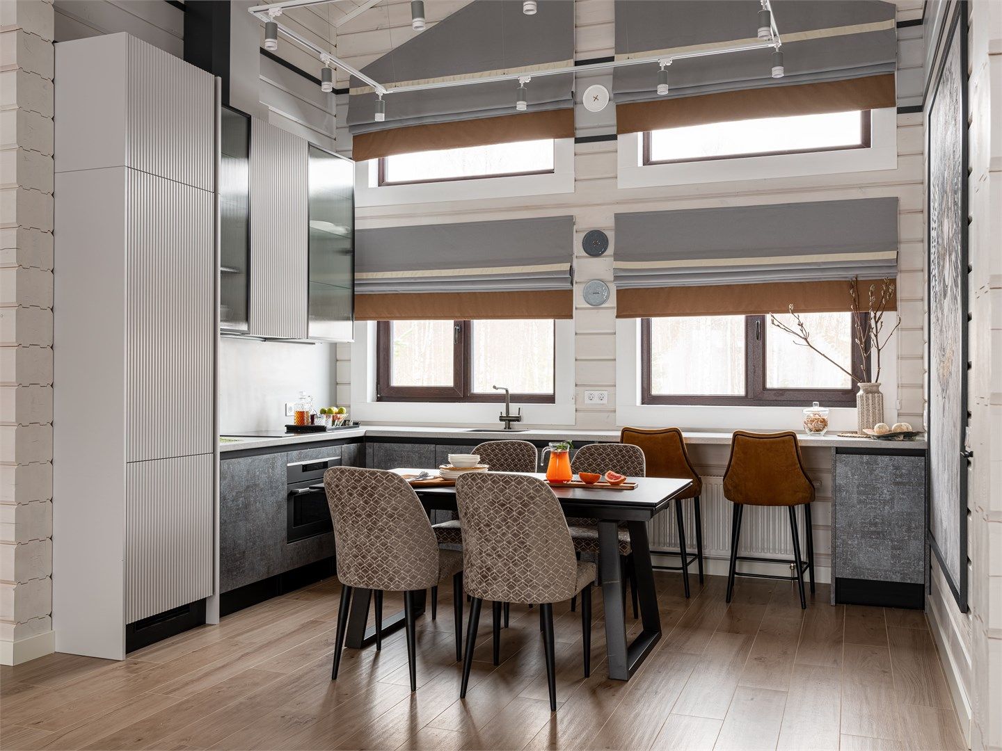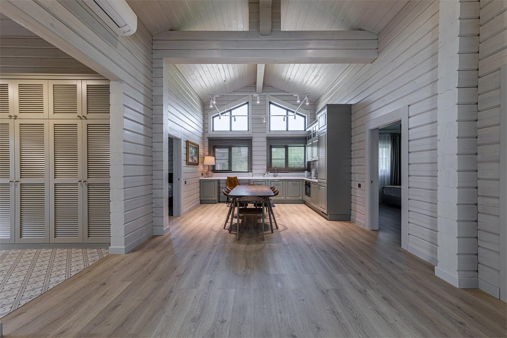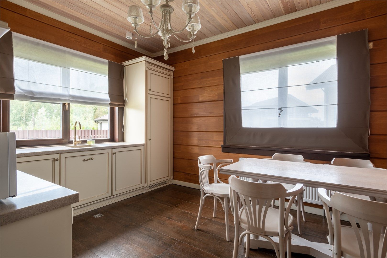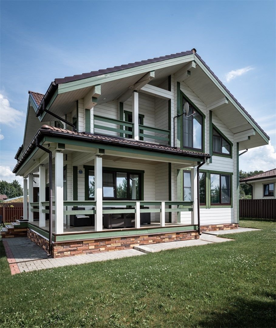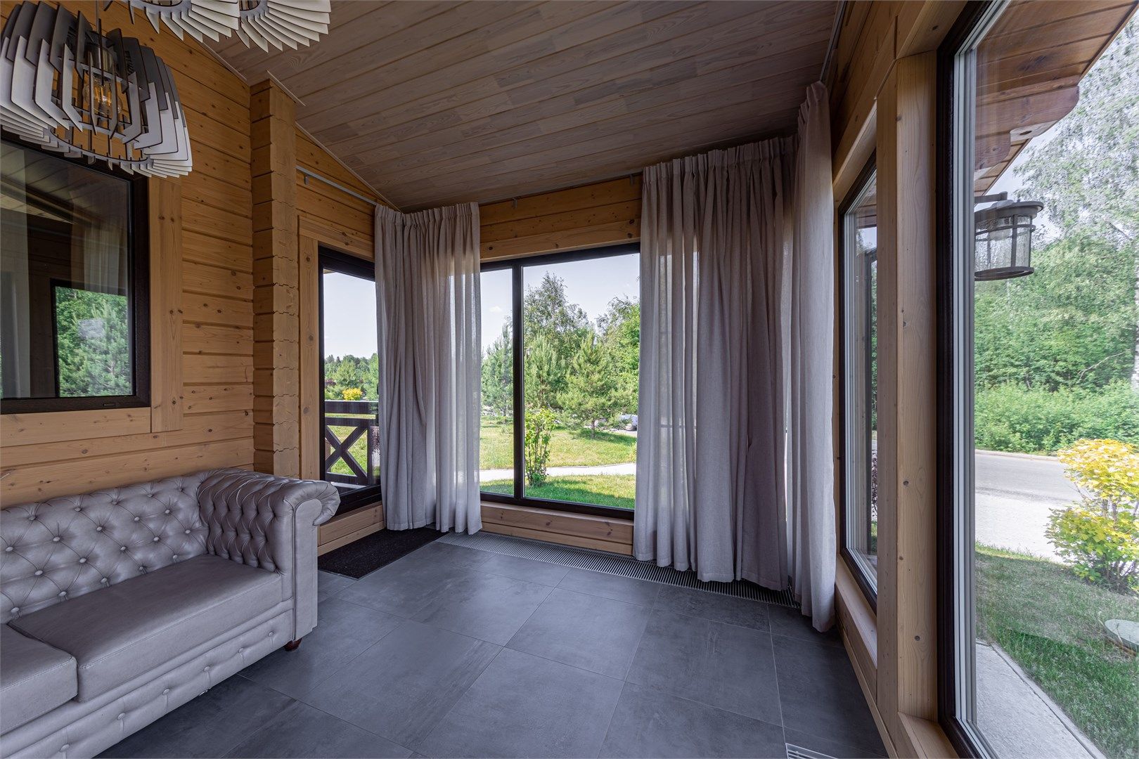 Коттедж площадью 190 кв.м с кондиционером, единое пространство столовой и гостиной с камином; 4 спальни; отлично оснащенная кухня, прихожая со шкафами, два санузла, один из которых с ванной, второй с душевой кабиной, большая отапливаемая веранда с панорамными окнами.