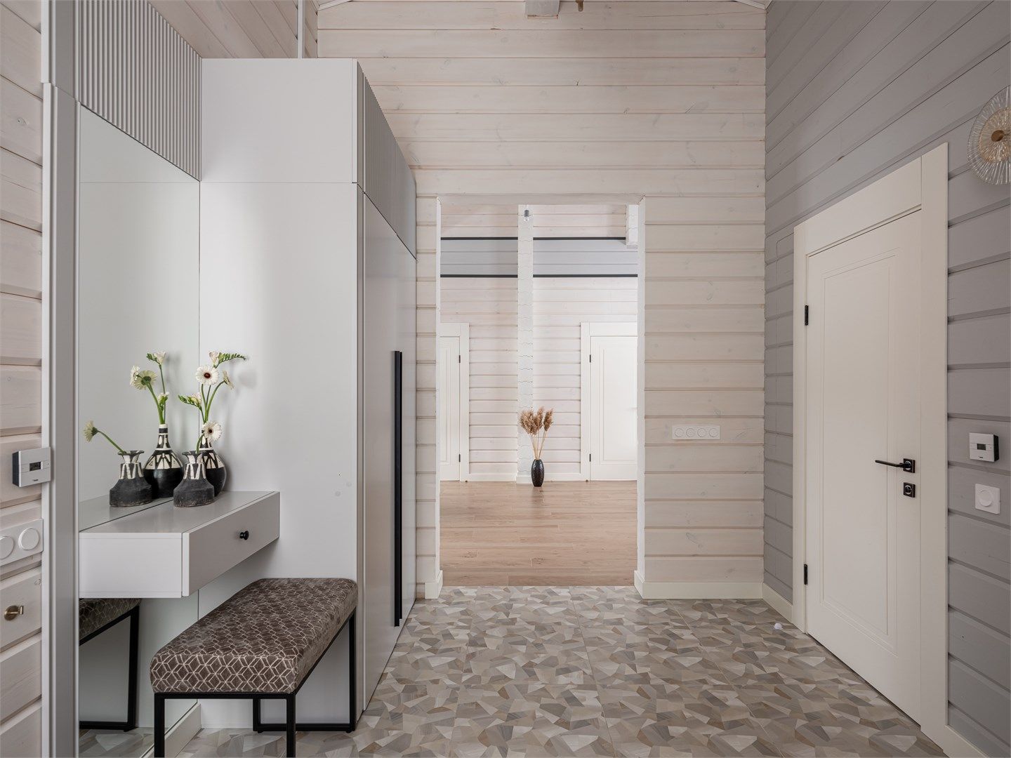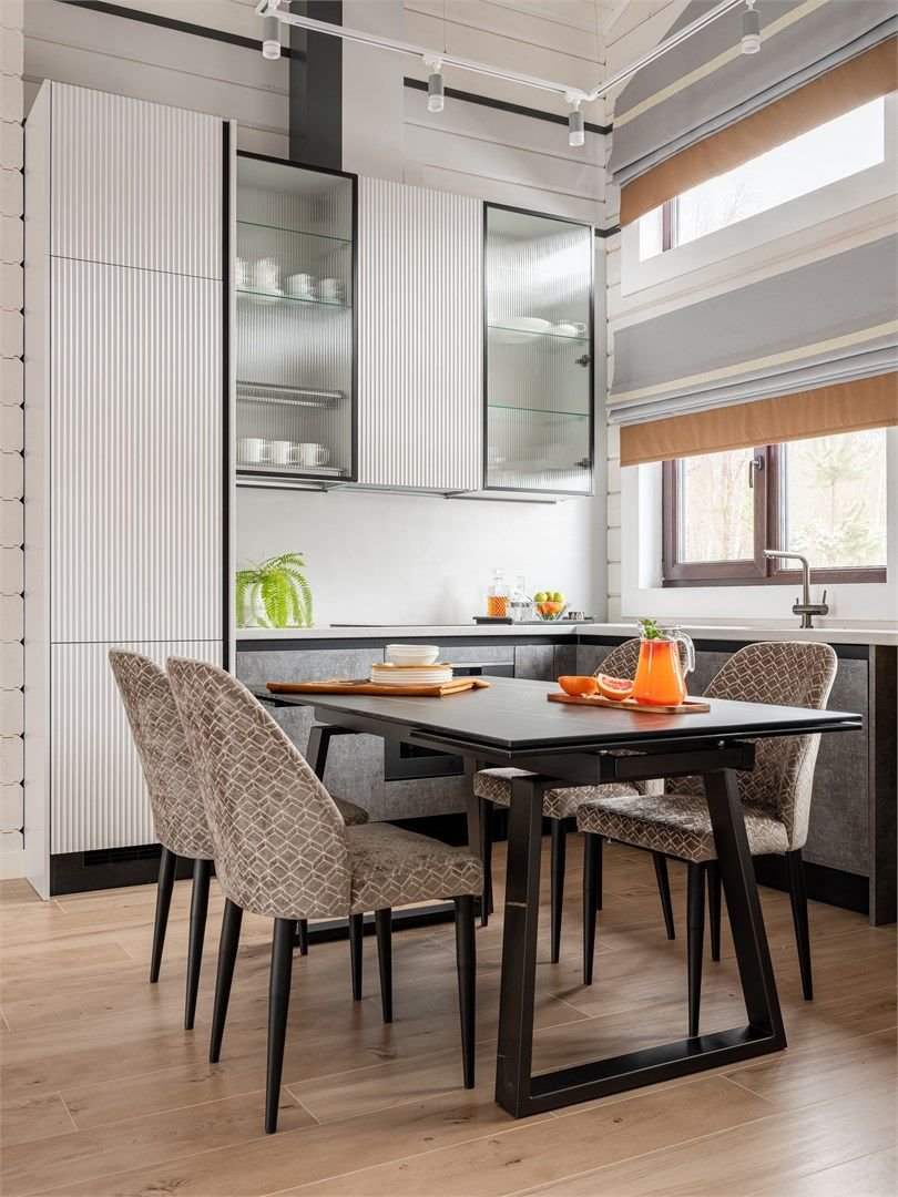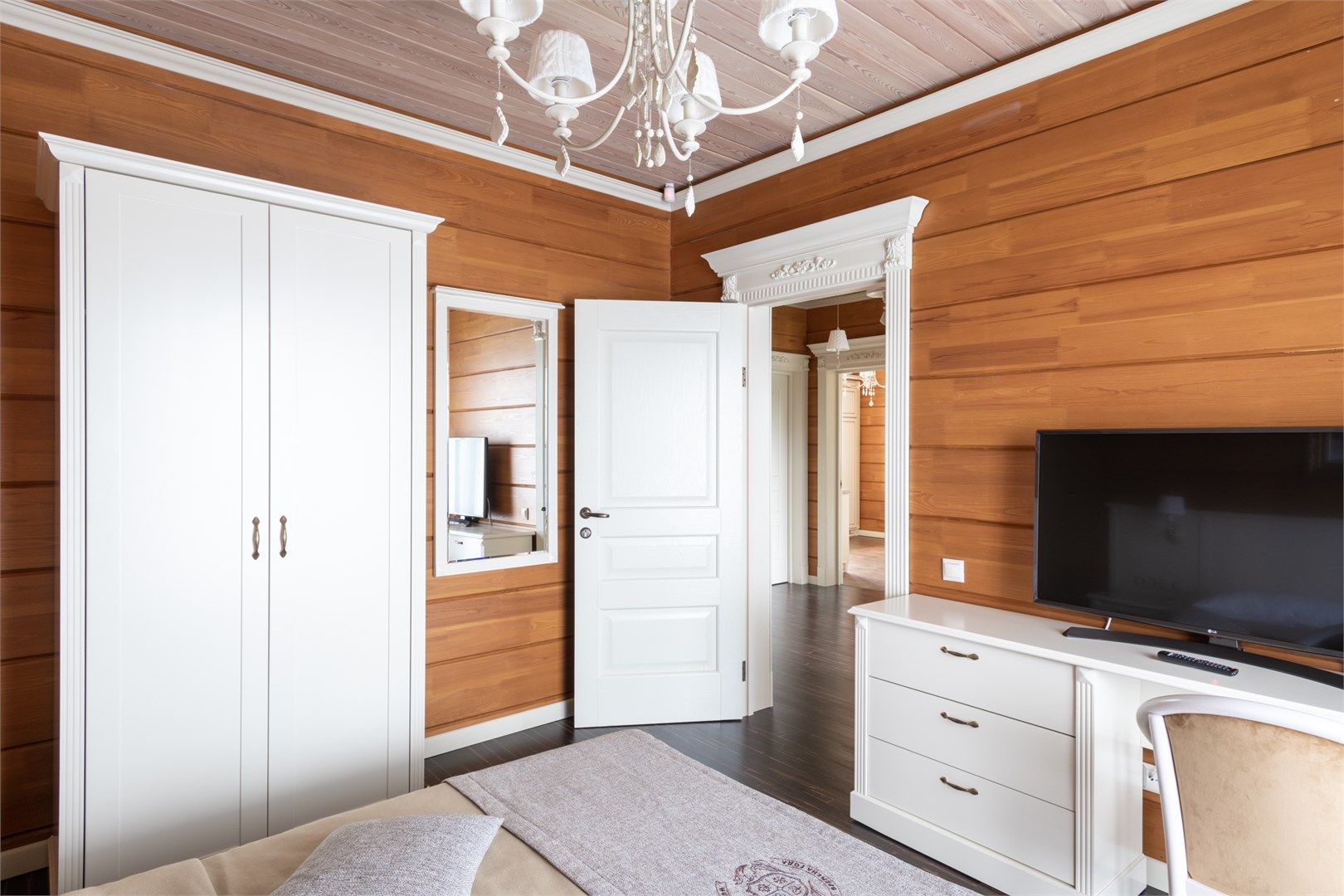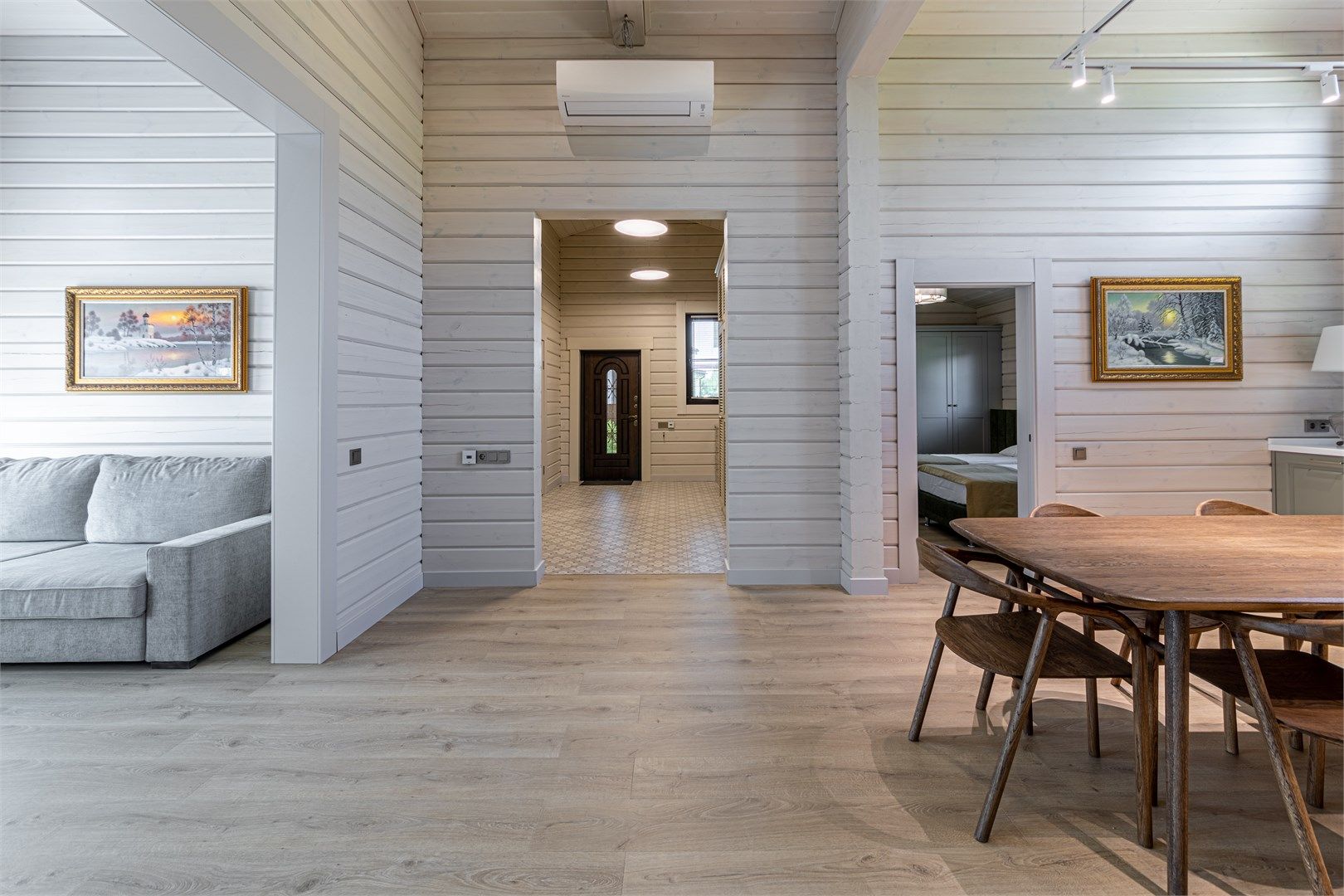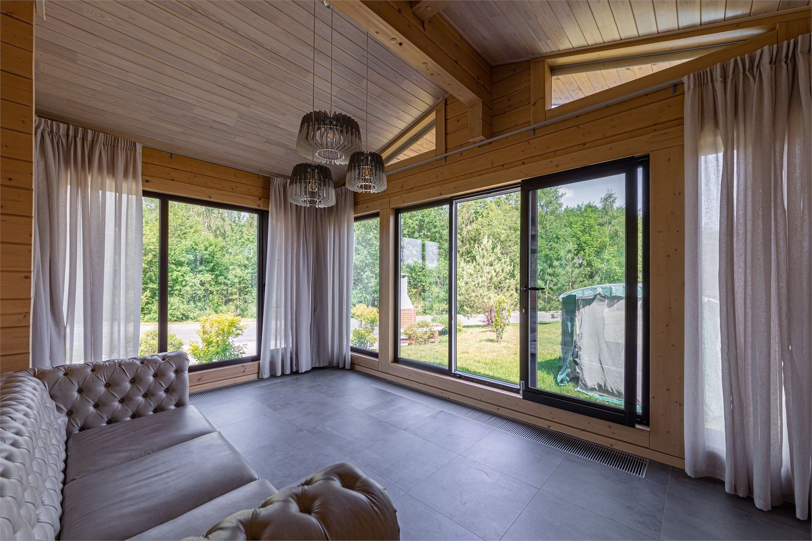 Коттедж площадью 190 кв.м с кондиционером, единое пространство столовой и гостиной с камином; 4 спальни; отлично оснащенная кухня, прихожая со шкафами, два санузла, один из которых с ванной, второй с душевой кабиной, большая отапливаемая веранда с панорамными окнами.