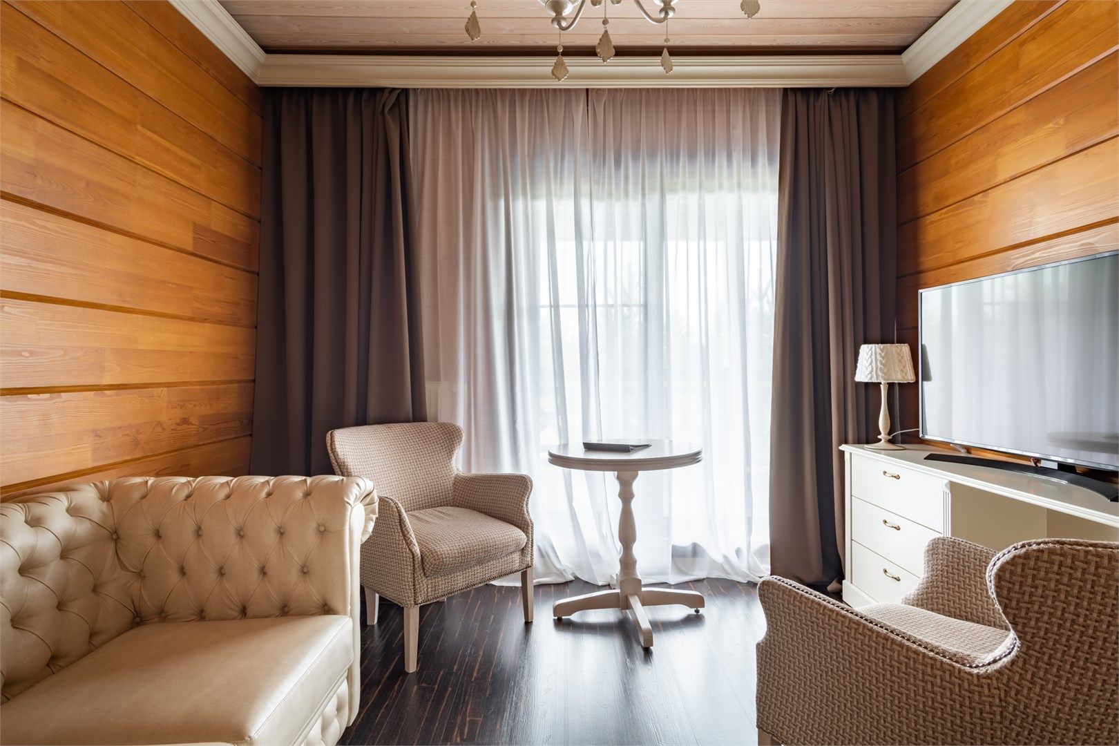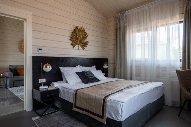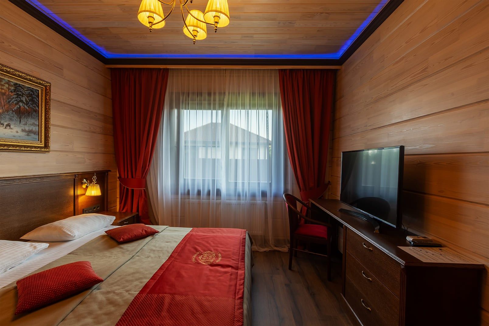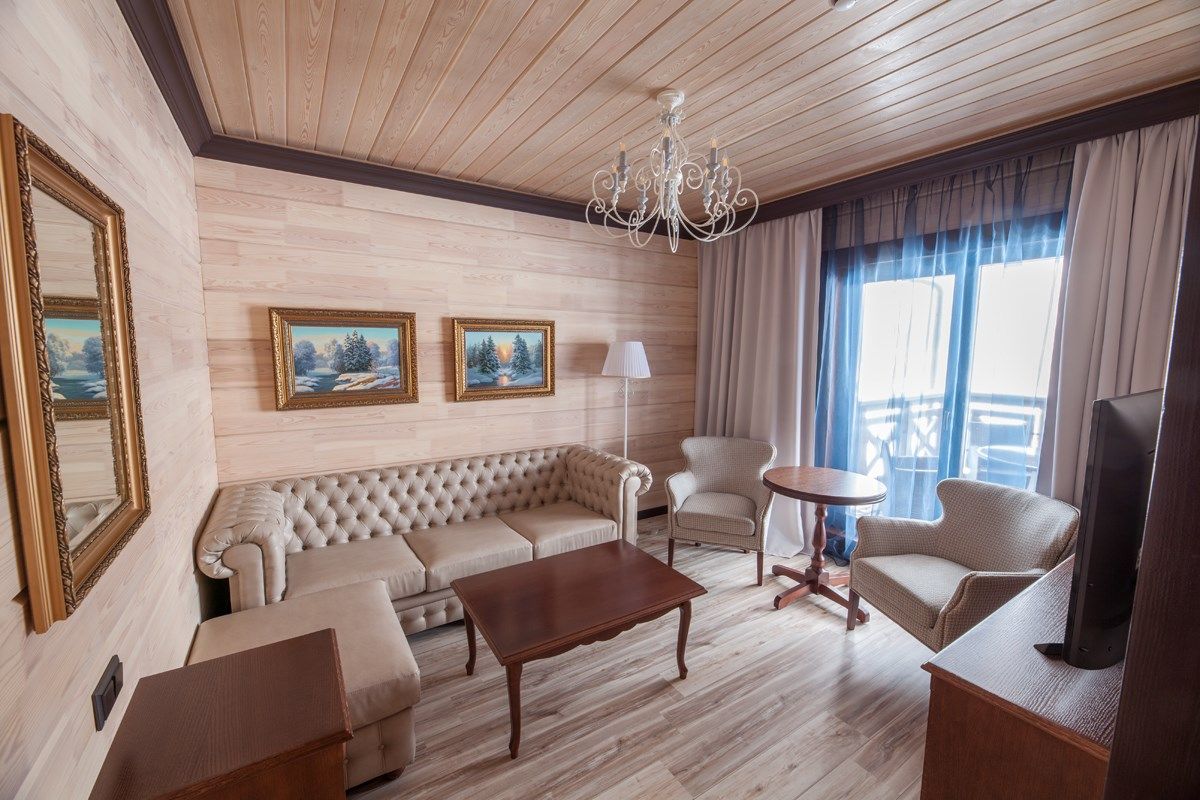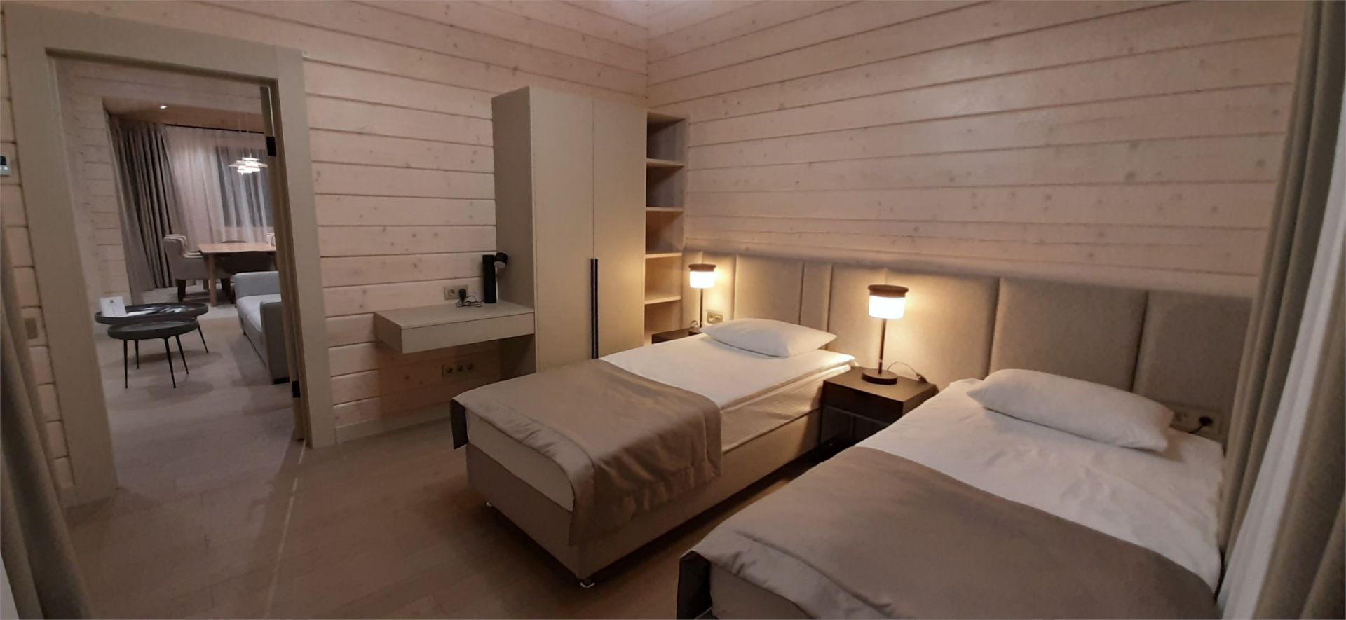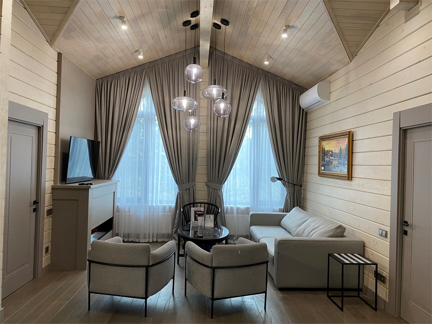 Шале - люкс 80 кв.м - двухкомнатный номер (гостиная и спальня) с кондиционером (в гостиной) и отдельным входом с улицы. Шале рассчитано для комфортного размещения 2-х человек. Дополнительные гости могут разместиться на раскладном диване в гостиной, имеется возможность установки дополнительного места (просим обратить внимание на стоимость при размещении гостей на диване и дополнительных местах)....
